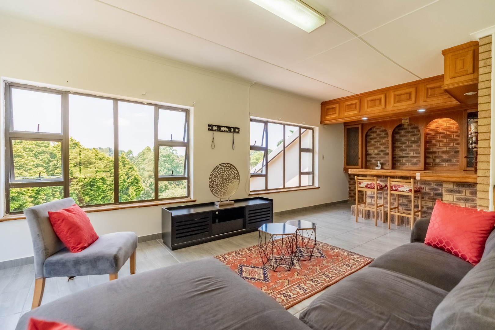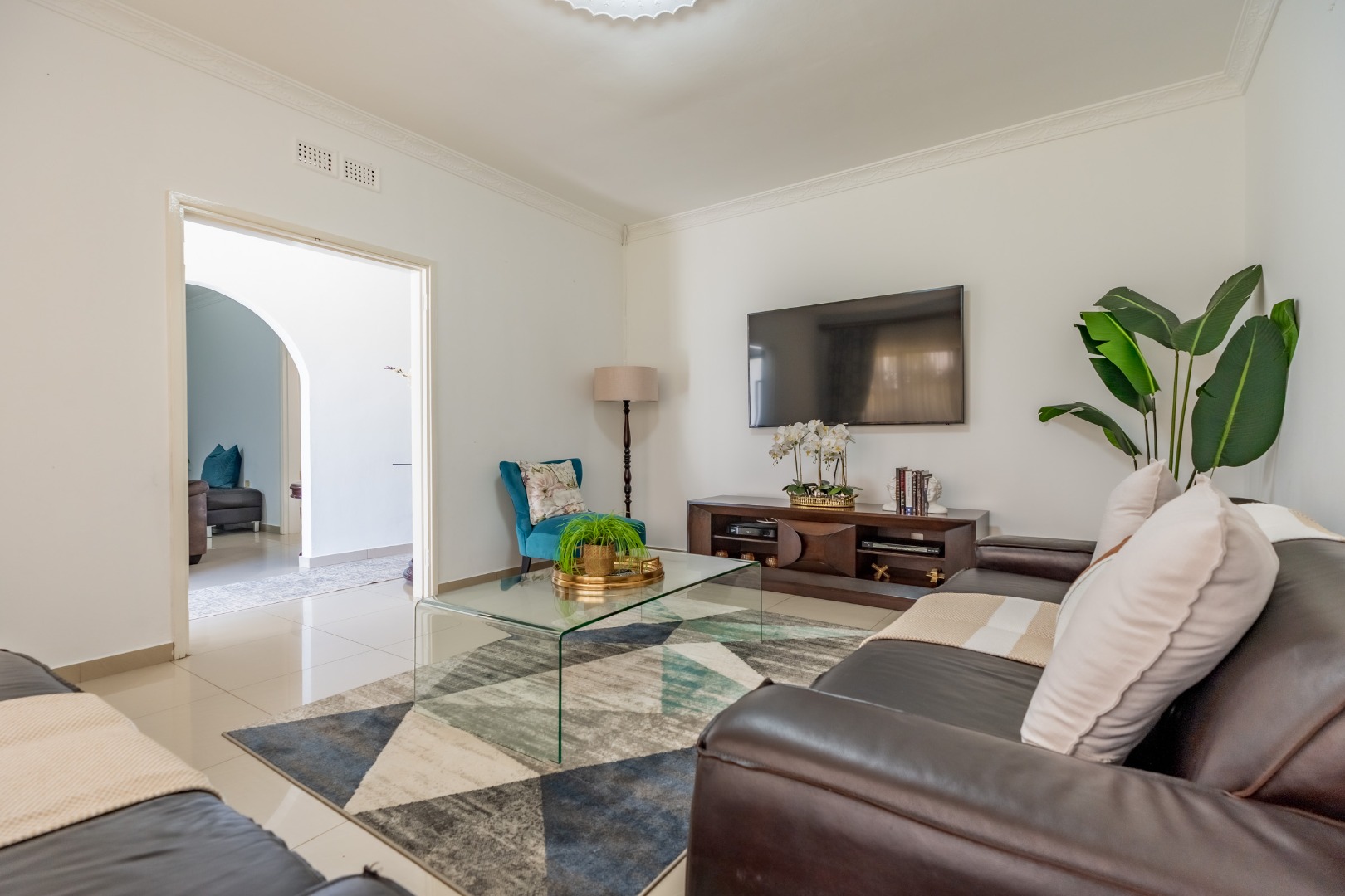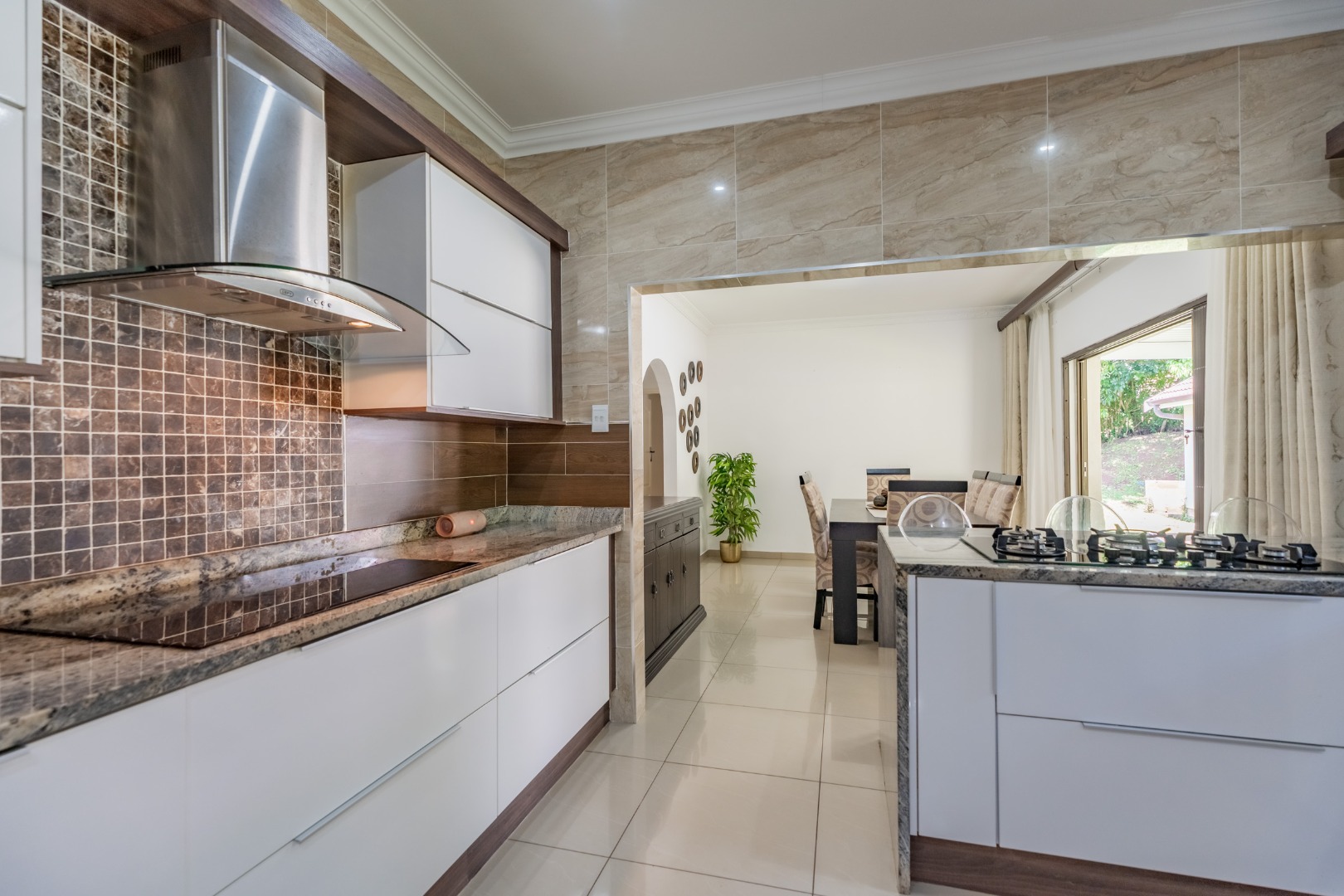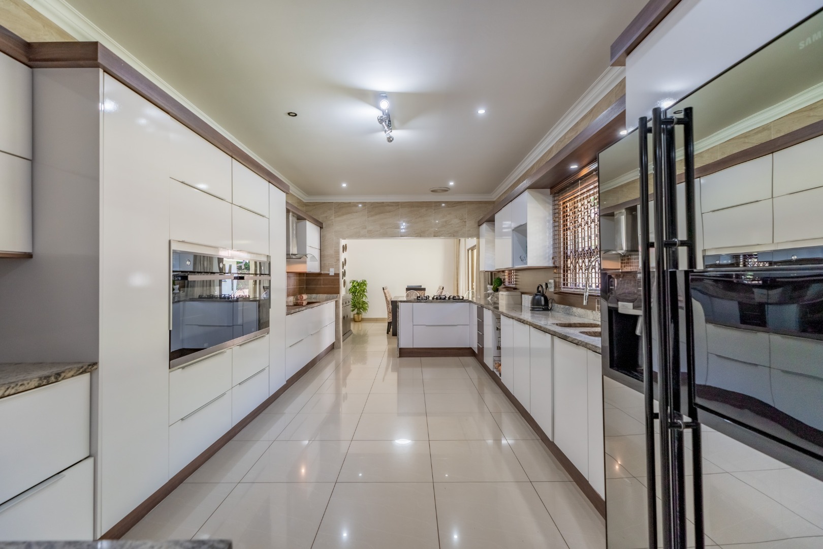 As you step into this stunning ultra-modern home, you are welcomed by two spacious lounges, one of which features a cosy fireplace, creating the perfect setting for relaxed family living.