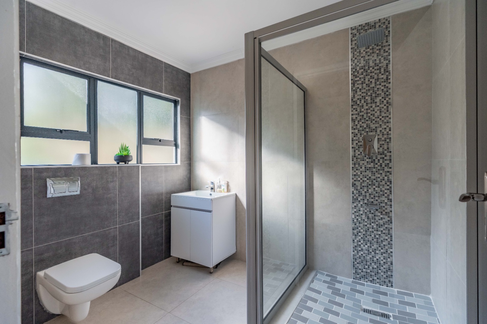 The well-positioned guest bedroom offers built-in cupboards and a full modern bathroom on the lower level — ideal for guests or extended family.