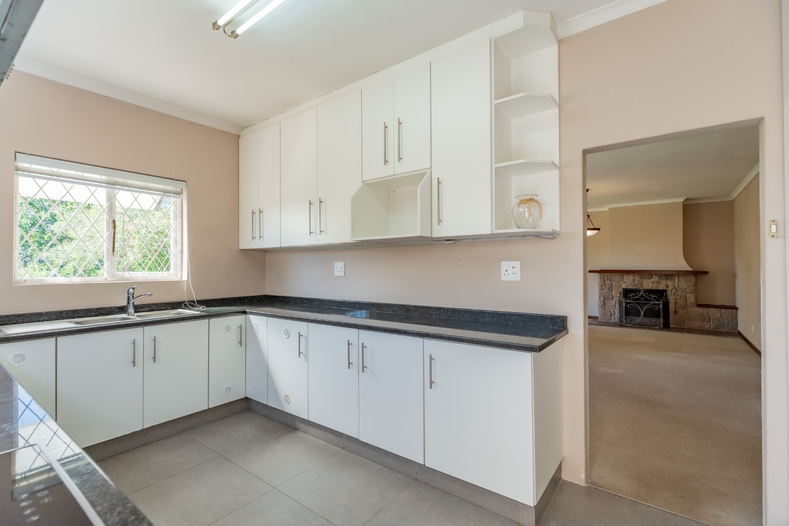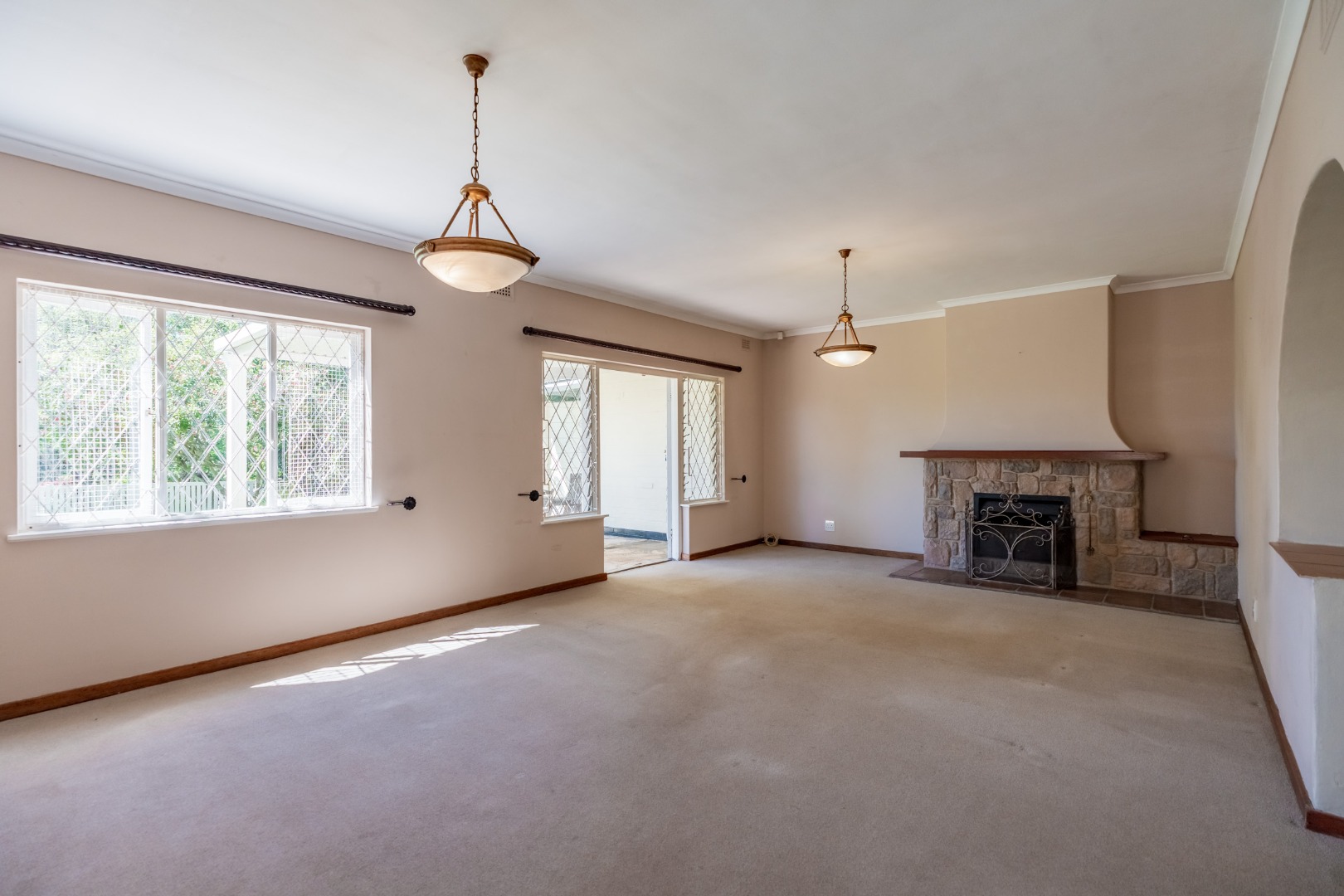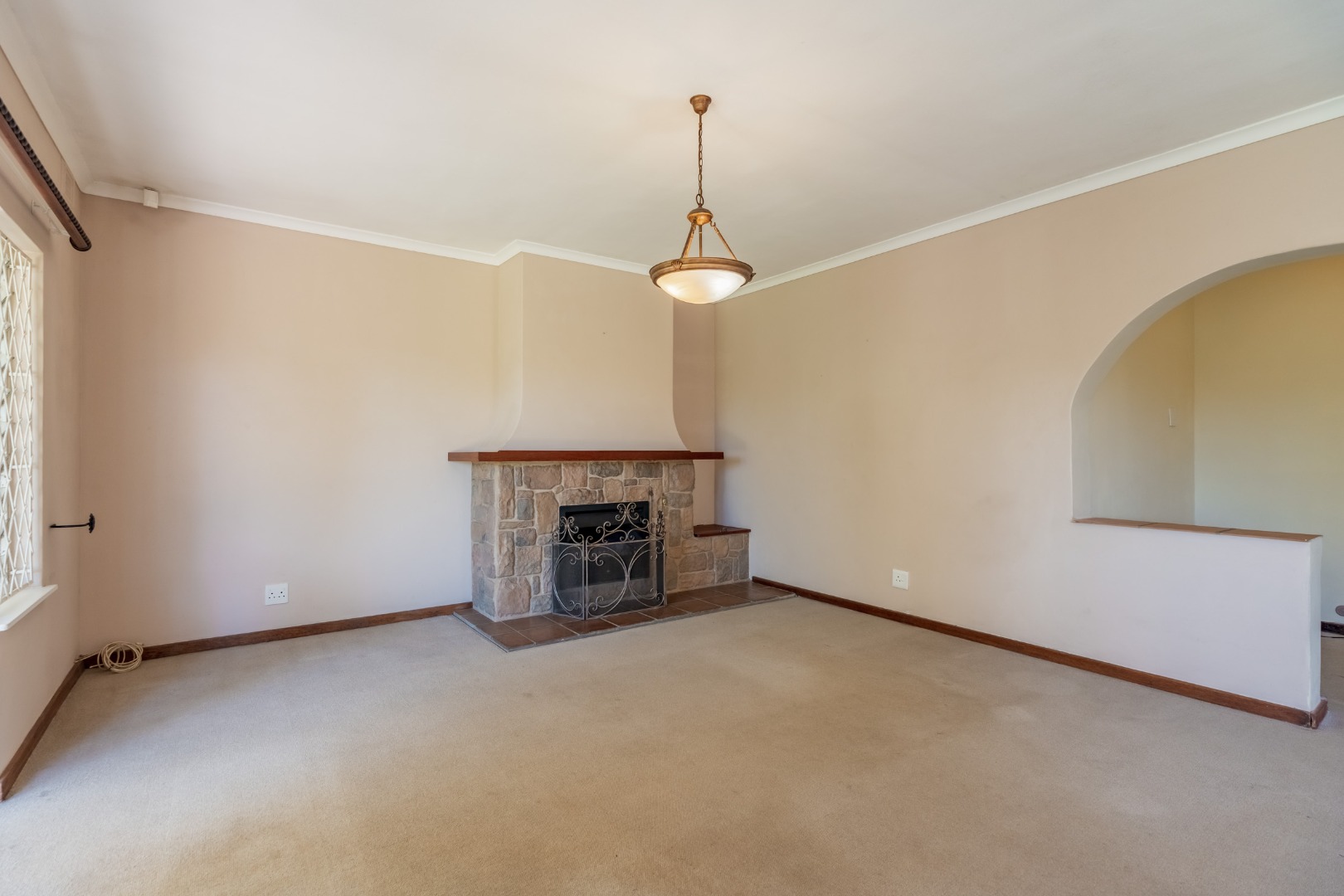 The lovely open-plan dining room and lounge form the heart of the home. At the centre of the lounge, a wood burning fireplace creates a natural focal point. Just off the lounge, an additional room offers wonderful versatility, making for a perfect entertainment bar area or wine cellar, ideal for hosting friends and family. Alternatively, it lends itself beautifully to a cozy reading nook or library area. Double doors leading off the lounge to a delightful undercover patio area, overlooking manicured private garden.