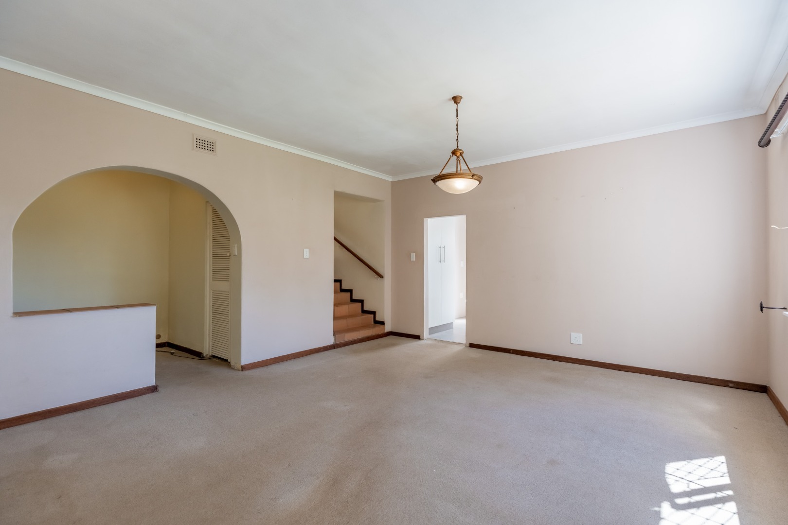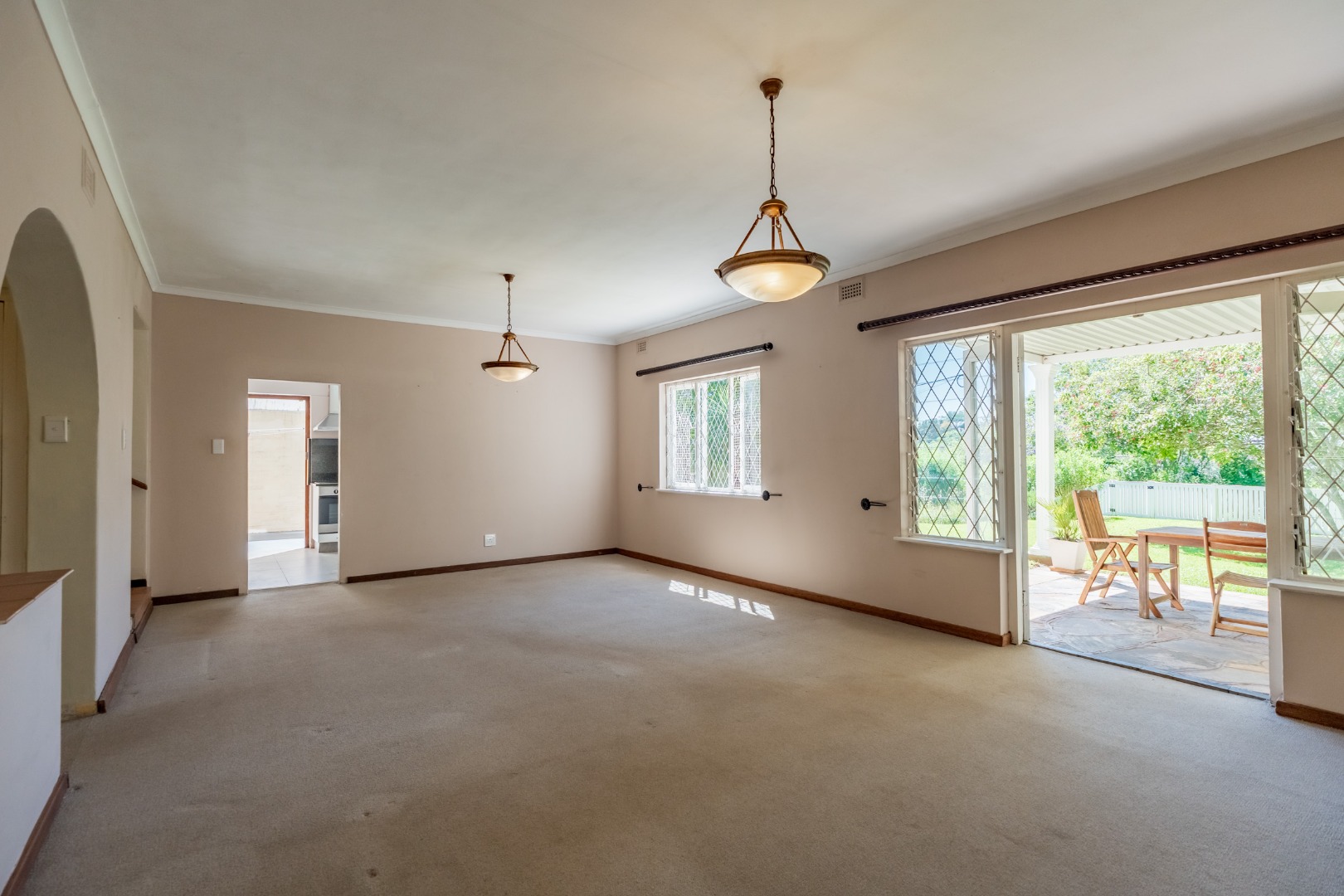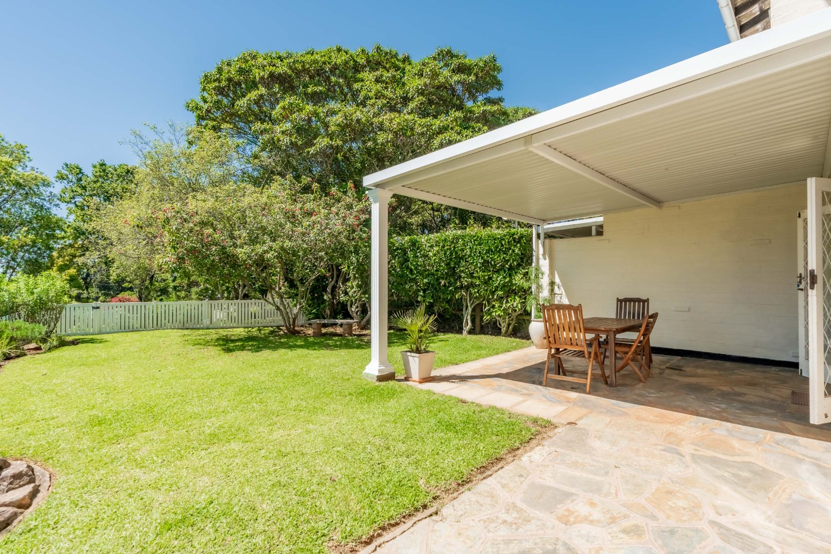 The lovely open-plan dining room and lounge form the heart of the home. At the centre of the lounge, a wood burning fireplace creates a natural focal point. Just off the lounge, an additional room offers wonderful versatility, making for a perfect entertainment bar area or wine cellar, ideal for hosting friends and family. Alternatively, it lends itself beautifully to a cozy reading nook or library area. Double doors leading off the lounge to a delightful undercover patio area, overlooking manicured private garden.