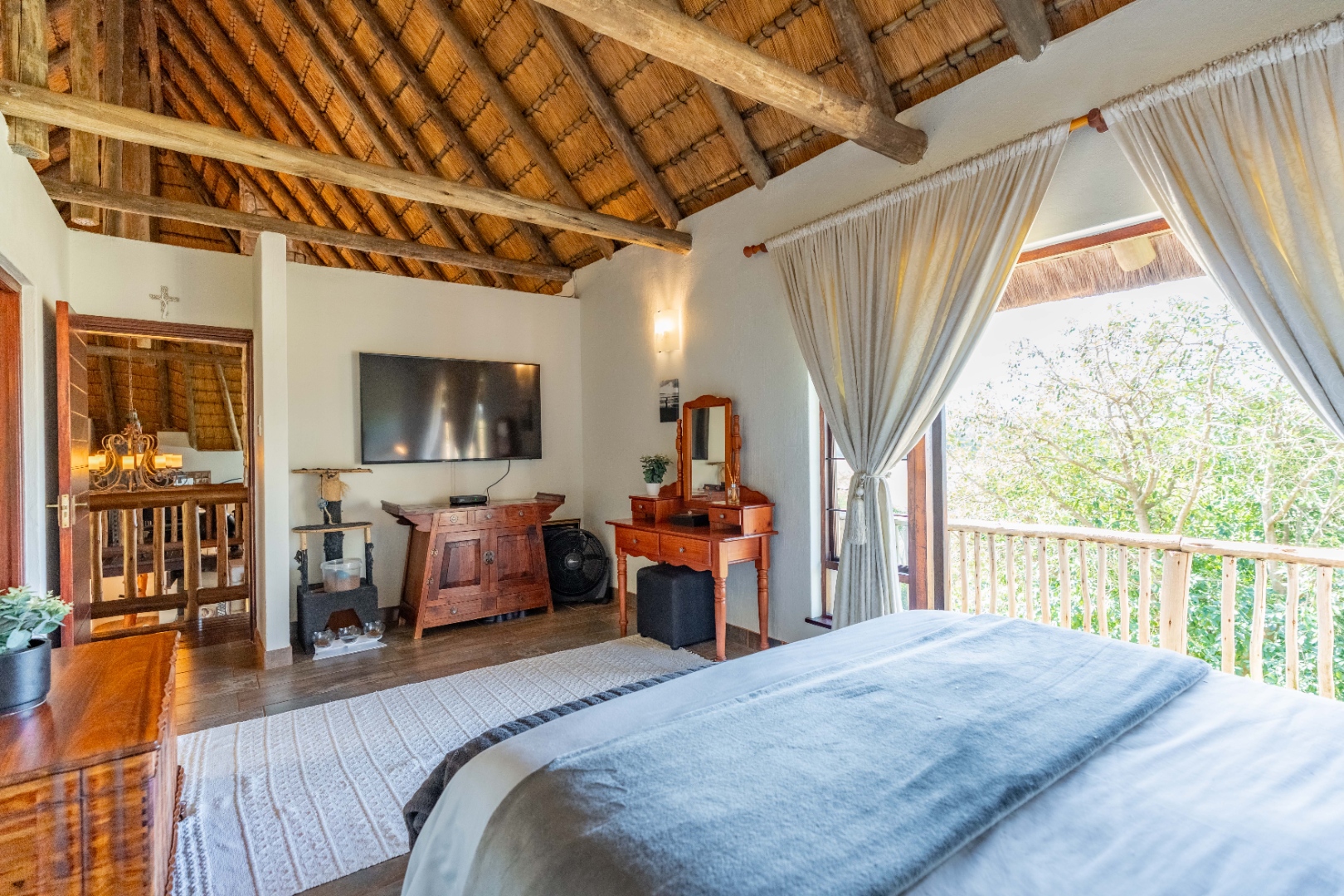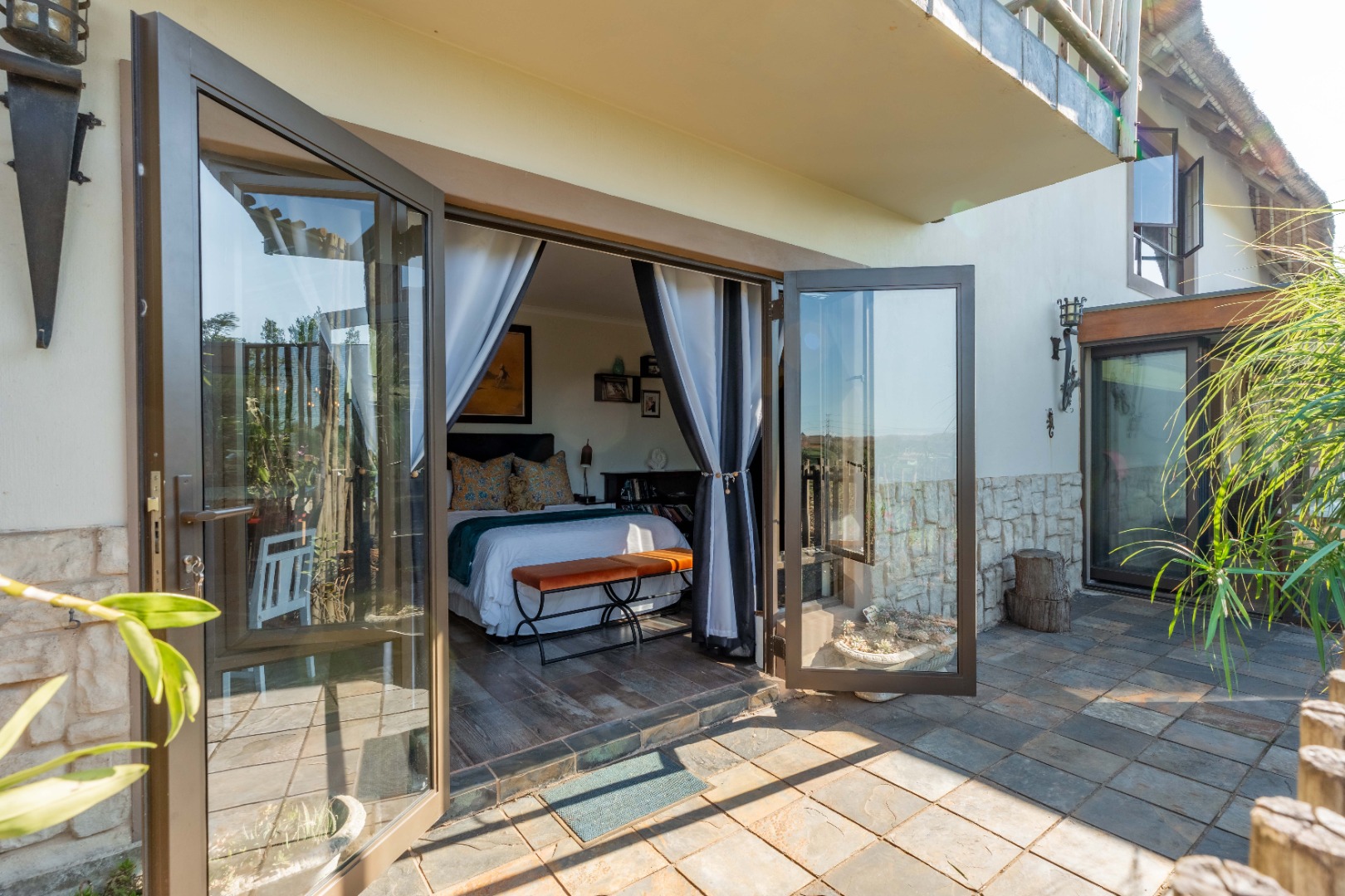 main bedroom includes a walk-in closet and opens onto a private upper patio overlooking a lush garden and an enchanting indigenous “green room.”