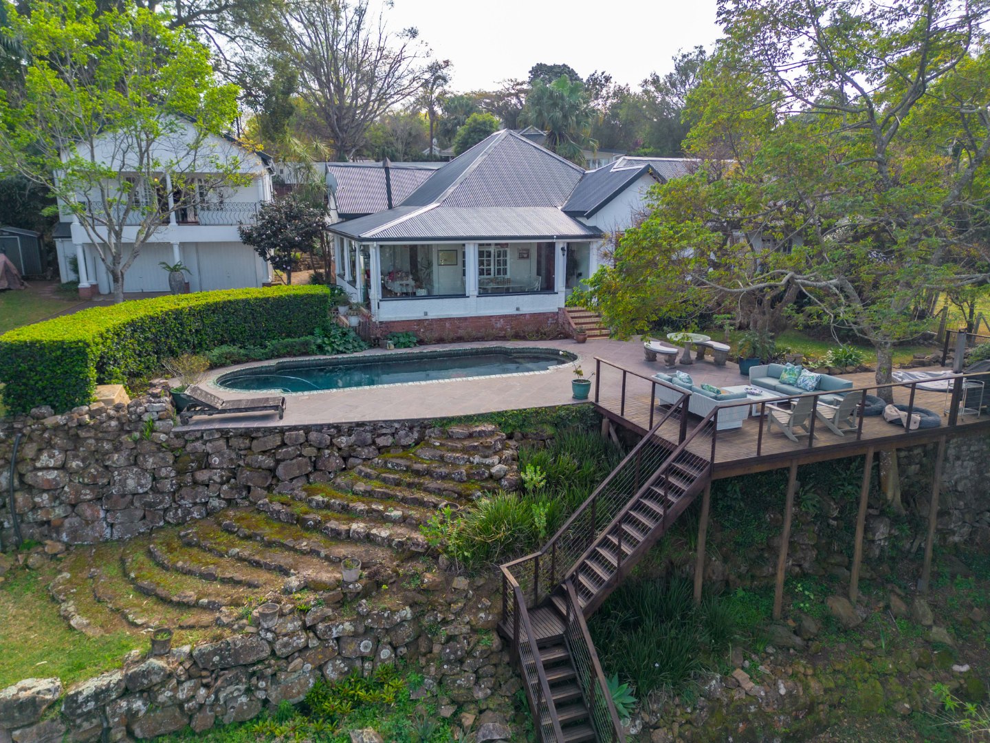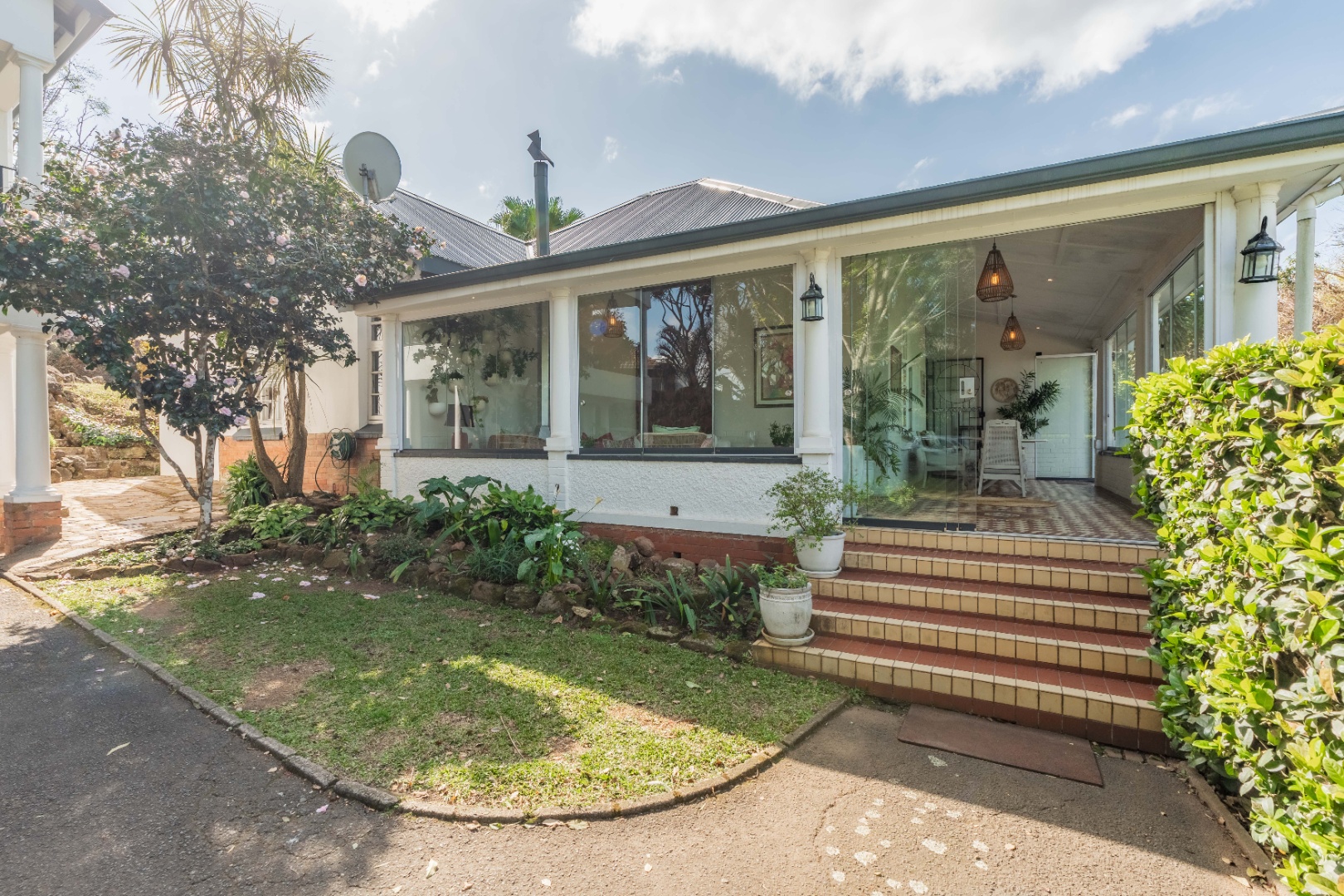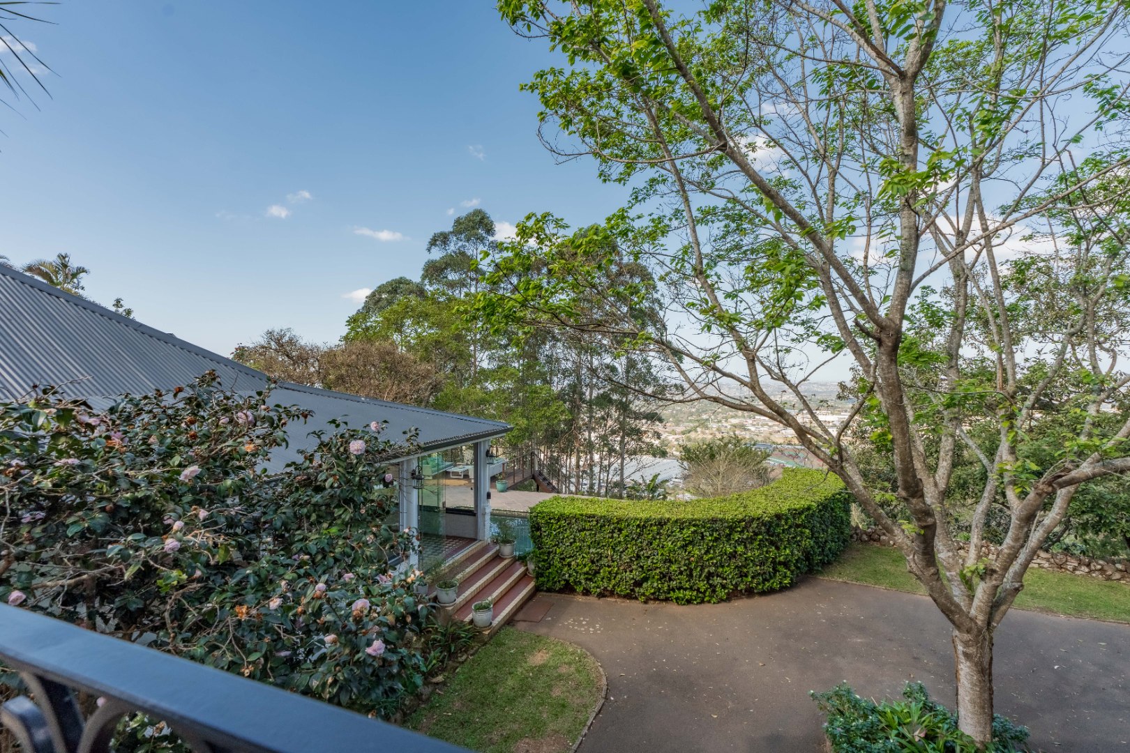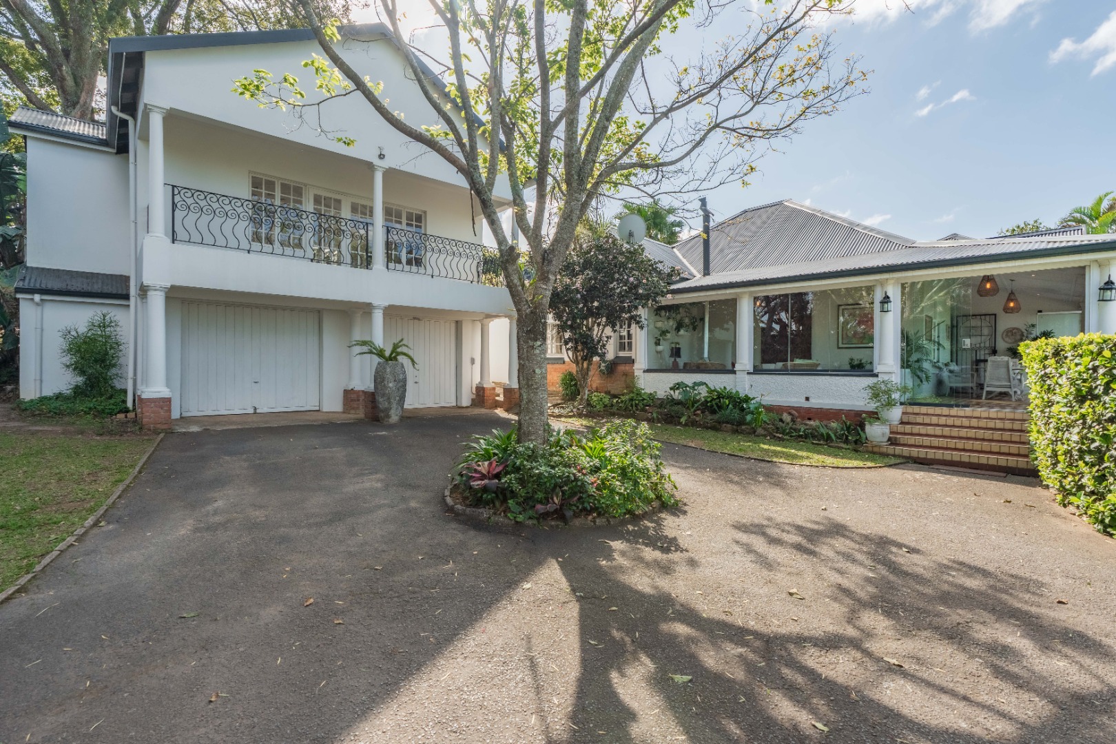 Double garage, lots of parking, staff ablutions, separate shed or staff room with electricity.