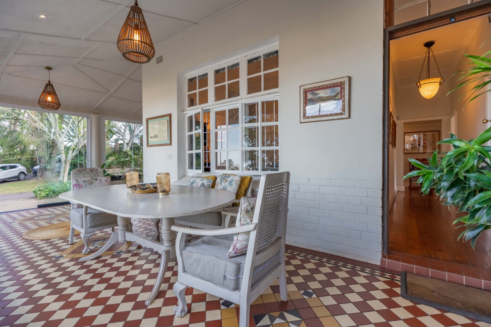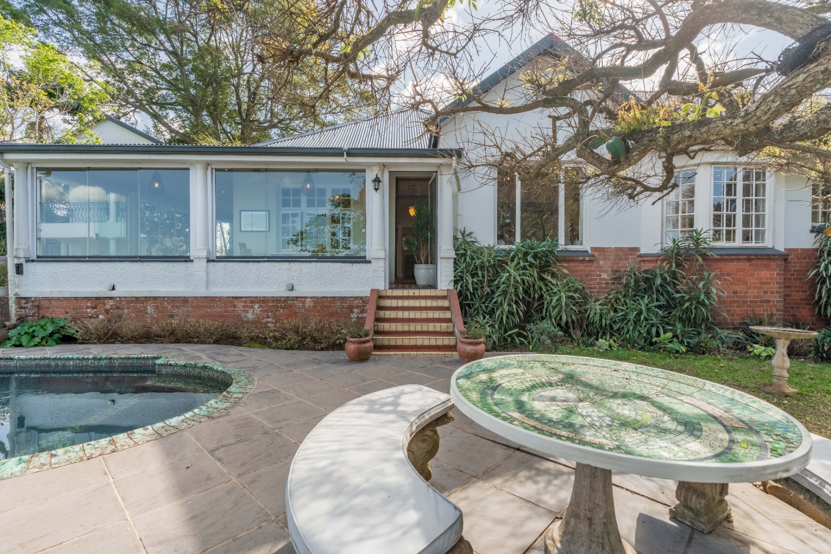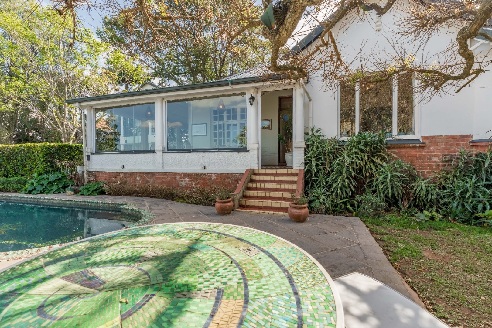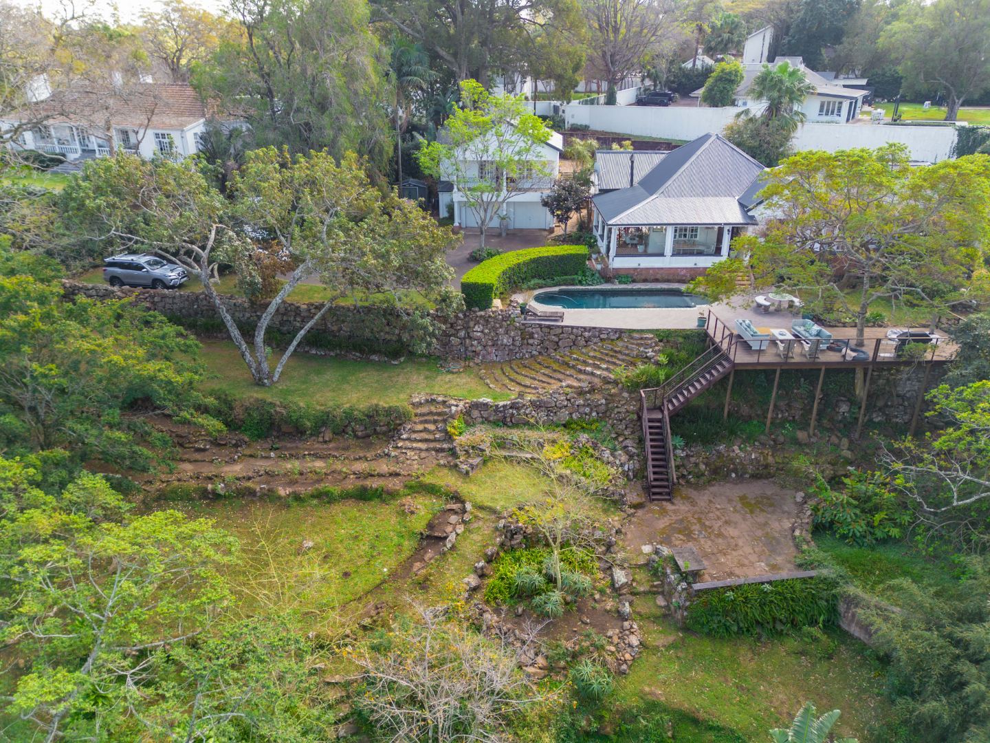 Double garage, lots of parking, staff ablutions, separate shed or staff room with electricity.