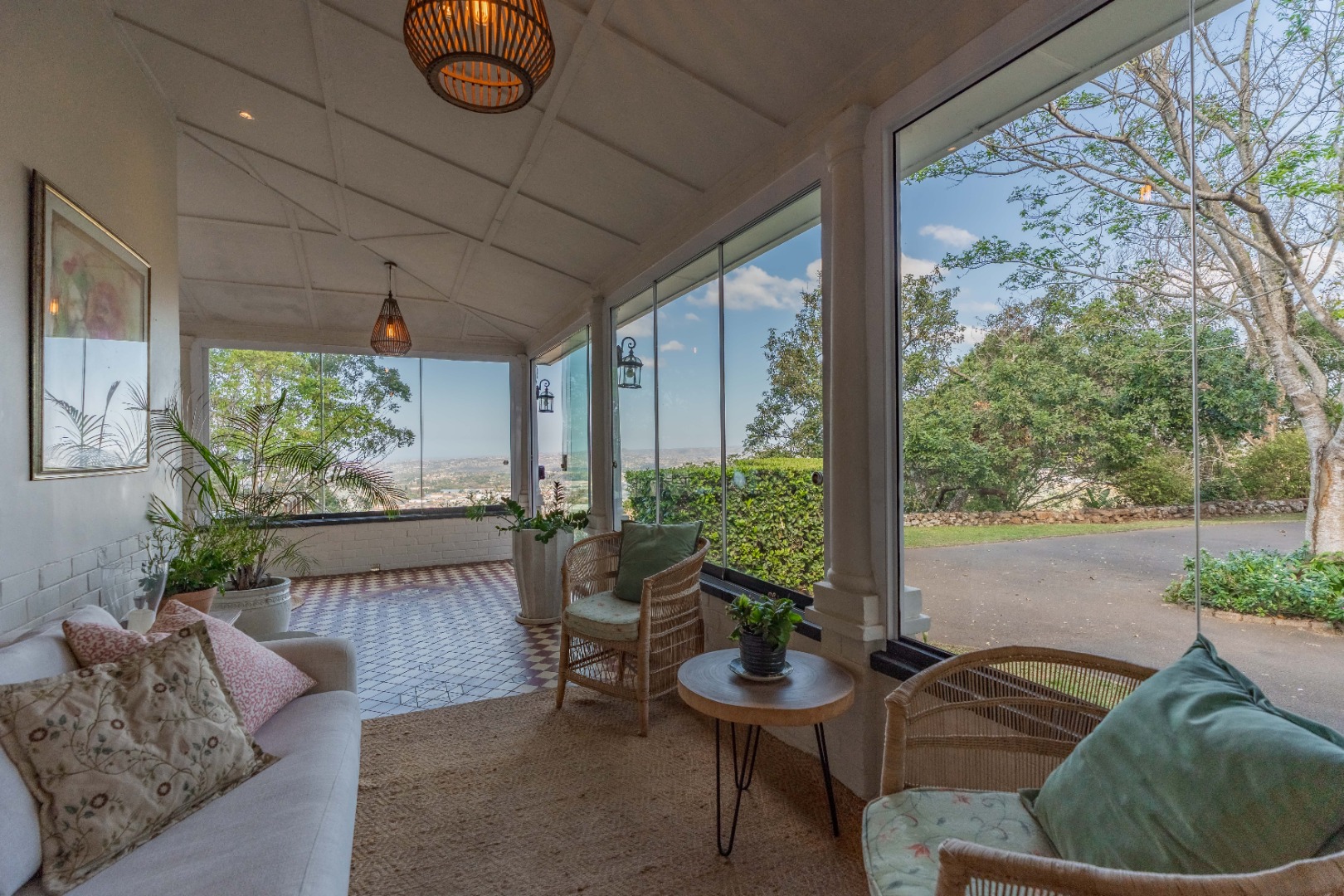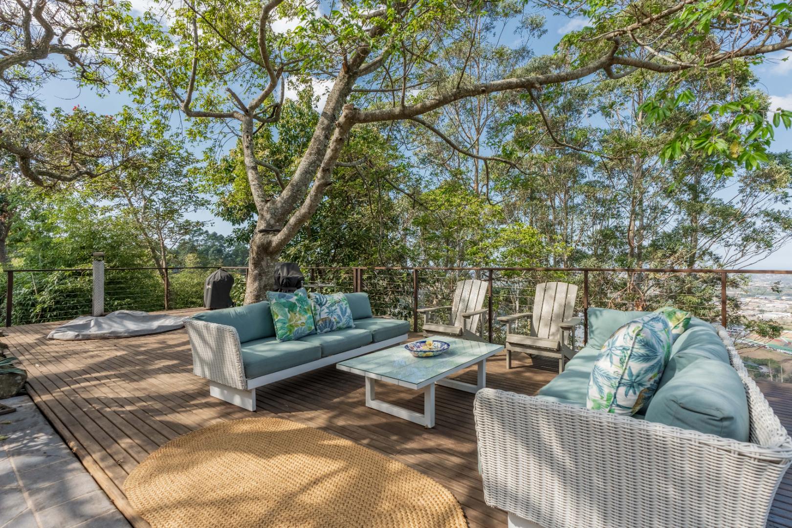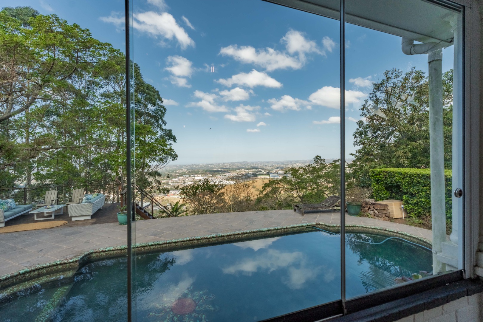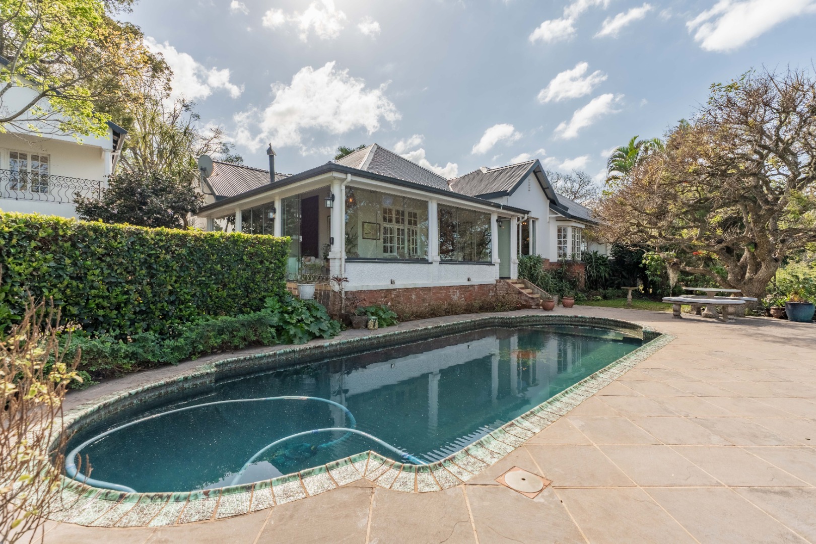 Semi wrap around verandah with views over the garden and sparkling pool. A built in hot tub on the patio, ideal to chill with endless views.