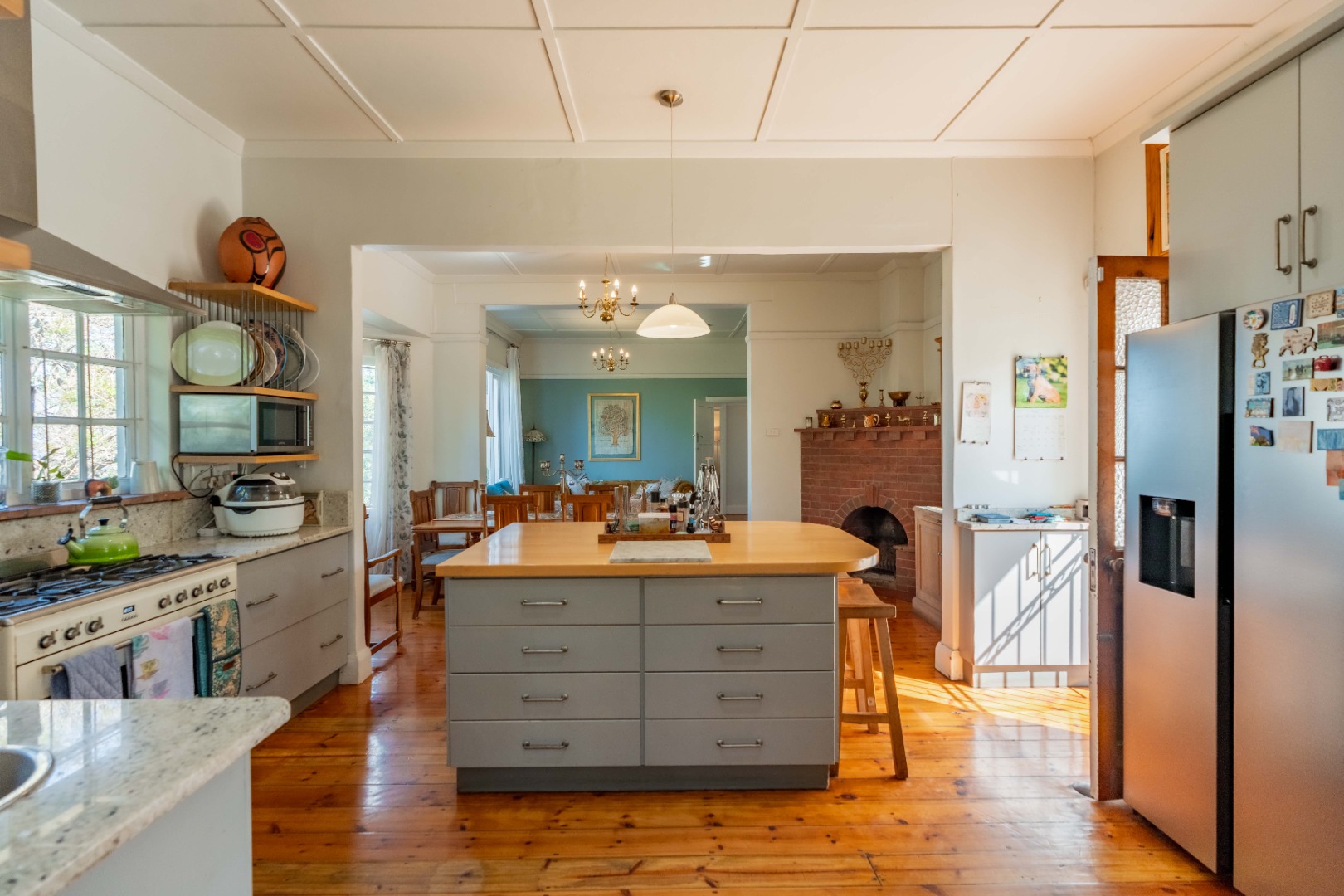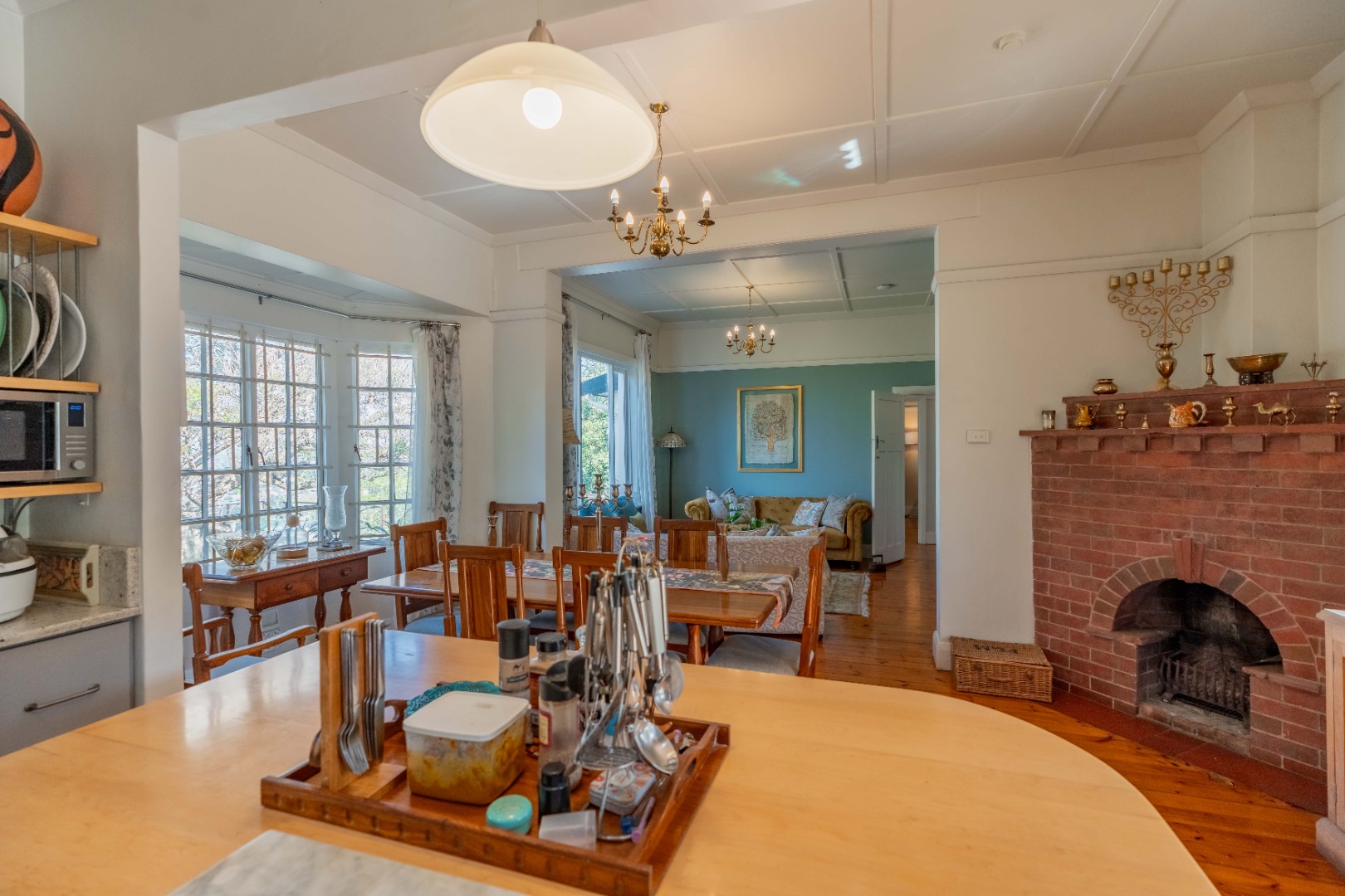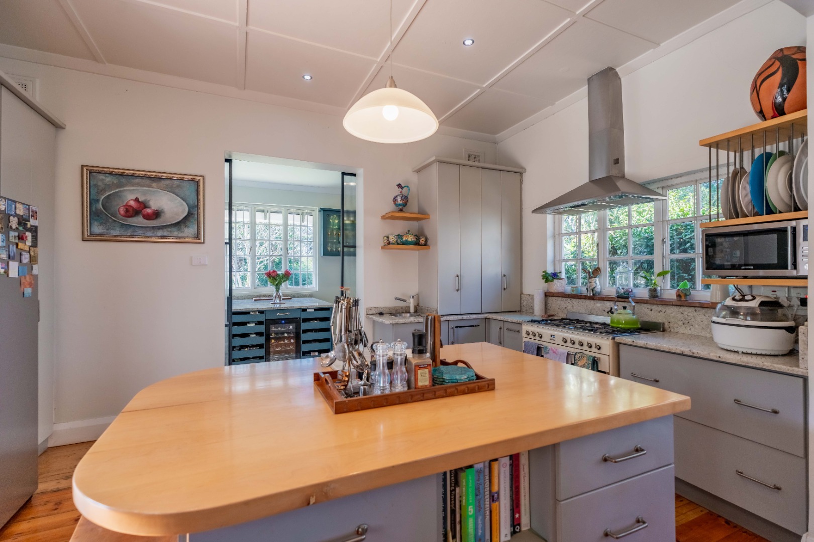 Gorgeous open plan kitchen and large scullery opening to cosy lounge and dining room with fireplace, bay windows and beautiful wooden floors. Lovely entrance hall with 2nd lounge.