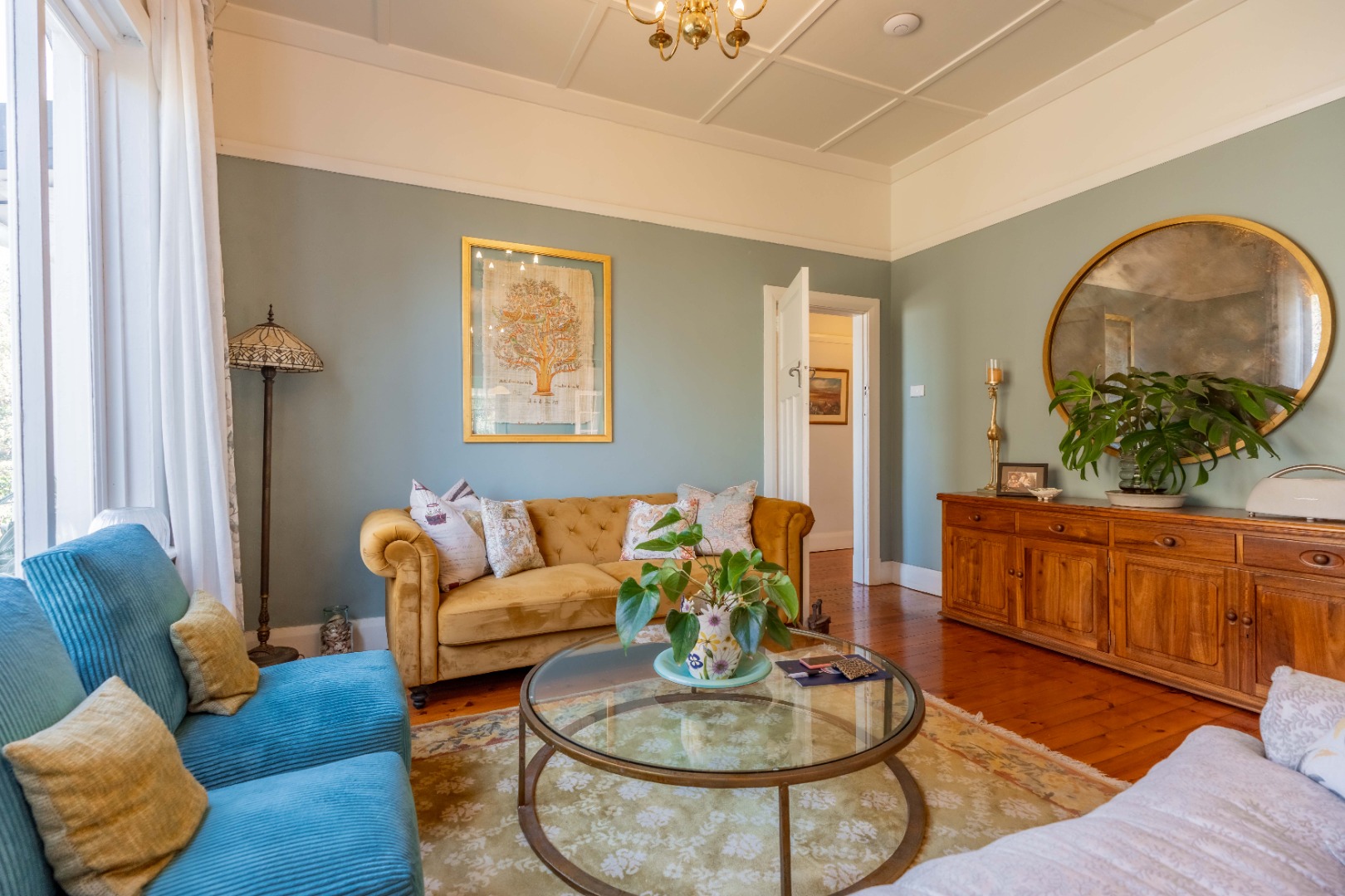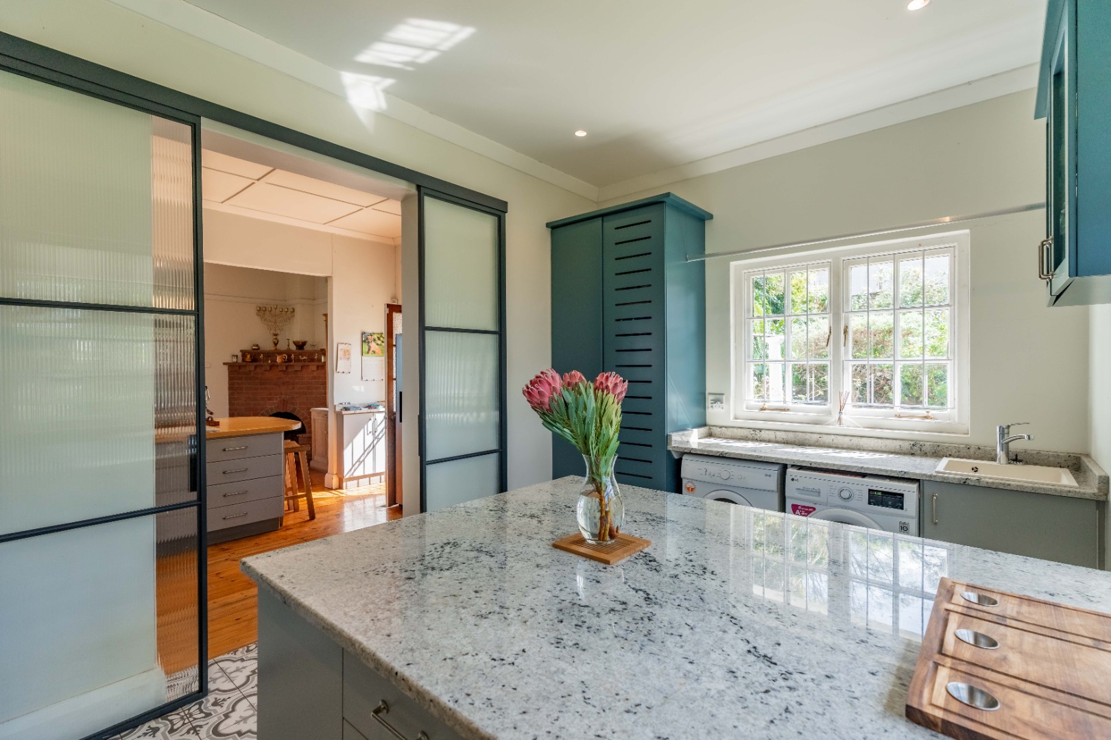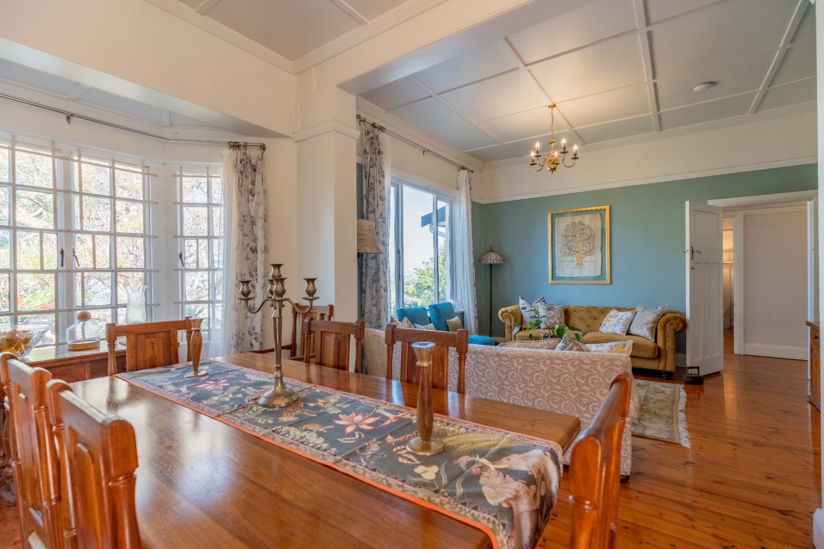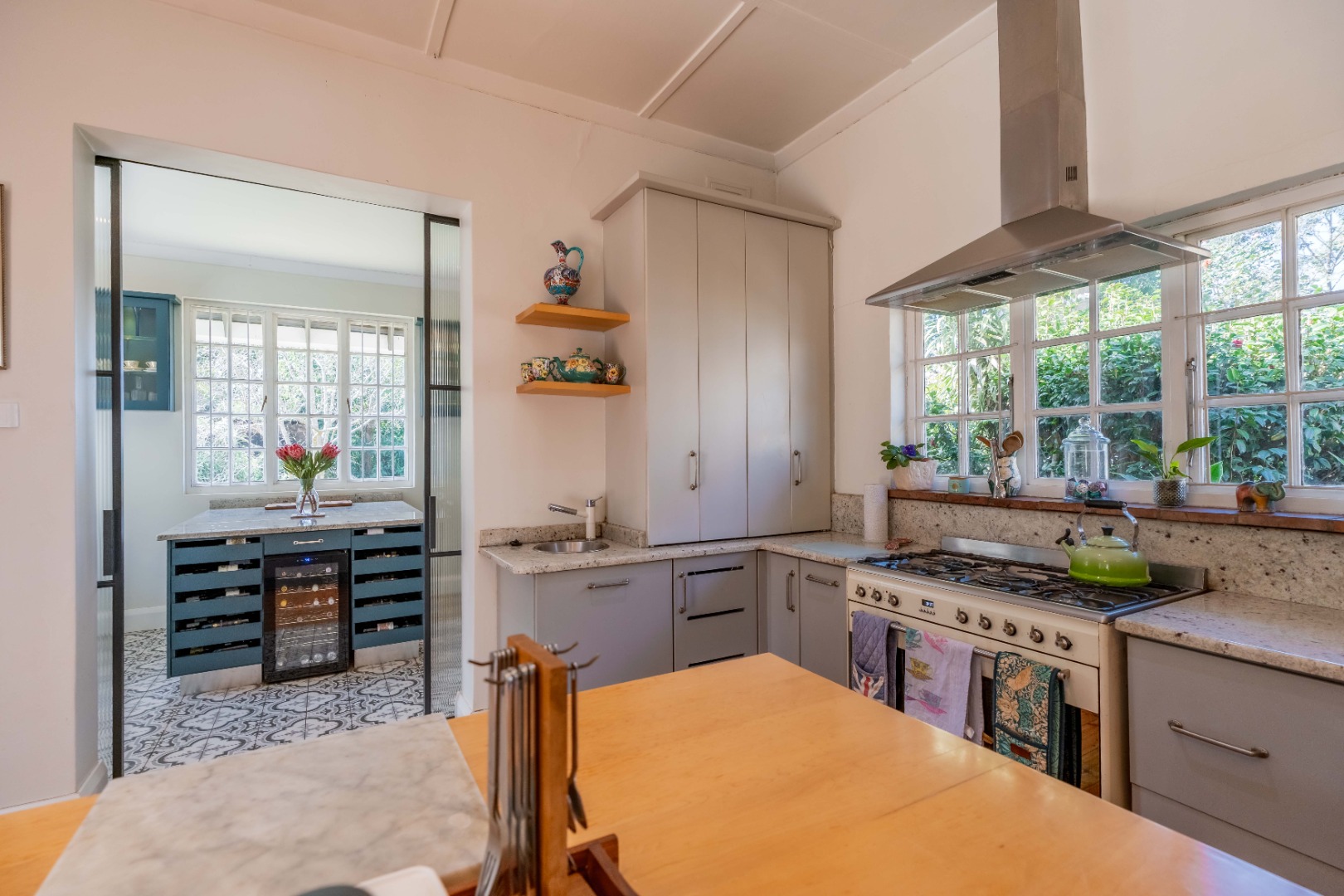 Gorgeous open plan kitchen and large scullery opening to cosy lounge and dining room with fireplace, bay windows and beautiful wooden floors. Lovely entrance hall with 2nd lounge.