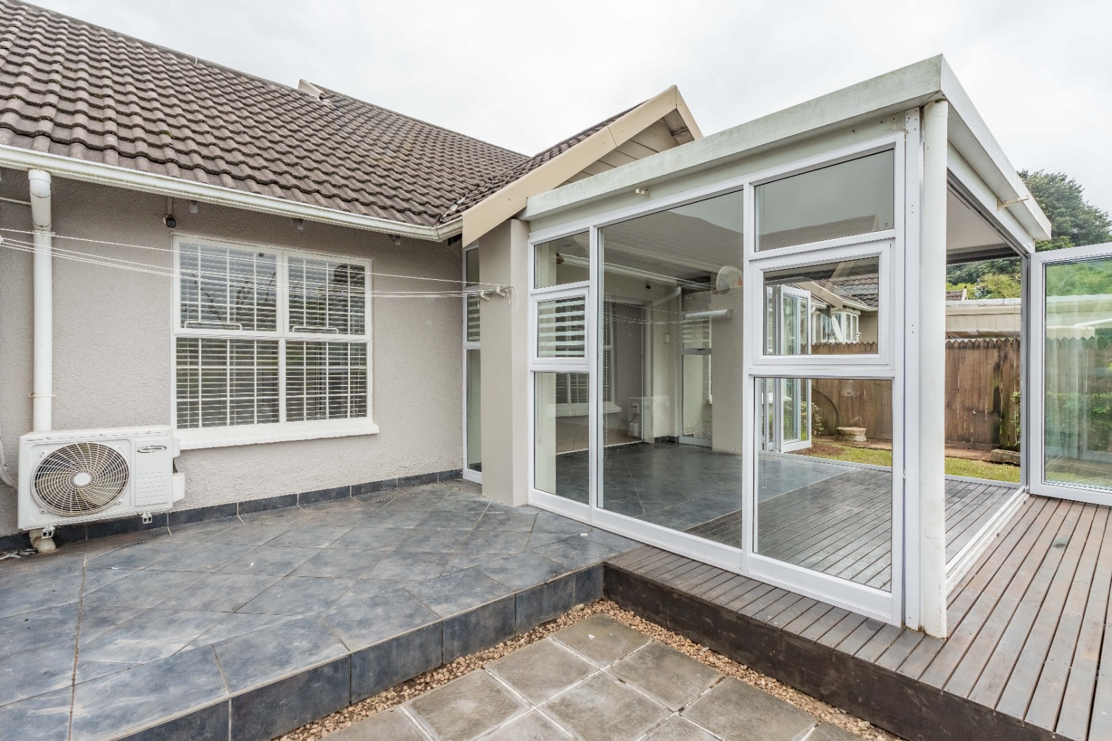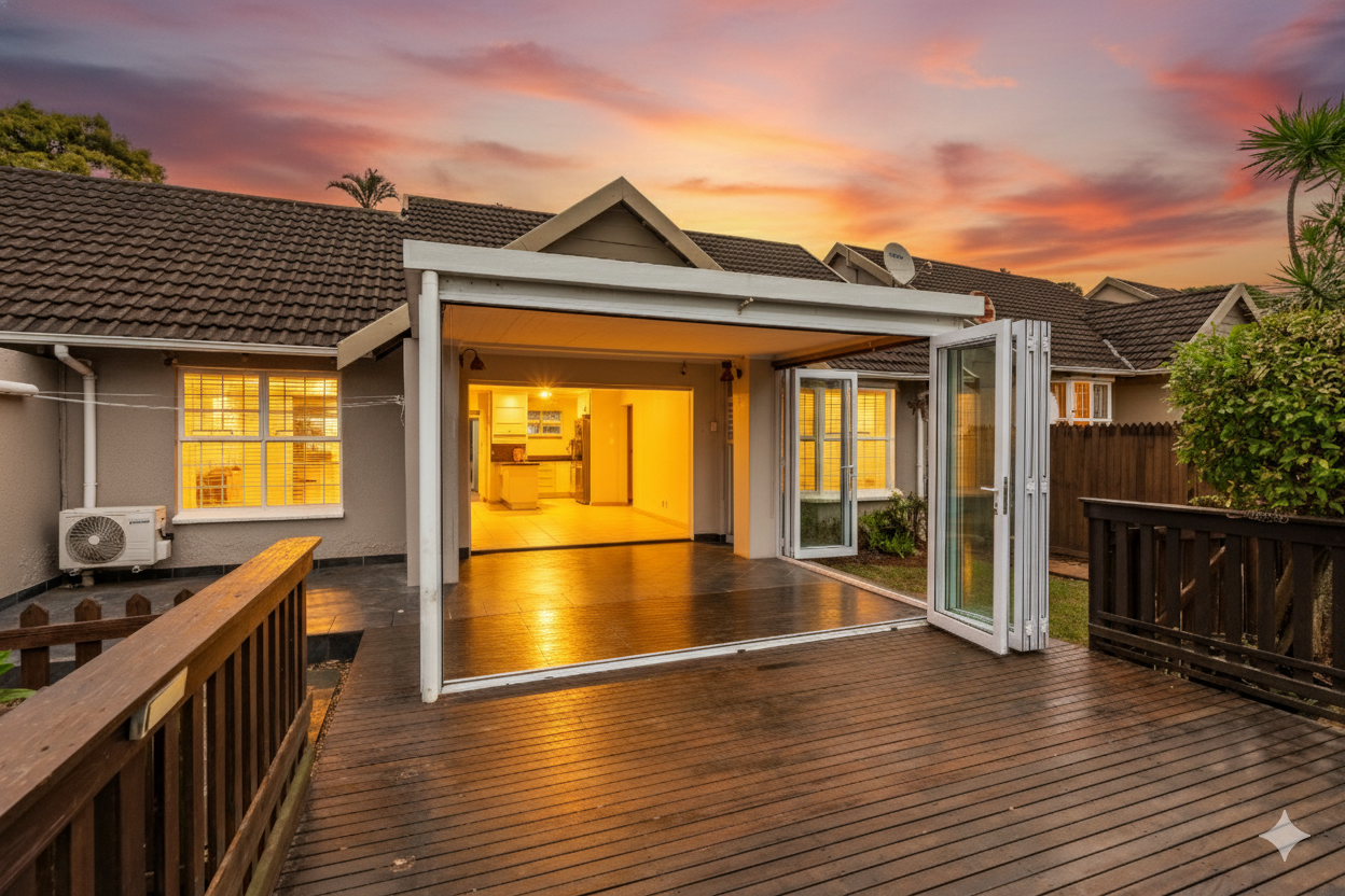 This pet-friendly, stepless three bedroom, two bathroom simplex offers easy living in the secure Sherborne Estate. The open plan layout flows seamlessly through tiled interiors to an enclosed patio, small garden, and deck—perfect for relaxing or entertaining.