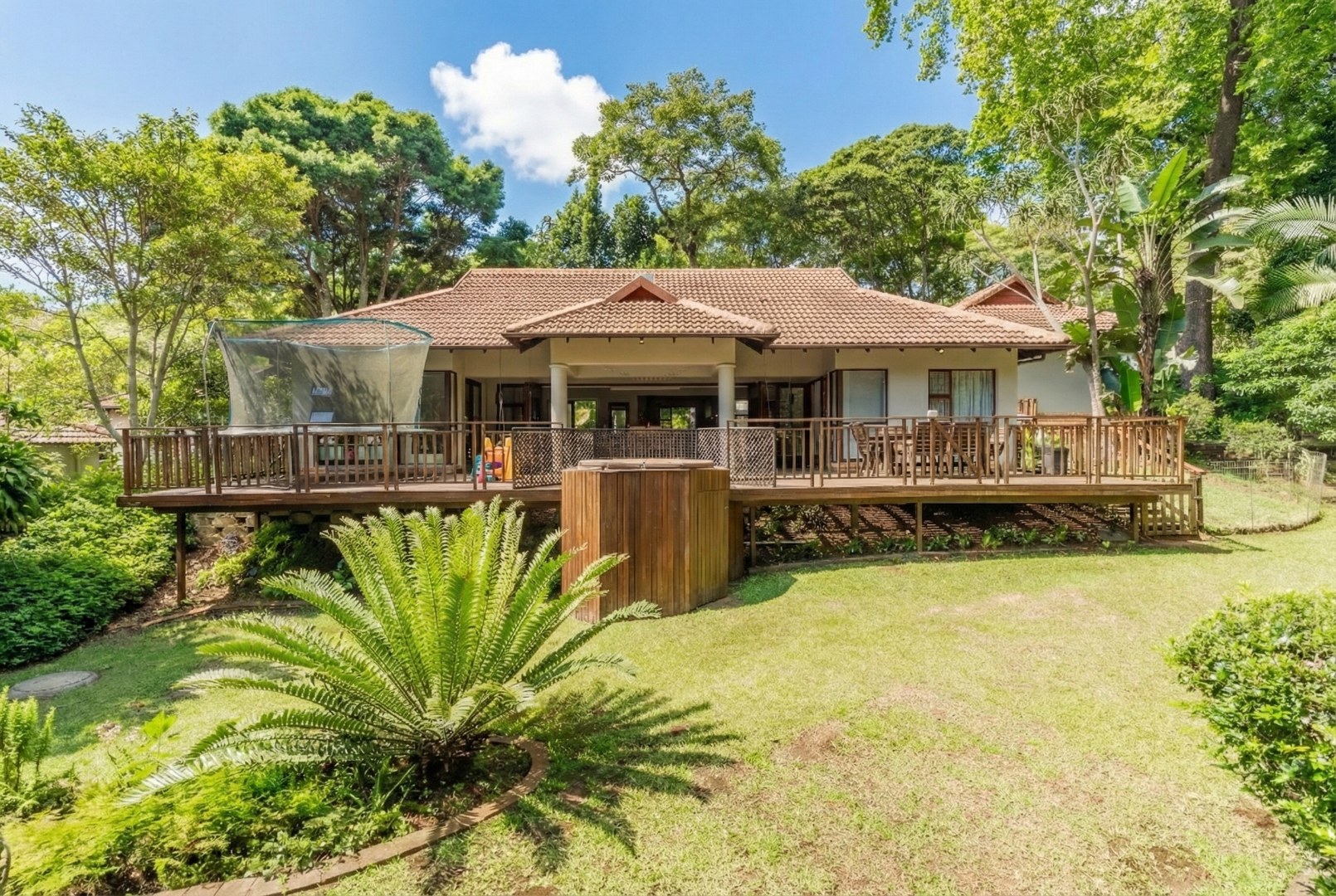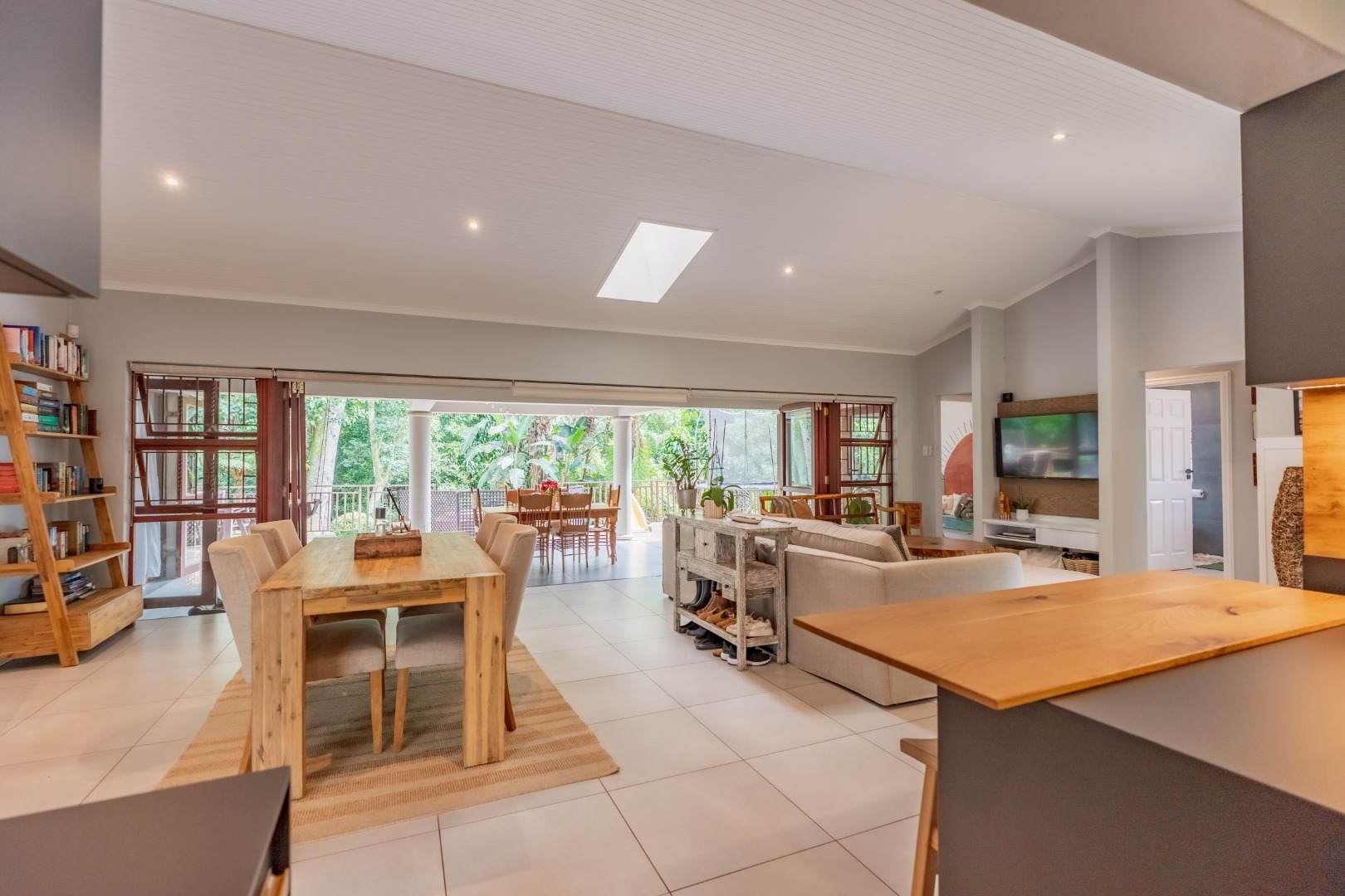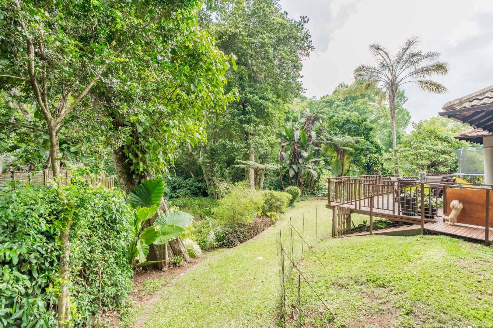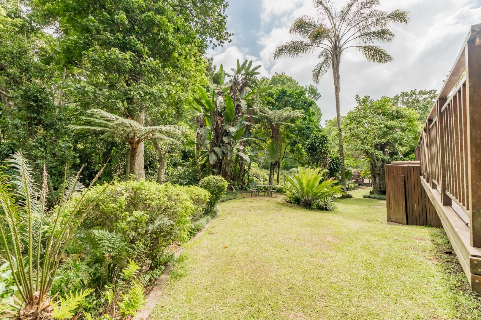 Stack back doors to large undercover patio extending onto a deck with jacuzzi overlooking indigenous stunning established garden with large trees and beautiful bird life.