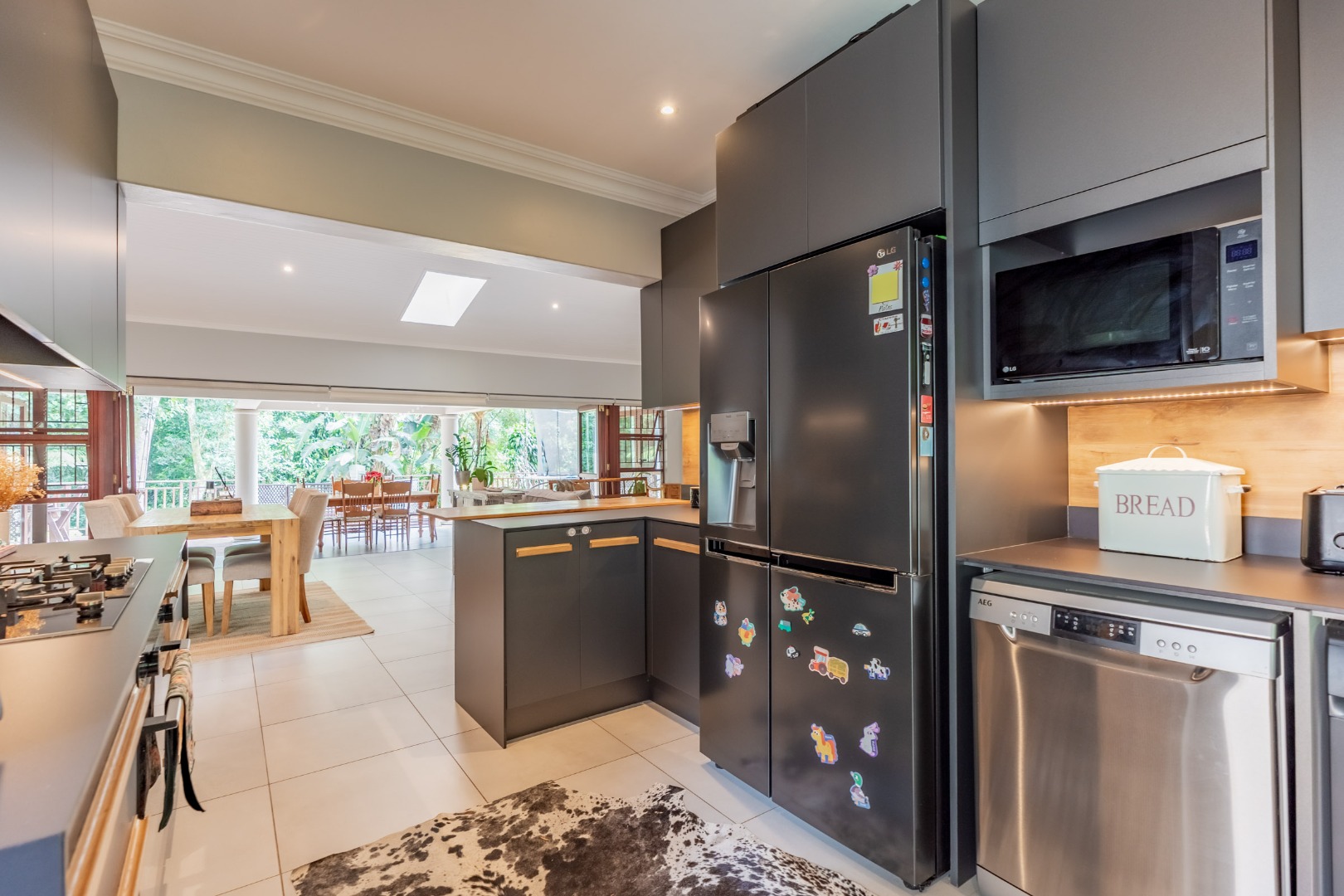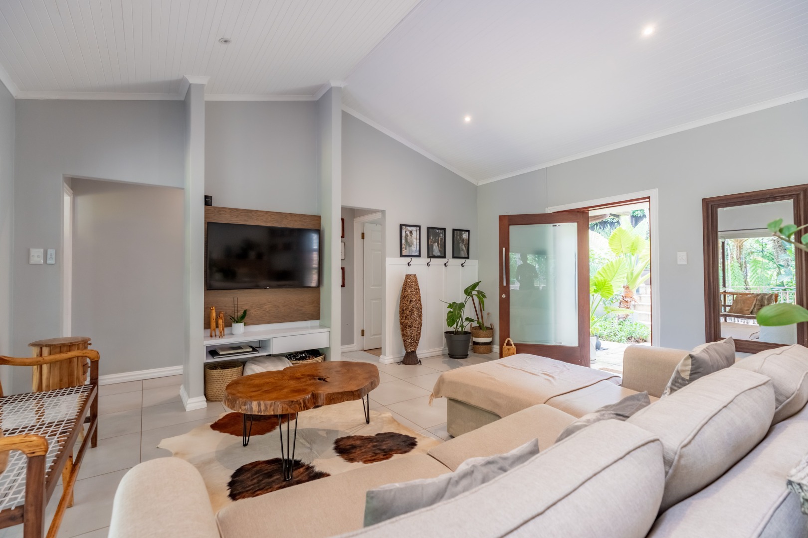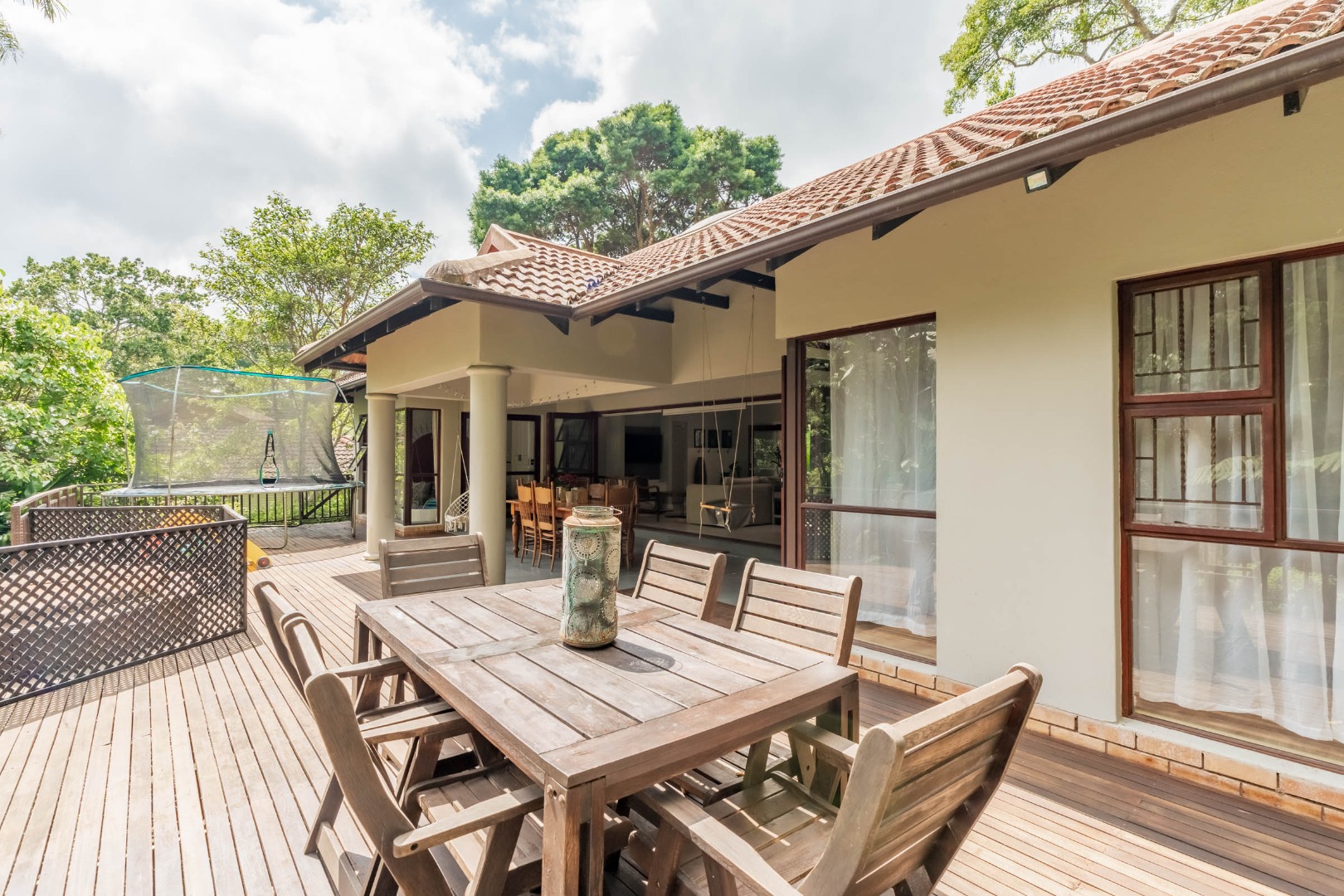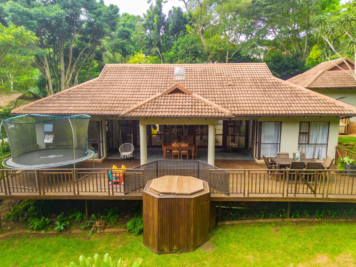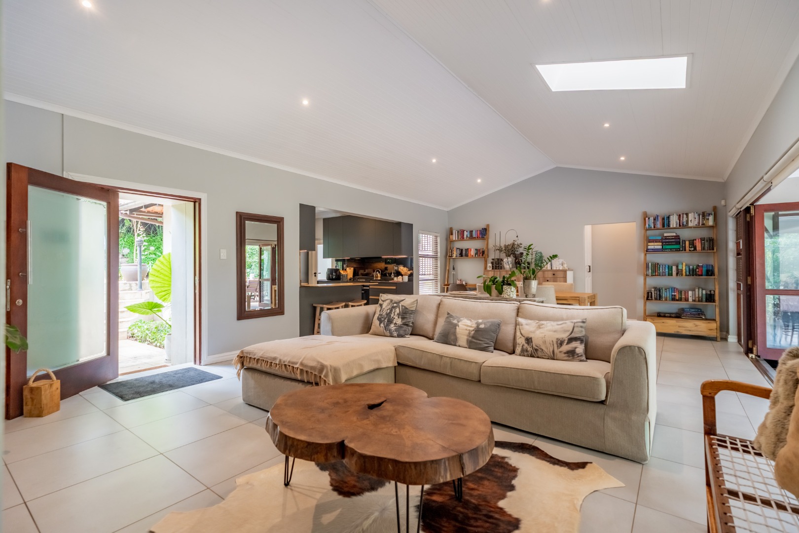 Stack back doors to large undercover patio extending onto a deck with jacuzzi overlooking indigenous stunning established garden with large trees and beautiful bird life.