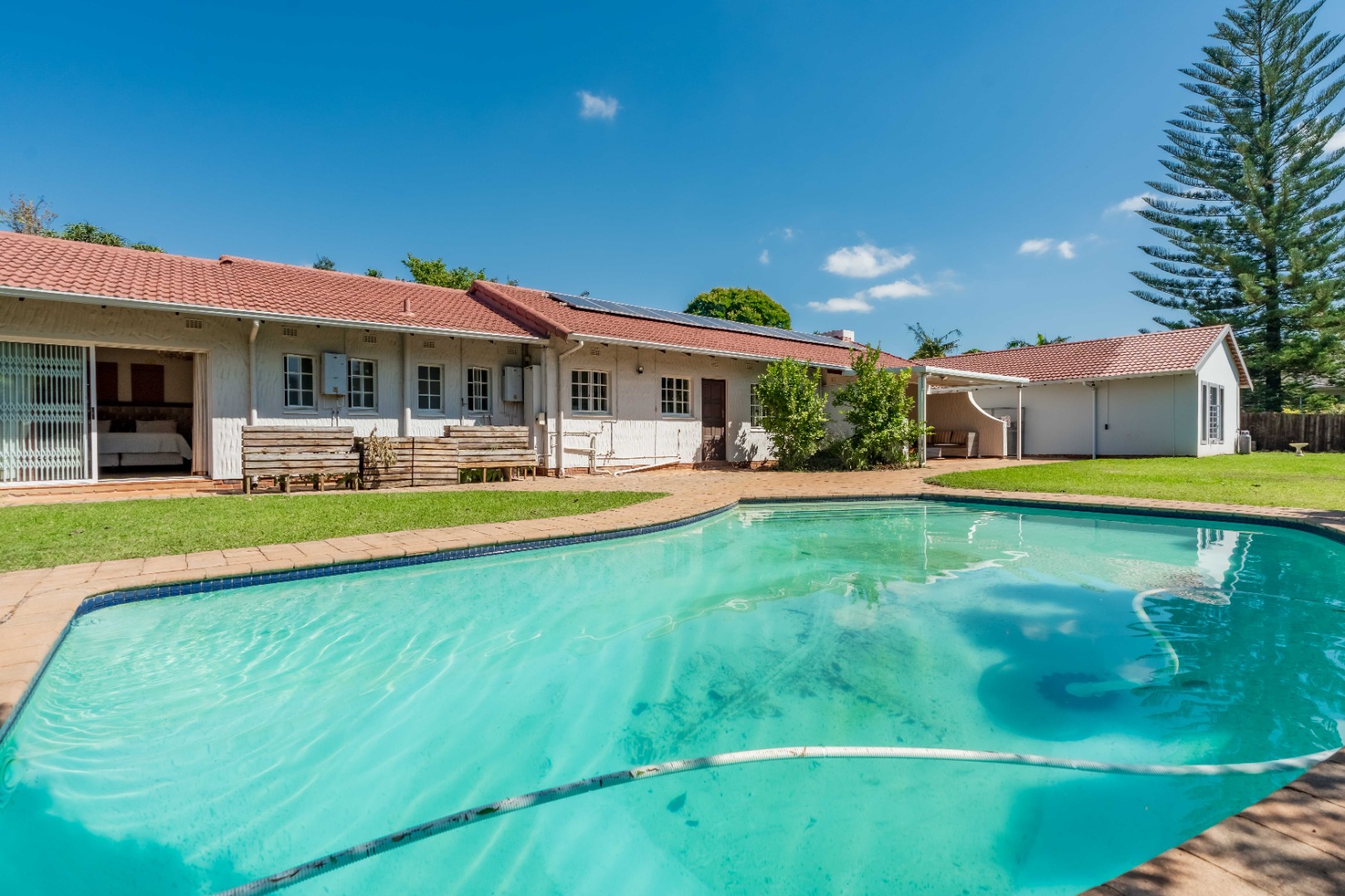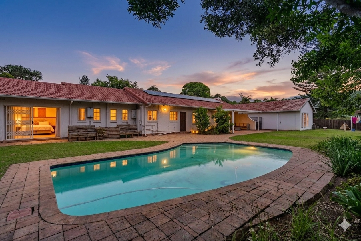 An added bonus is the modern, income-generating one-bedroom cottage. It features an open-plan kitchen and lounge, a spacious bedroom, and a contemporary bathroom – perfect for rental income or extended family.