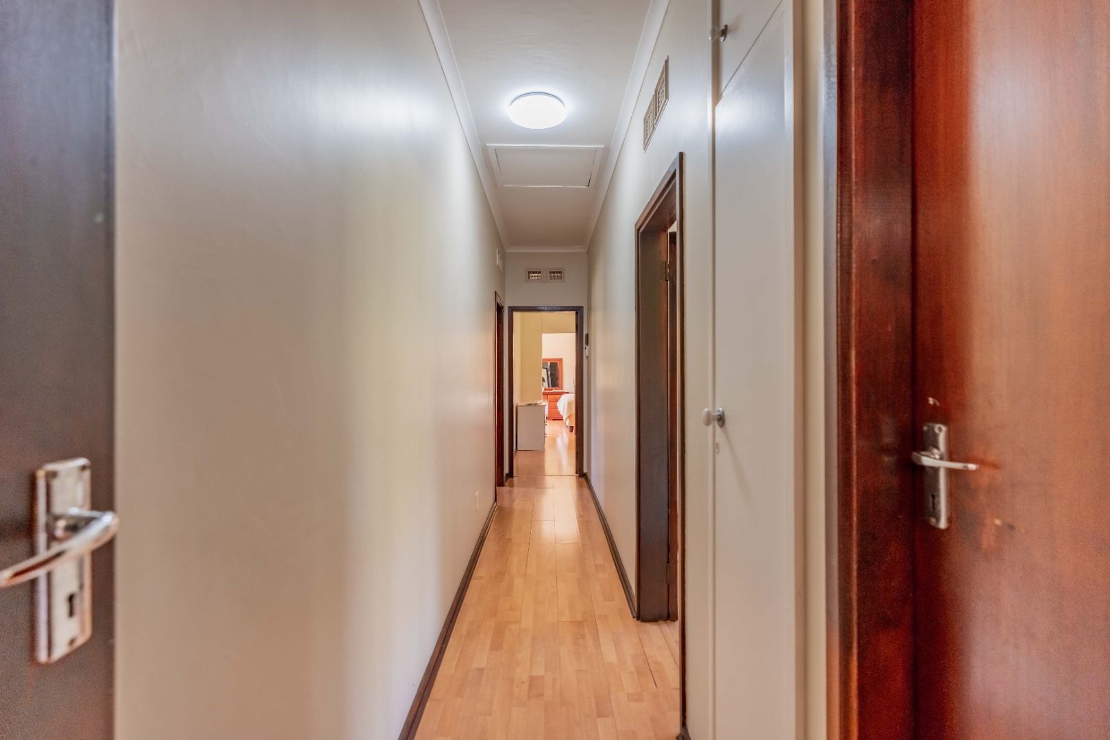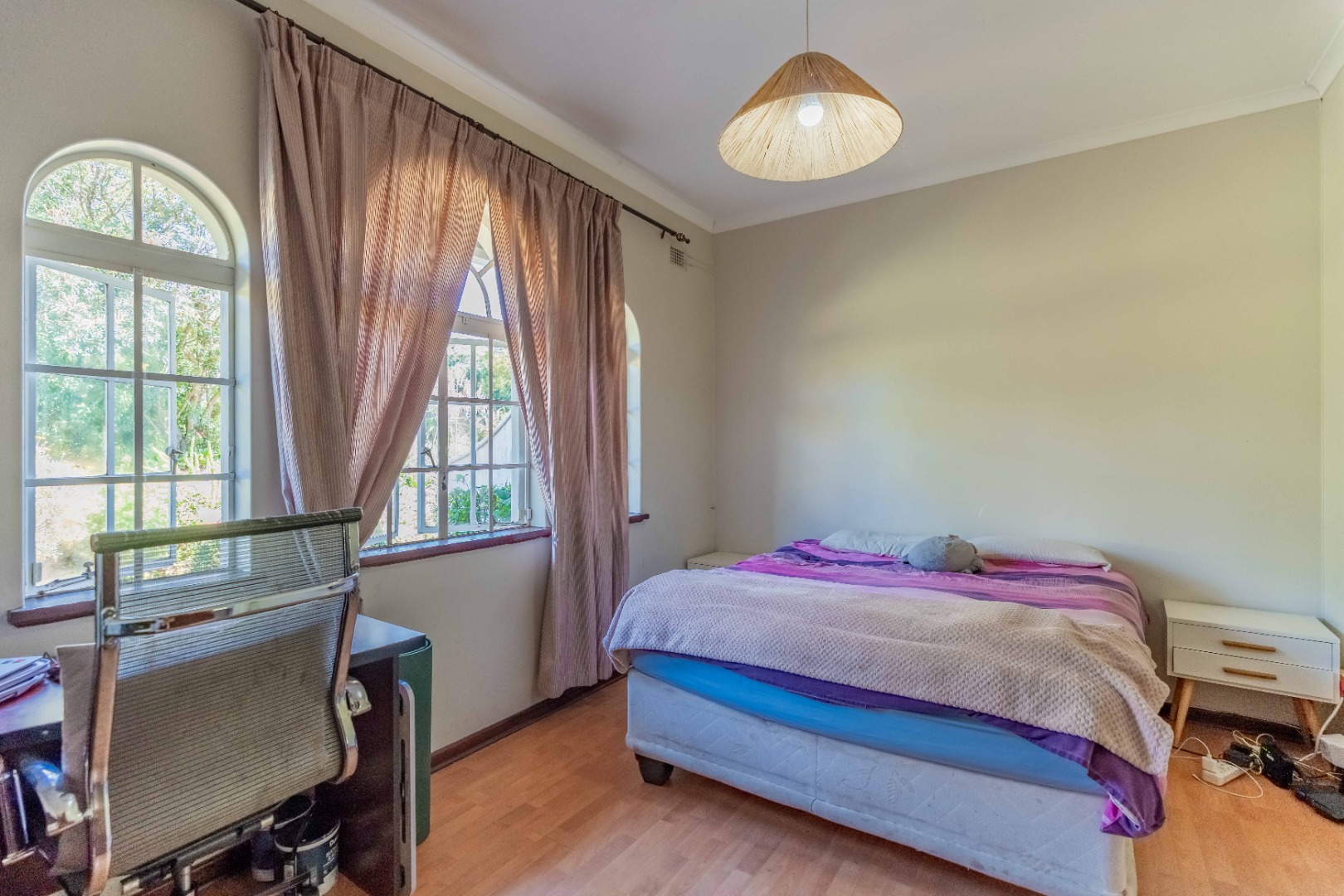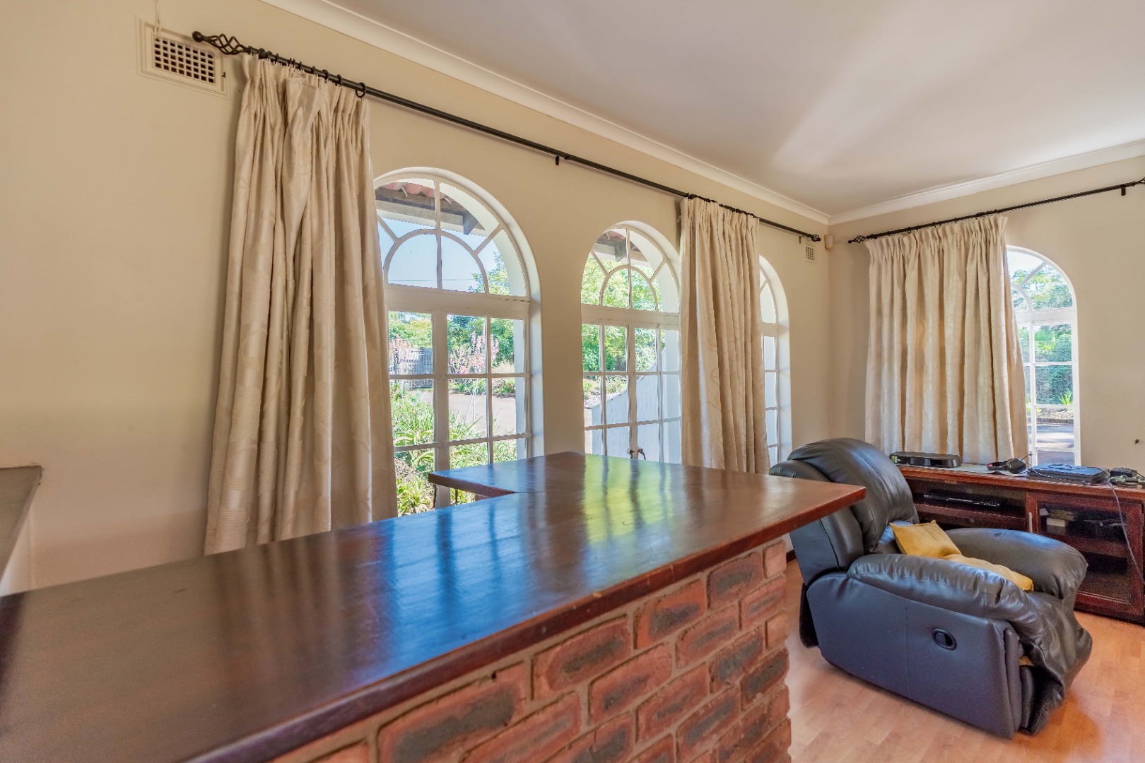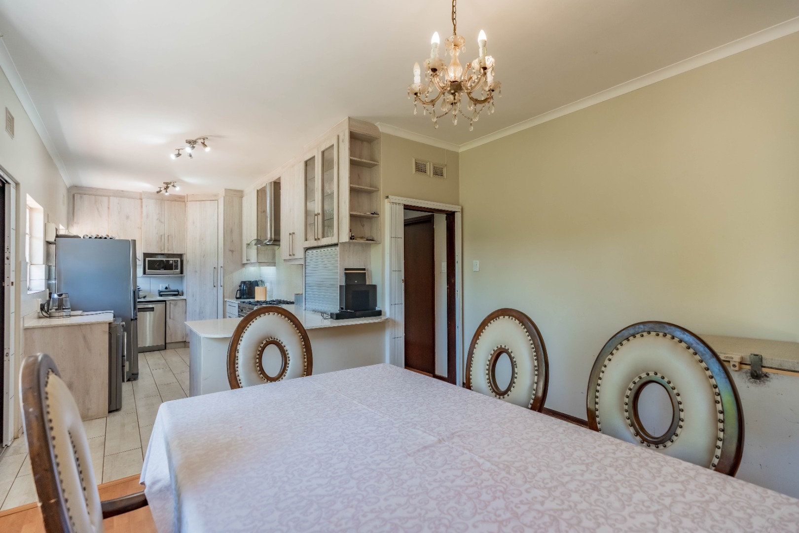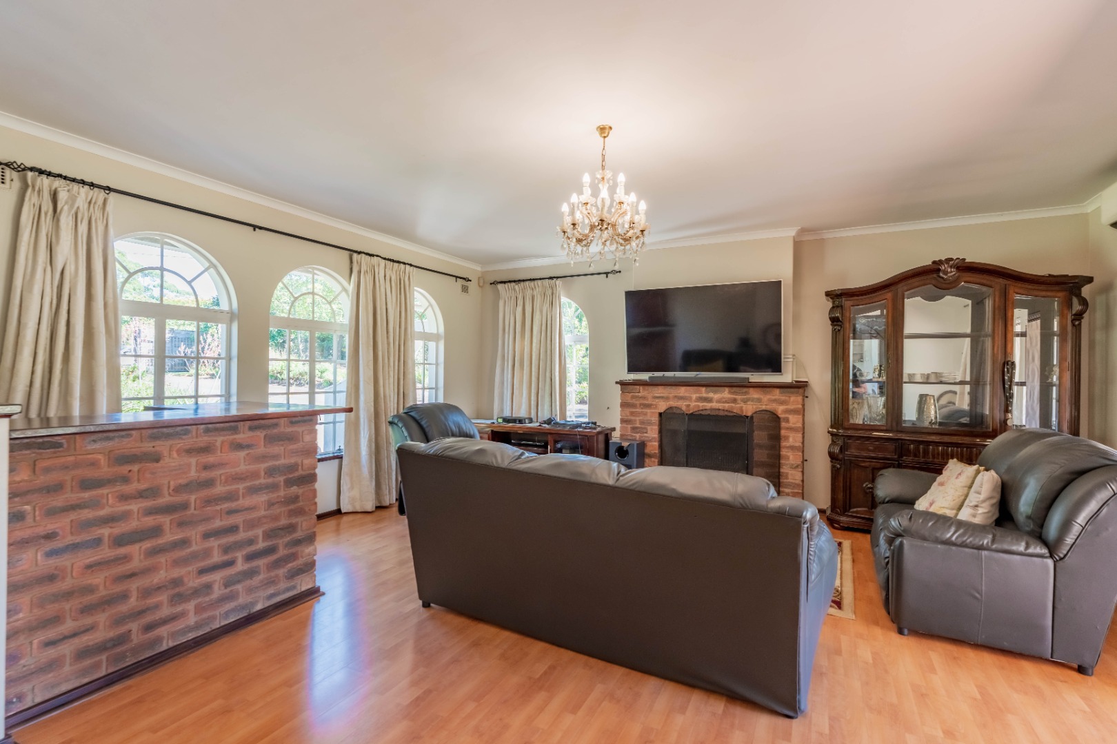 The home offers four spacious bedrooms, all with built-in cupboards. The main bedroom includes its own en-suite bathroom, providing a private retreat.