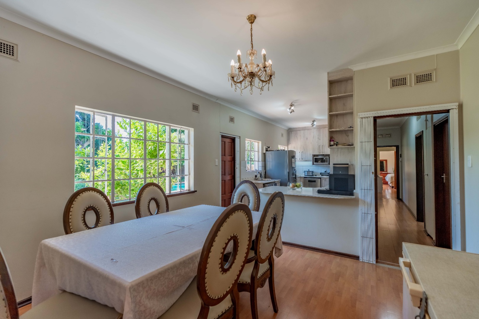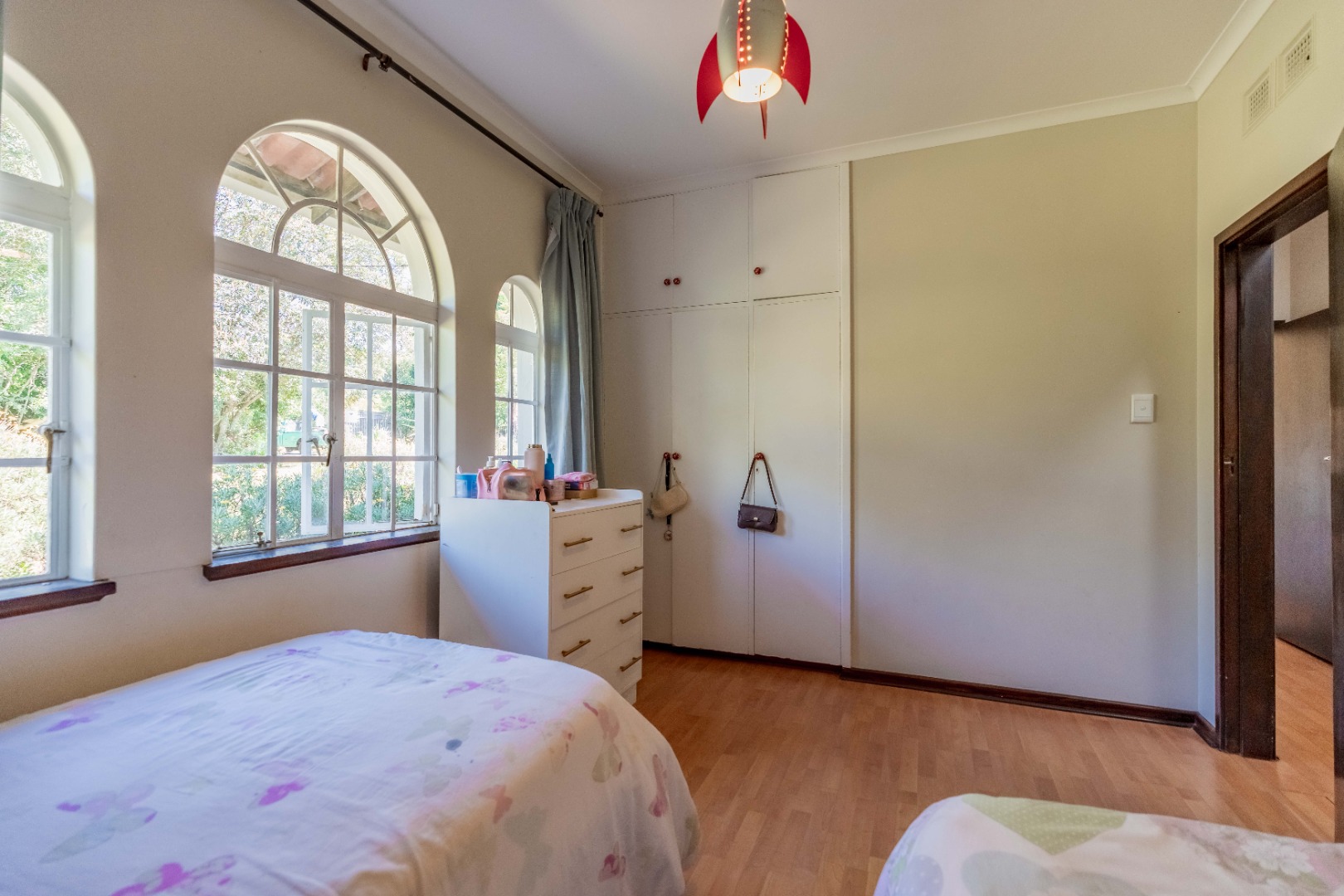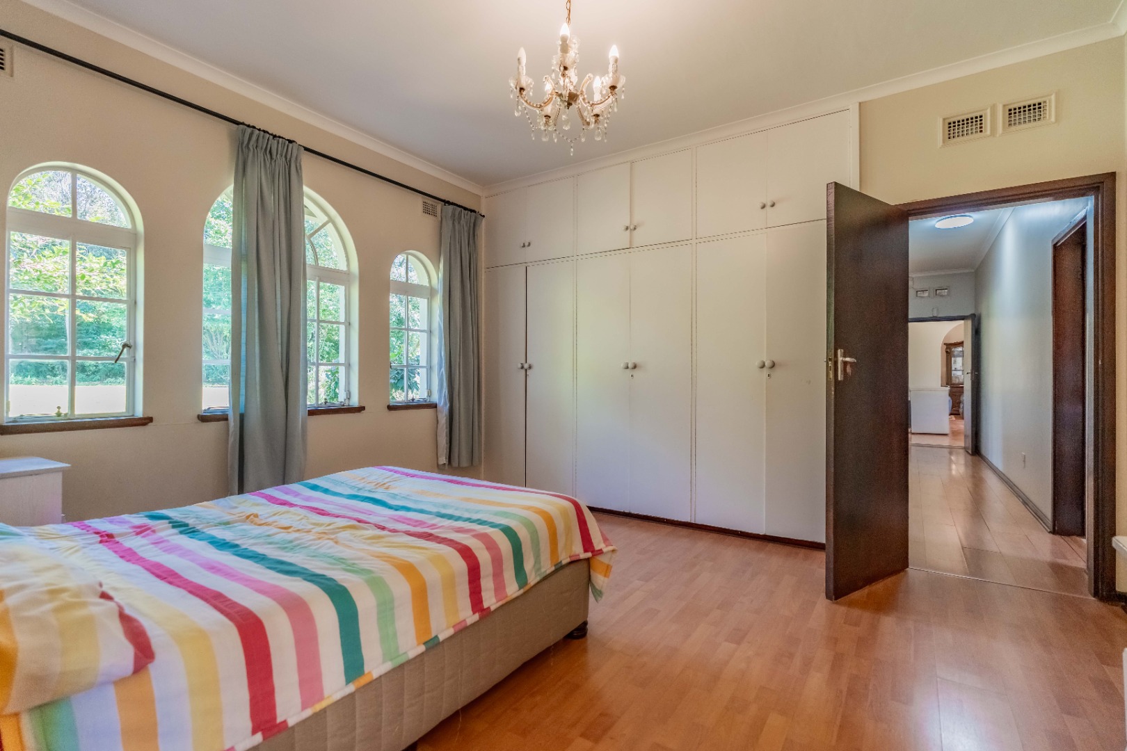The home offers four spacious bedrooms, all with built-in cupboards. The main bedroom includes its own en-suite bathroom, providing a private retreat.