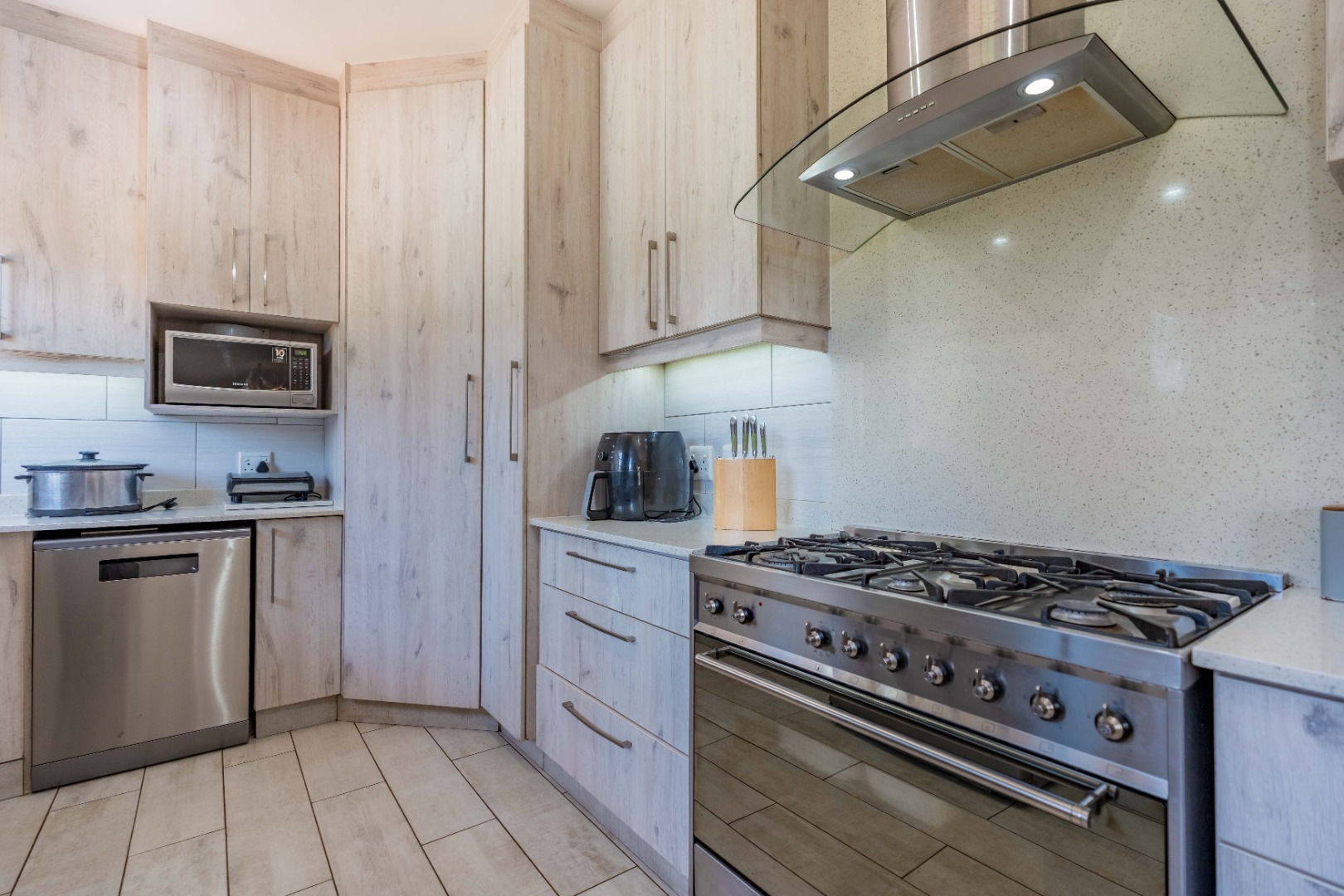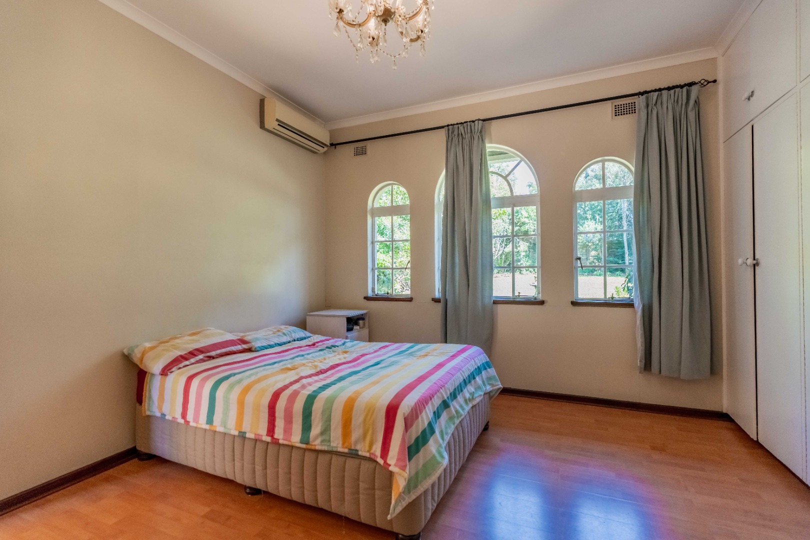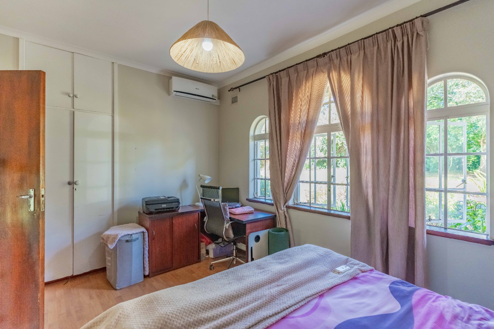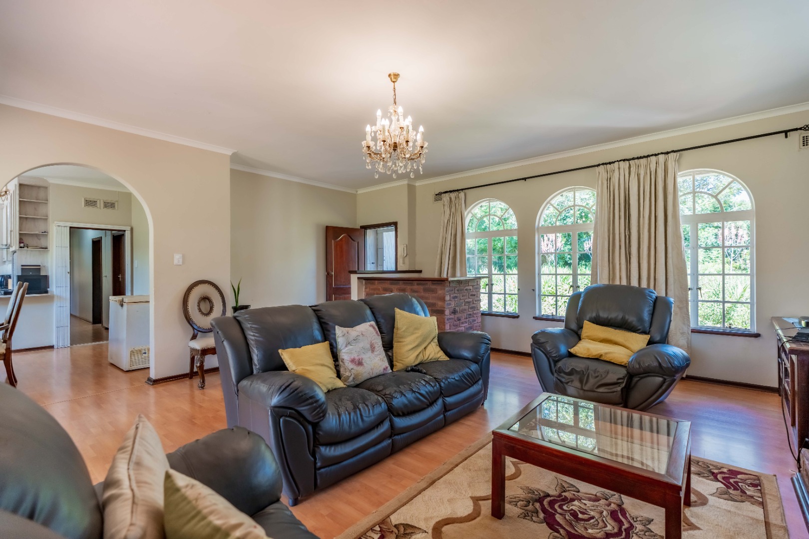 The home offers four spacious bedrooms, all with built-in cupboards. The main bedroom includes its own en-suite bathroom, providing a private retreat.