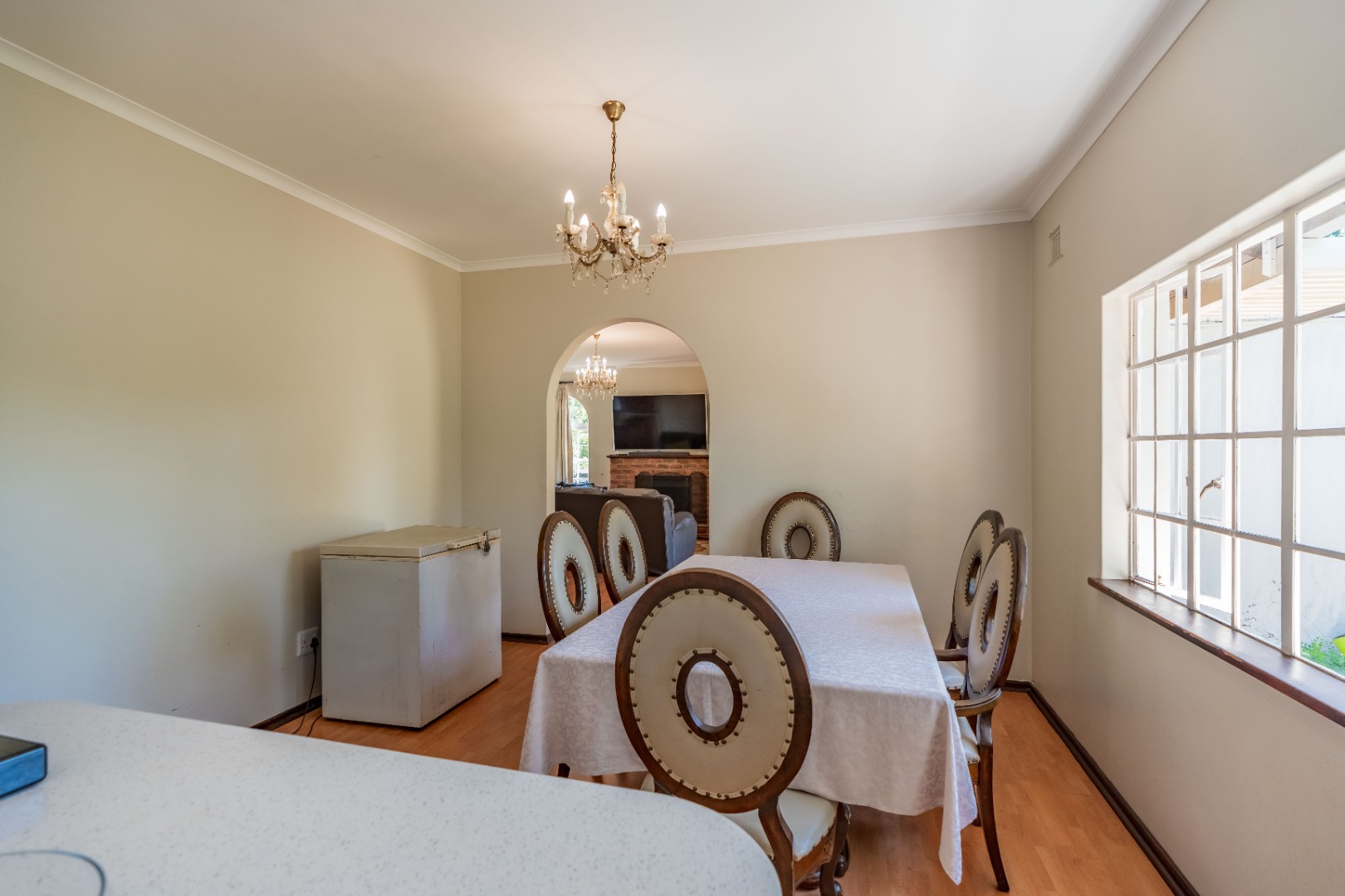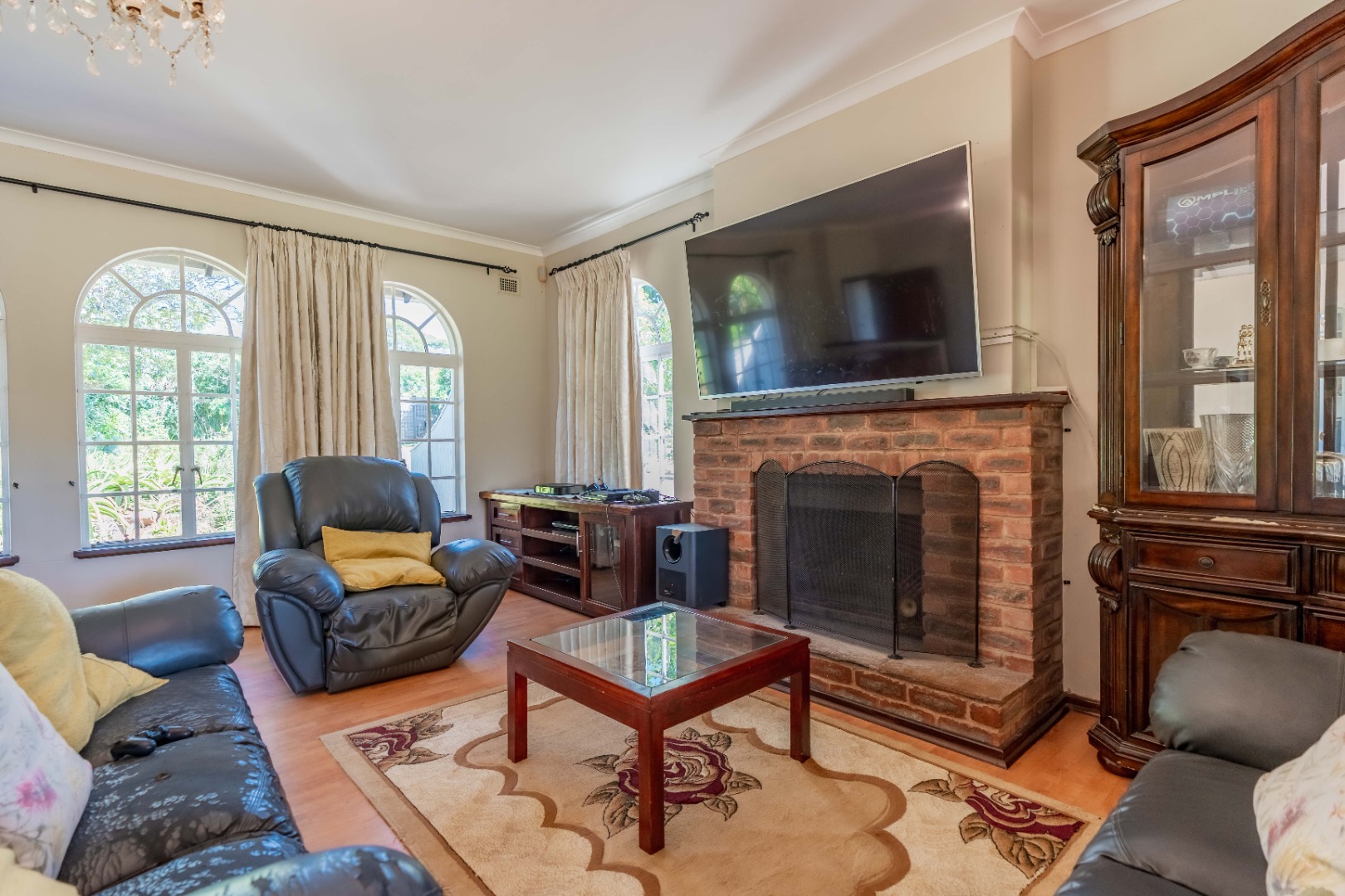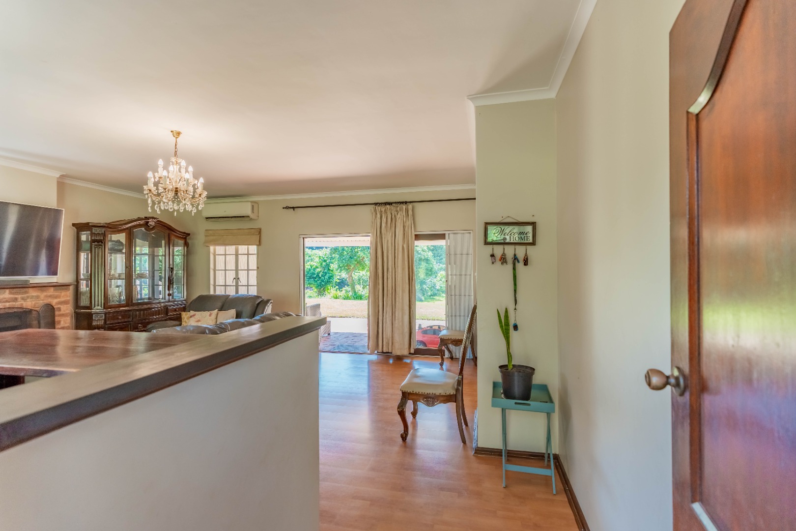 As you step inside, you’re welcomed by a spacious lounge featuring a cozy fireplace and built-in bar, perfect for entertaining. The lounge flows effortlessly onto a covered patio overlooking a sparkling pool and a beautifully maintained garden – ideal for relaxed family living.