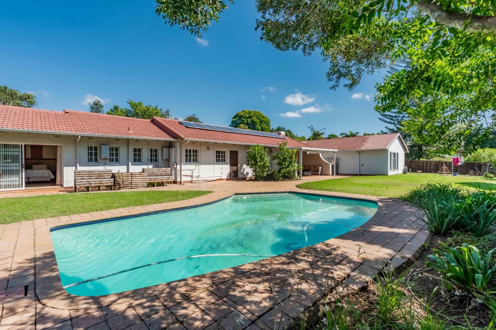 An added bonus is the modern, income-generating one-bedroom cottage. It features an open-plan kitchen and lounge, a spacious bedroom, and a contemporary bathroom – perfect for rental income or extended family.