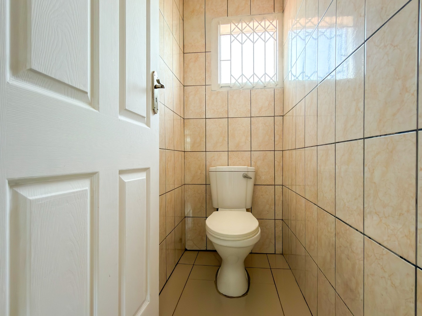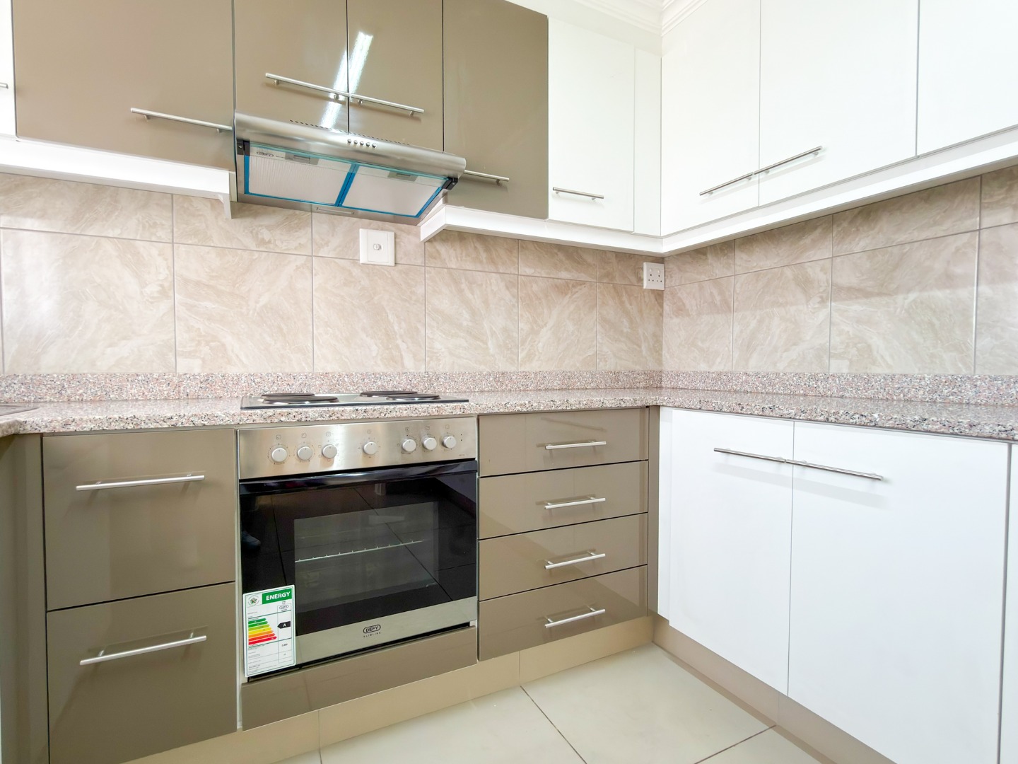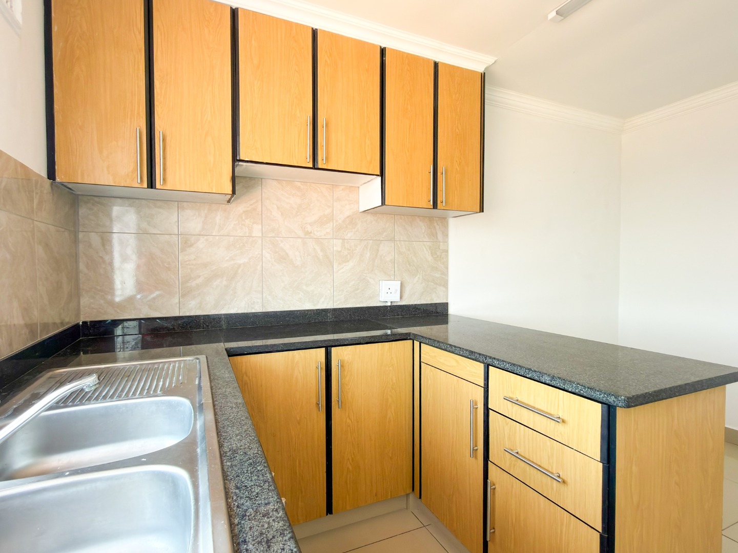 Upstairs features two spacious bedrooms, along with a bathroom and a separate toilet. This level is also fully tiled and includes an open-plan lounge and kitchen, complete with granite countertops and built-in cupboards.