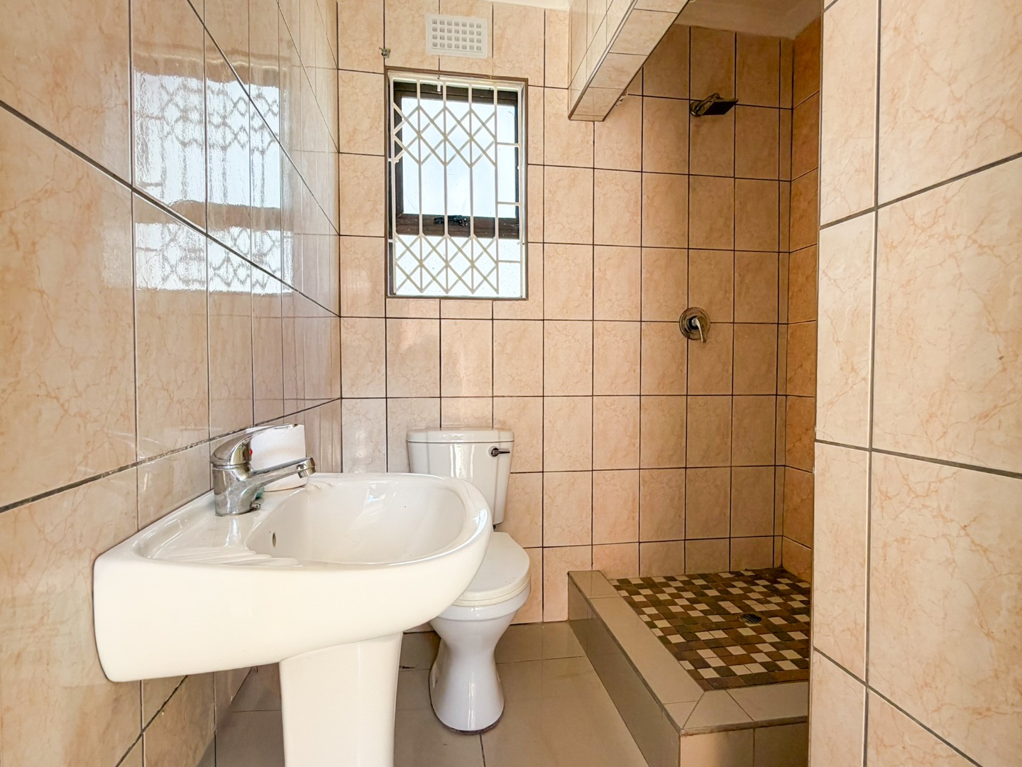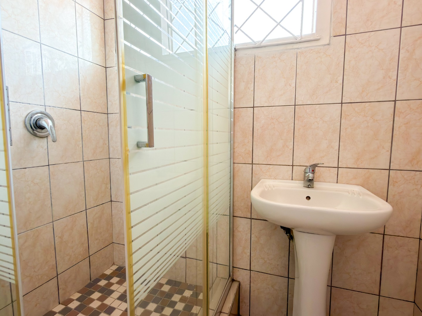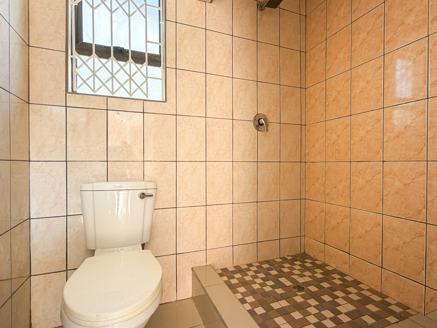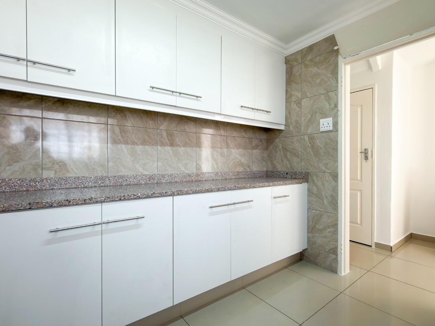 Upstairs features two spacious bedrooms, along with a bathroom and a separate toilet. This level is also fully tiled and includes an open-plan lounge and kitchen, complete with granite countertops and built-in cupboards.
