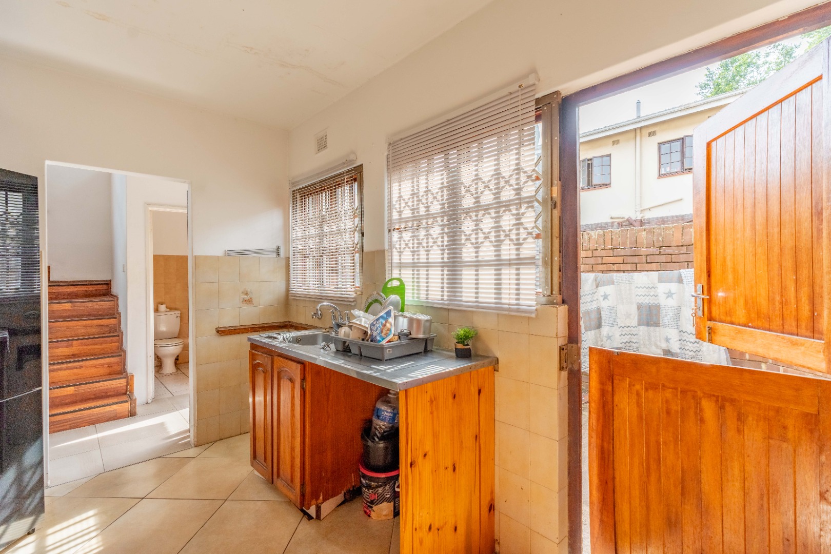 Step into the spacious open-plan living area, which flows onto a private patio and garden – perfect for relaxed weekends or entertaining friends. The kitchen is practical and well-positioned, with a courtyard at the back for laundry or extra storage. A guest loo downstairs adds extra convenience.
