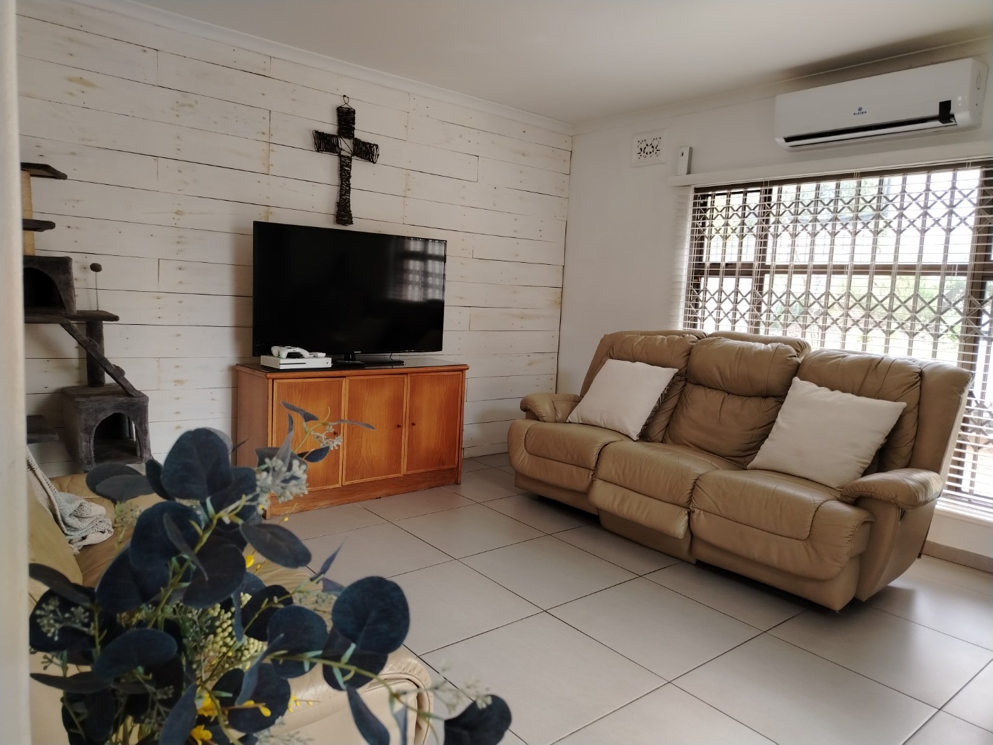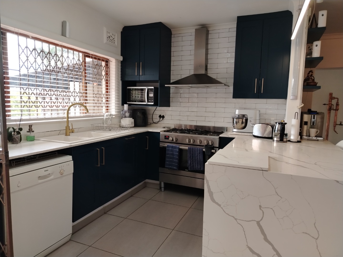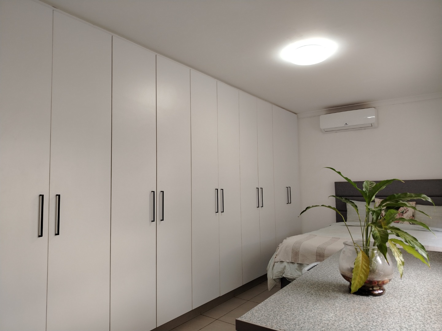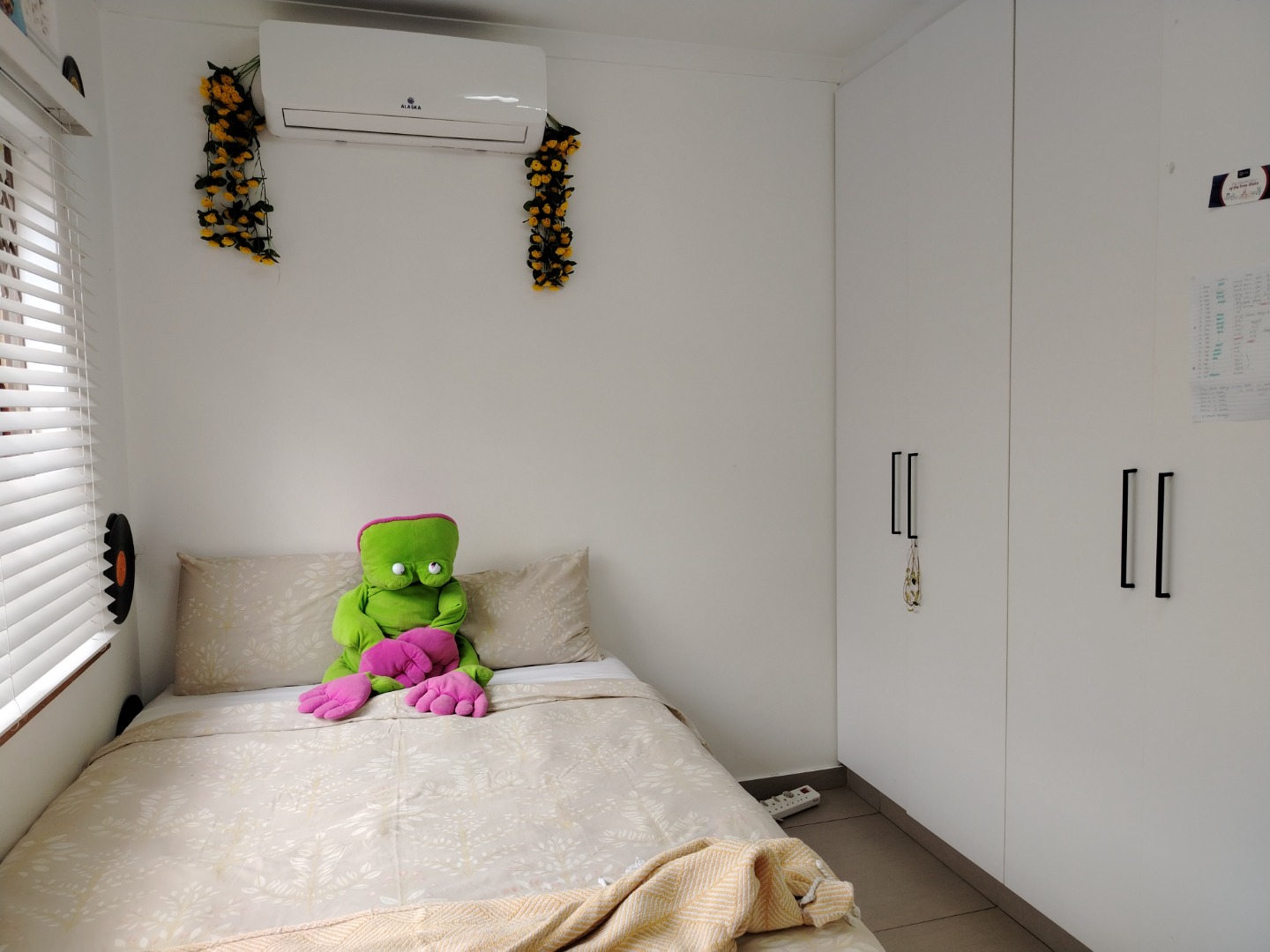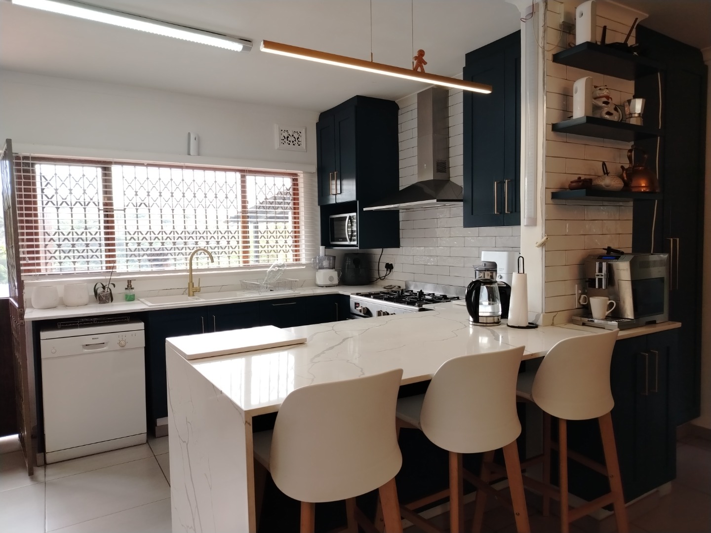The home offers a spacious lounge and dining room, flowing seamlessly into a dream kitchen fitted with quartz countertops, a breakfast nook, ample cupboard space, a 5-plate gas stove and electric oven – perfect for any home chef. All bedrooms and living areas are air-conditioned for year-round comfort. The main en-suite features a full bathroom with a corner bath, large shower, basin and toilet, while the modern family bathroom includes a large shower, basin and toilet. The versatile 4th bedroom comes with built-in cupboards and its own entrance, ideal for a teen pad, office or guest suite.