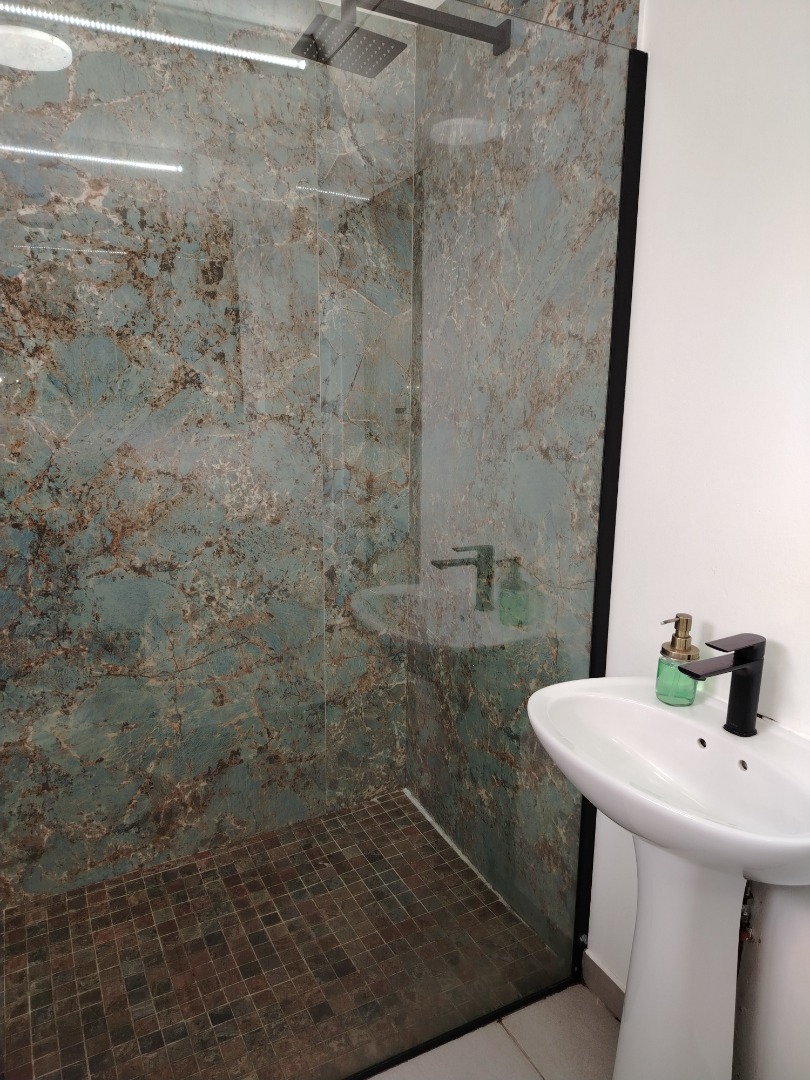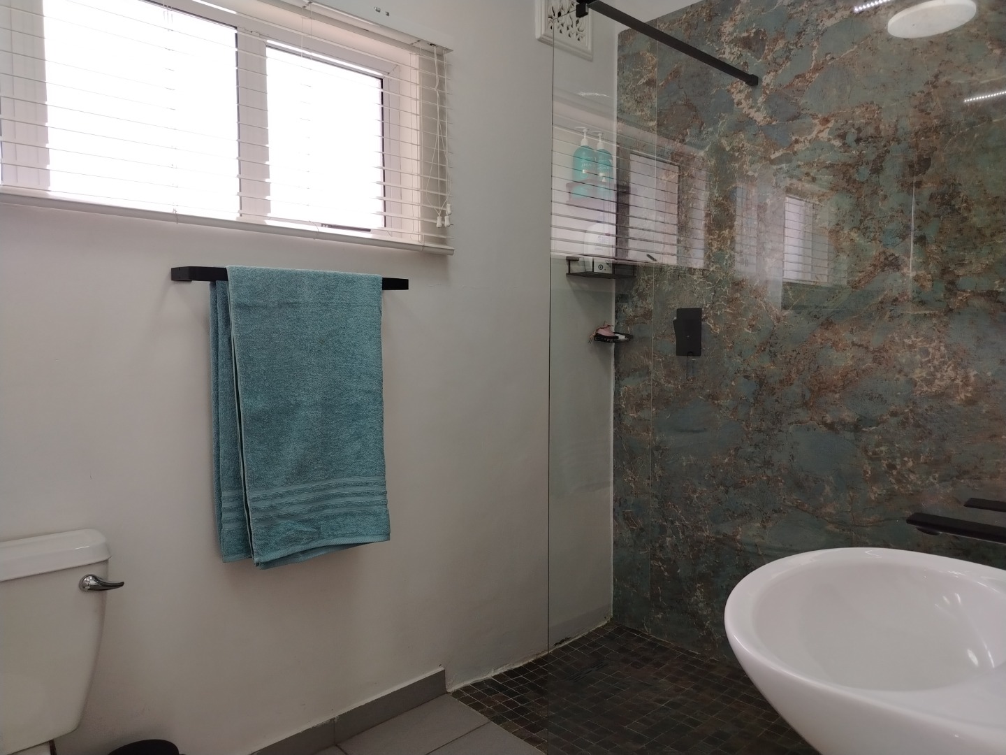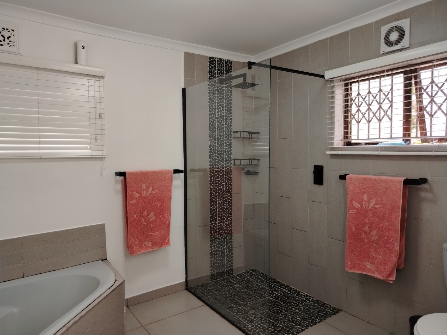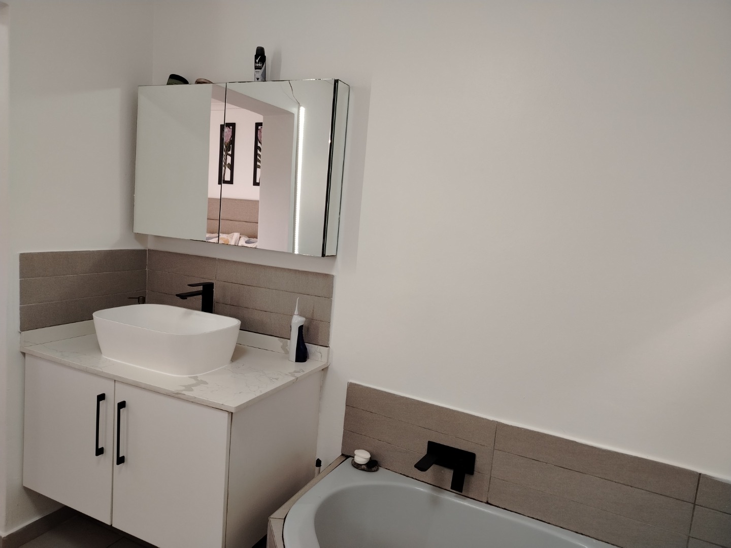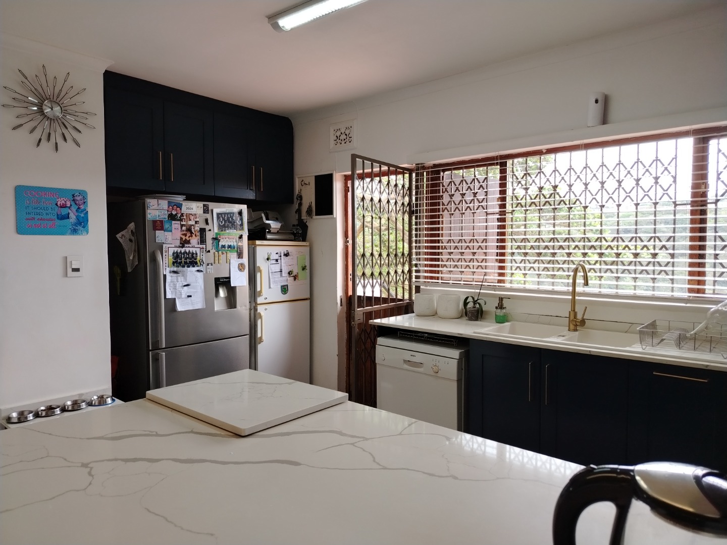 The home offers a spacious lounge and dining room, flowing seamlessly into a dream kitchen fitted with quartz countertops, a breakfast nook, ample cupboard space, a 5-plate gas stove and electric oven – perfect for any home chef. All bedrooms and living areas are air-conditioned for year-round comfort. The main en-suite features a full bathroom with a corner bath, large shower, basin and toilet, while the modern family bathroom includes a large shower, basin and toilet. The versatile 4th bedroom comes with built-in cupboards and its own entrance, ideal for a teen pad, office or guest suite.