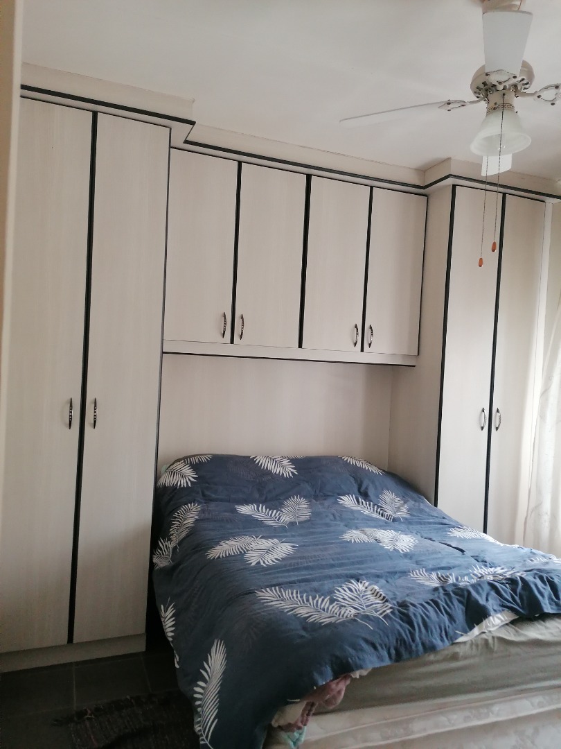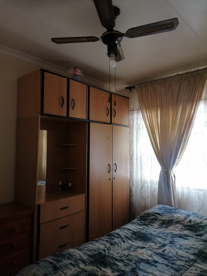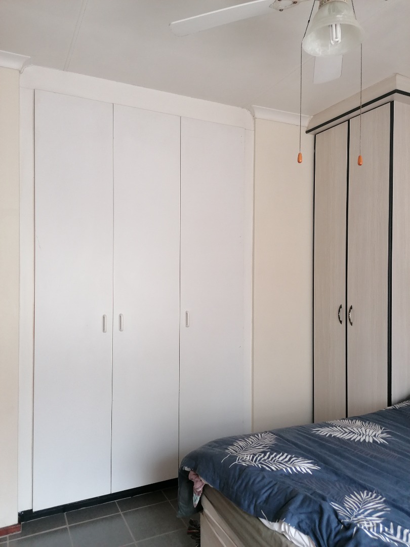 Well-sized bedrooms with built-in cupboards, ceiling fan, and burglar guards – all tiled throughout for easy maintenance.