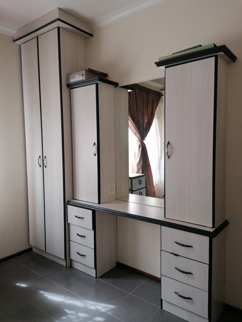Well-sized bedrooms with built-in cupboards, ceiling fan, and burglar guards – all tiled throughout for easy maintenance.