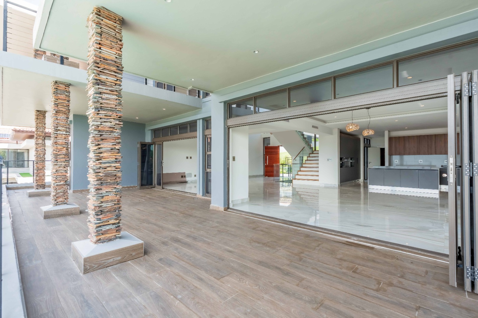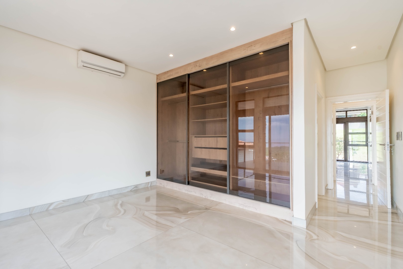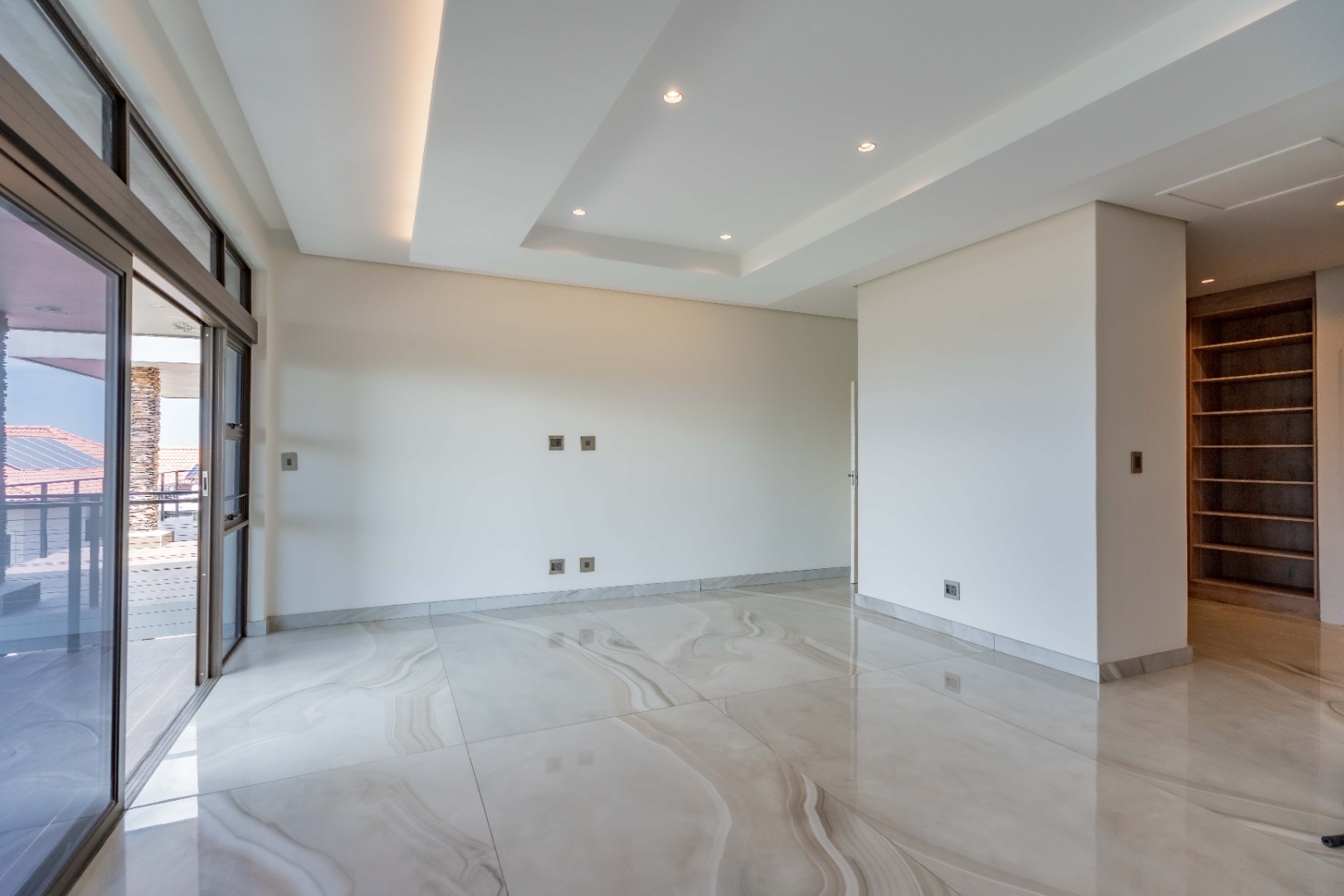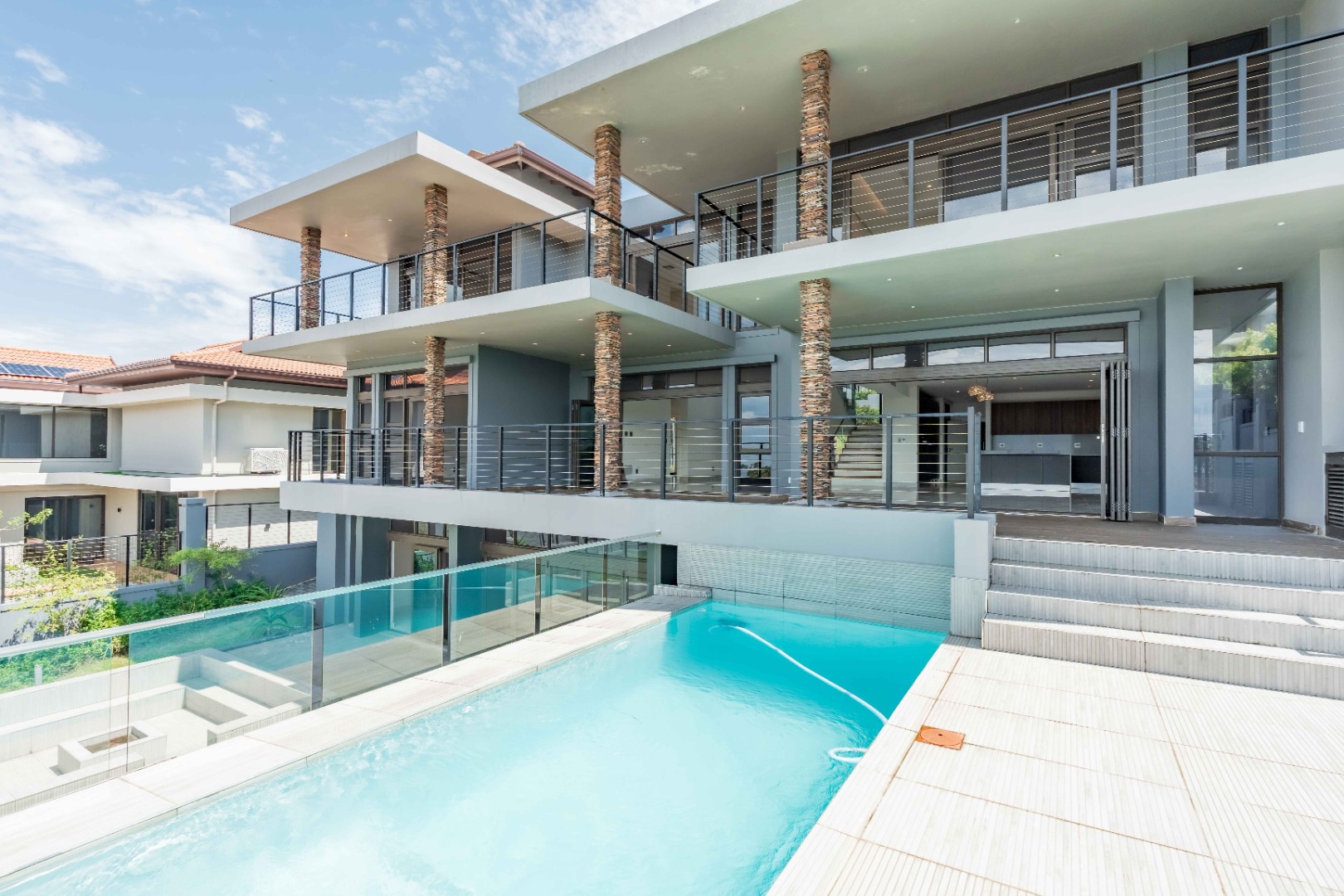 Upstairs has a large lounge , Tv room . 3 Bedrooms all en-suite. The main bedroom has a large dressing room and bathroom. All rooms lead out to their own balconies and a private out door shower . Downstairs has a Built in Bar , large cinema room, guest loo and gym all leads to a patio with Built in Braai and fire Pit . Please call for private viewing