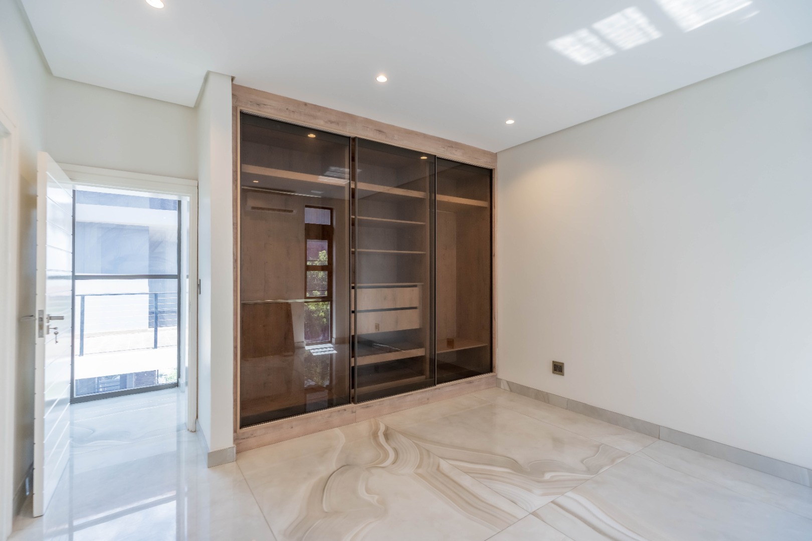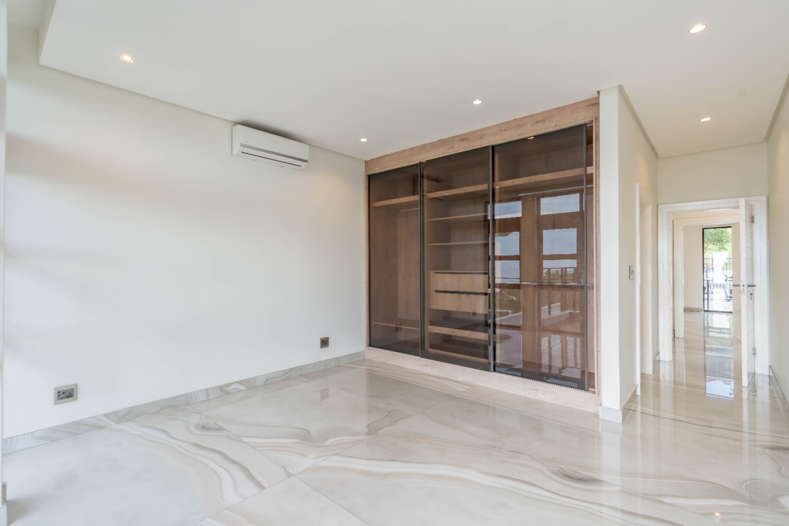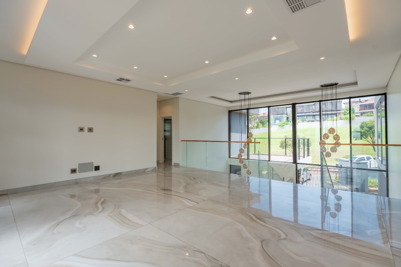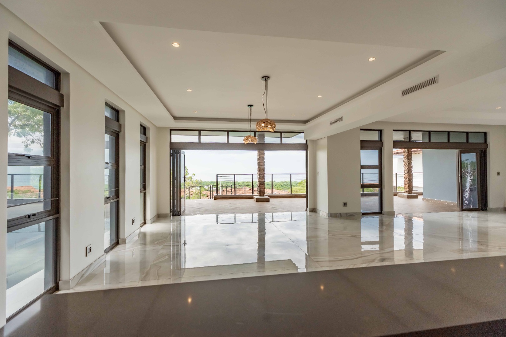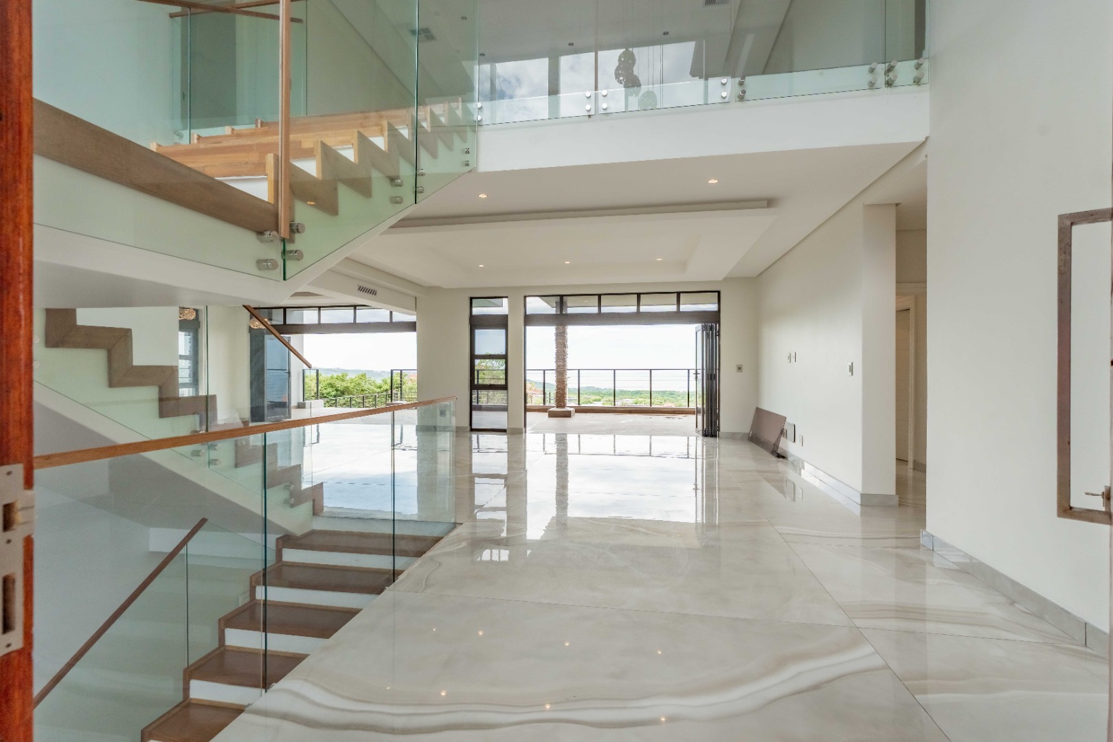 Upstairs has a large lounge , Tv room . 3 Bedrooms all en-suite. The main bedroom has a large dressing room and bathroom. All rooms lead out to their own balconies and a private out door shower . Downstairs has a Built in Bar , large cinema room, guest loo and gym all leads to a patio with Built in Braai and fire Pit . Please call for private viewing