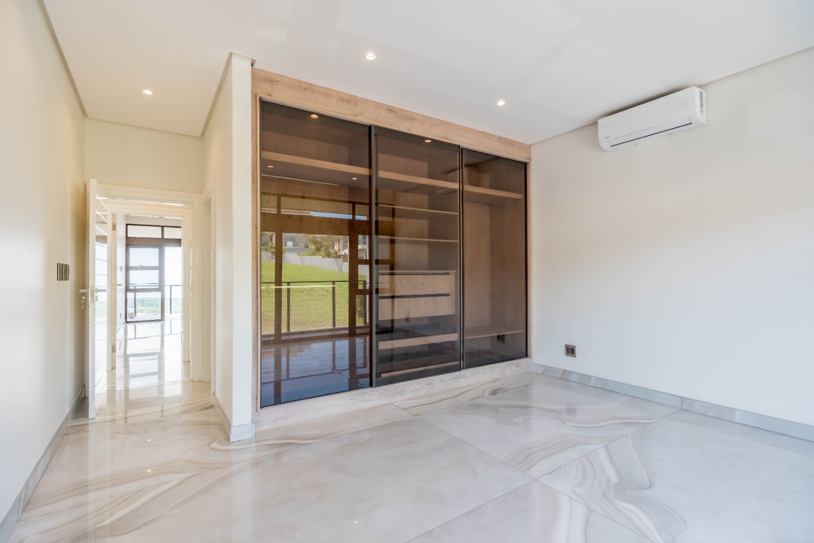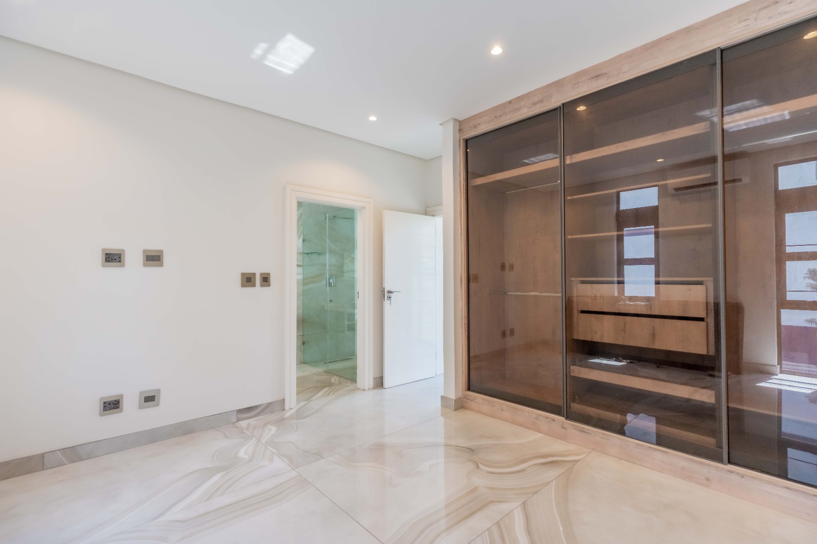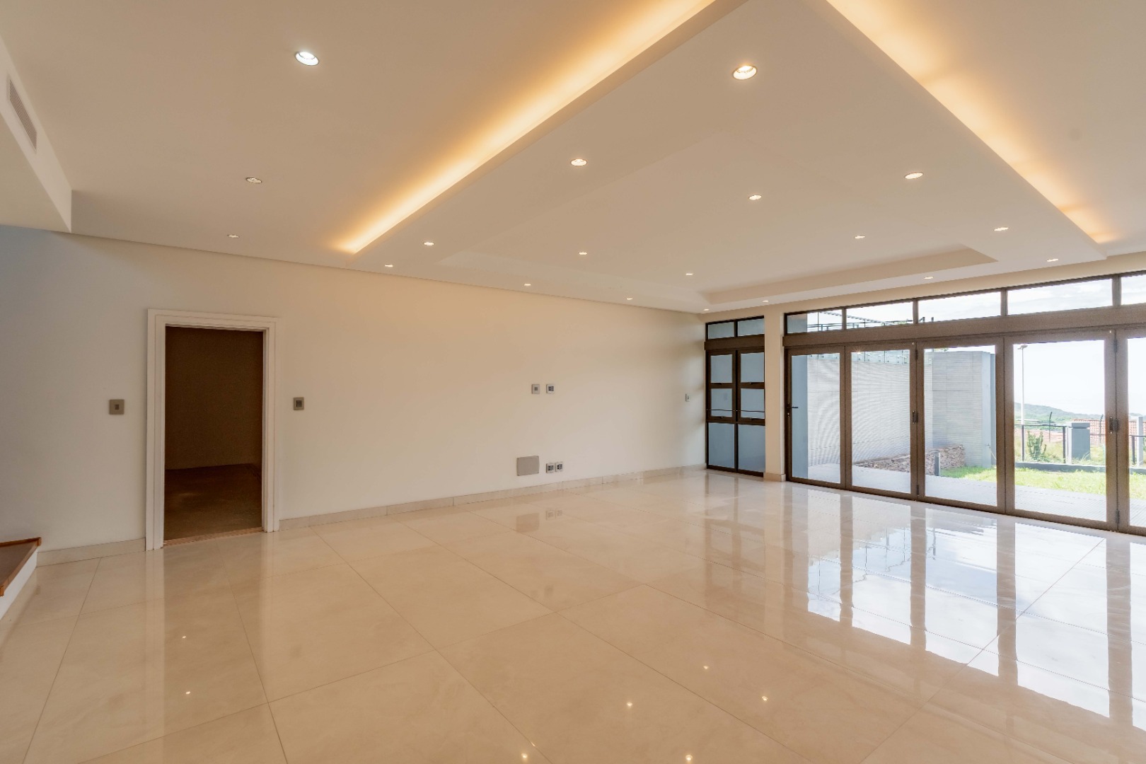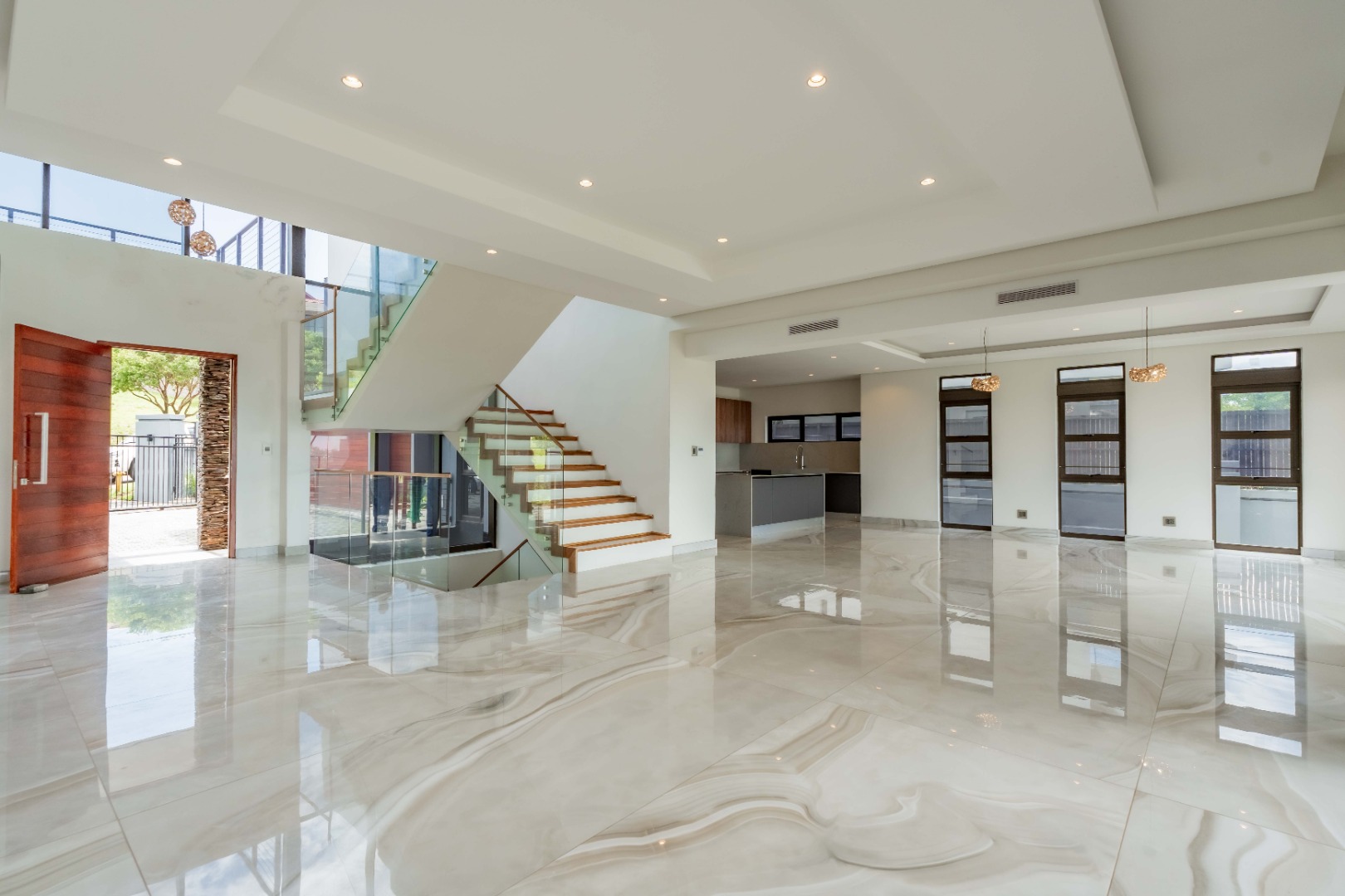 Upstairs has a large lounge , Tv room . 3 Bedrooms all en-suite. The main bedroom has a large dressing room and bathroom. All rooms lead out to their own balconies and a private out door shower . Downstairs has a Built in Bar , large cinema room, guest loo and gym all leads to a patio with Built in Braai and fire Pit . Please call for private viewing