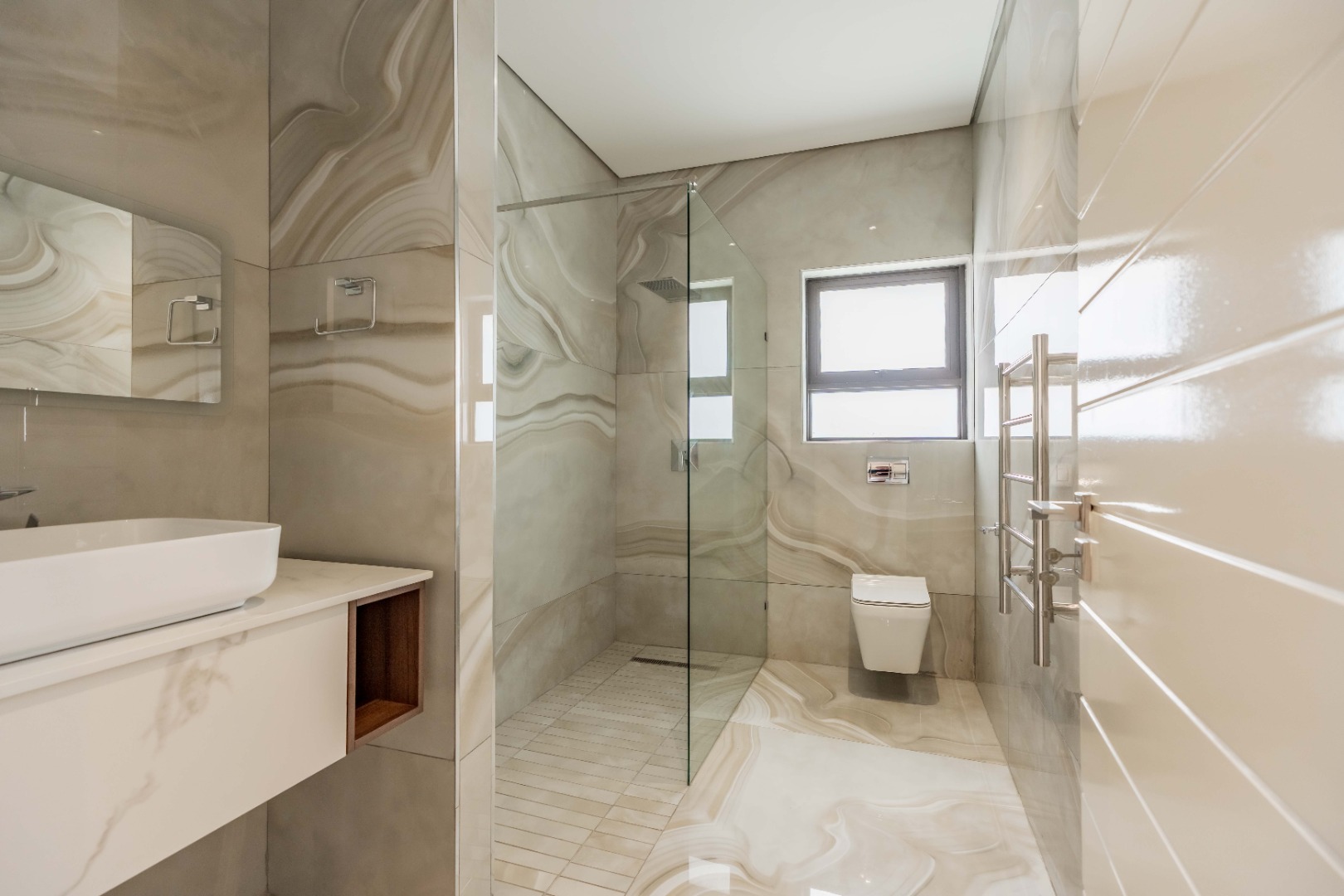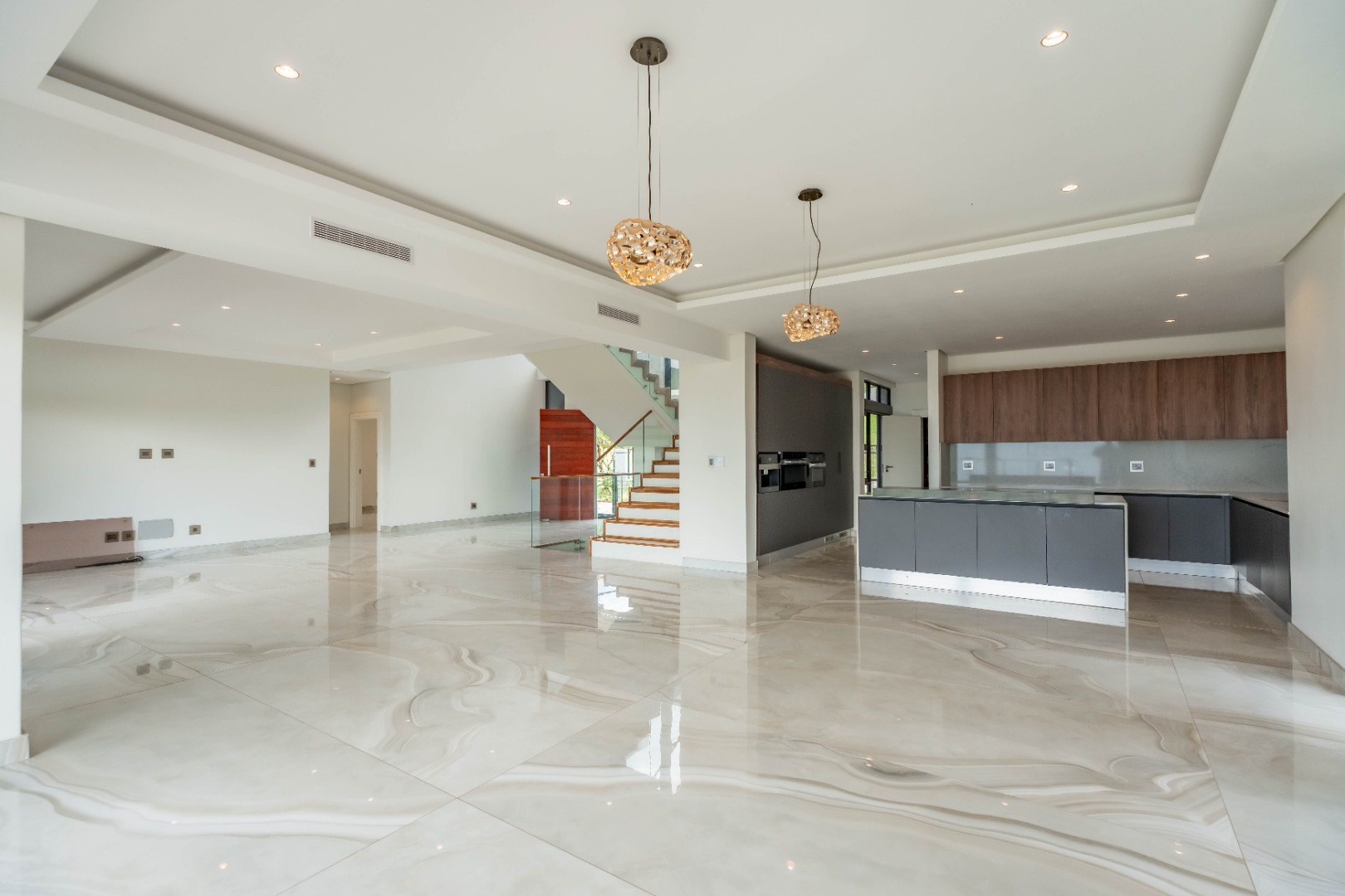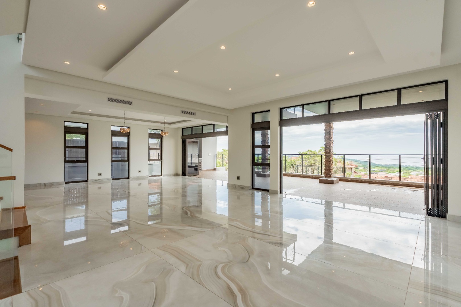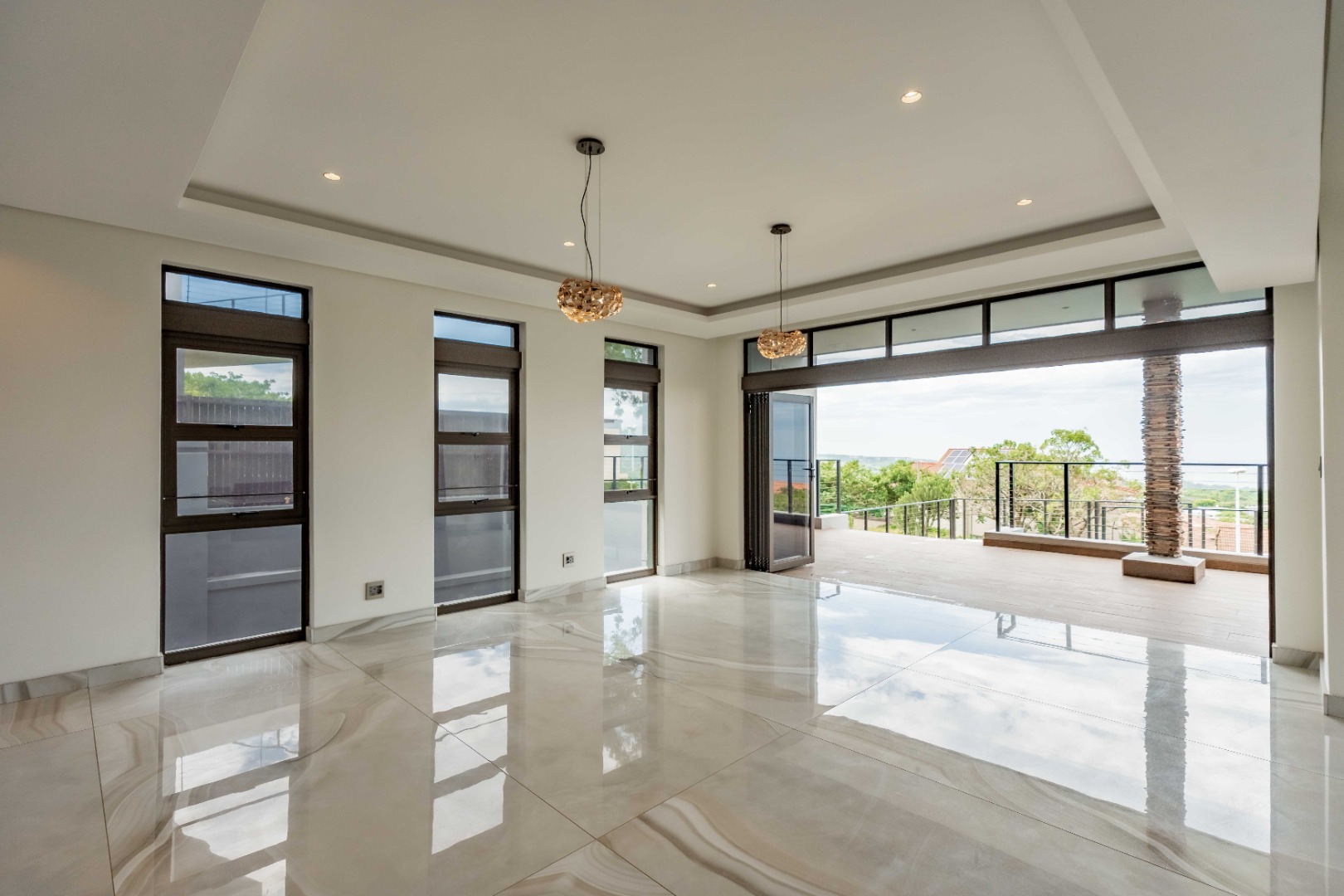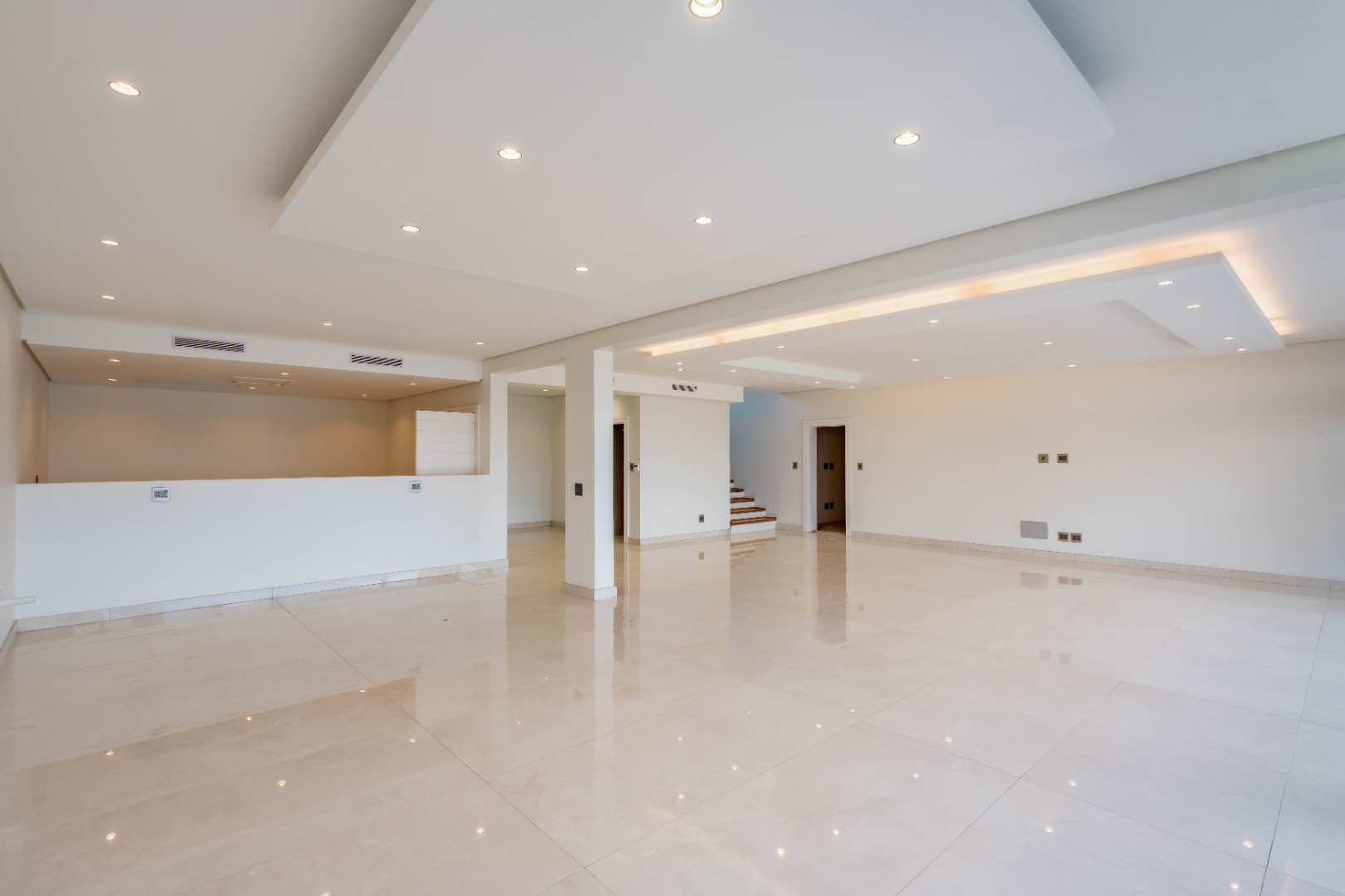 Upstairs has a large lounge , Tv room . 3 Bedrooms all en-suite. The main bedroom has a large dressing room and bathroom. All rooms lead out to their own balconies and a private out door shower . Downstairs has a Built in Bar , large cinema room, guest loo and gym all leads to a patio with Built in Braai and fire Pit . Please call for private viewing
