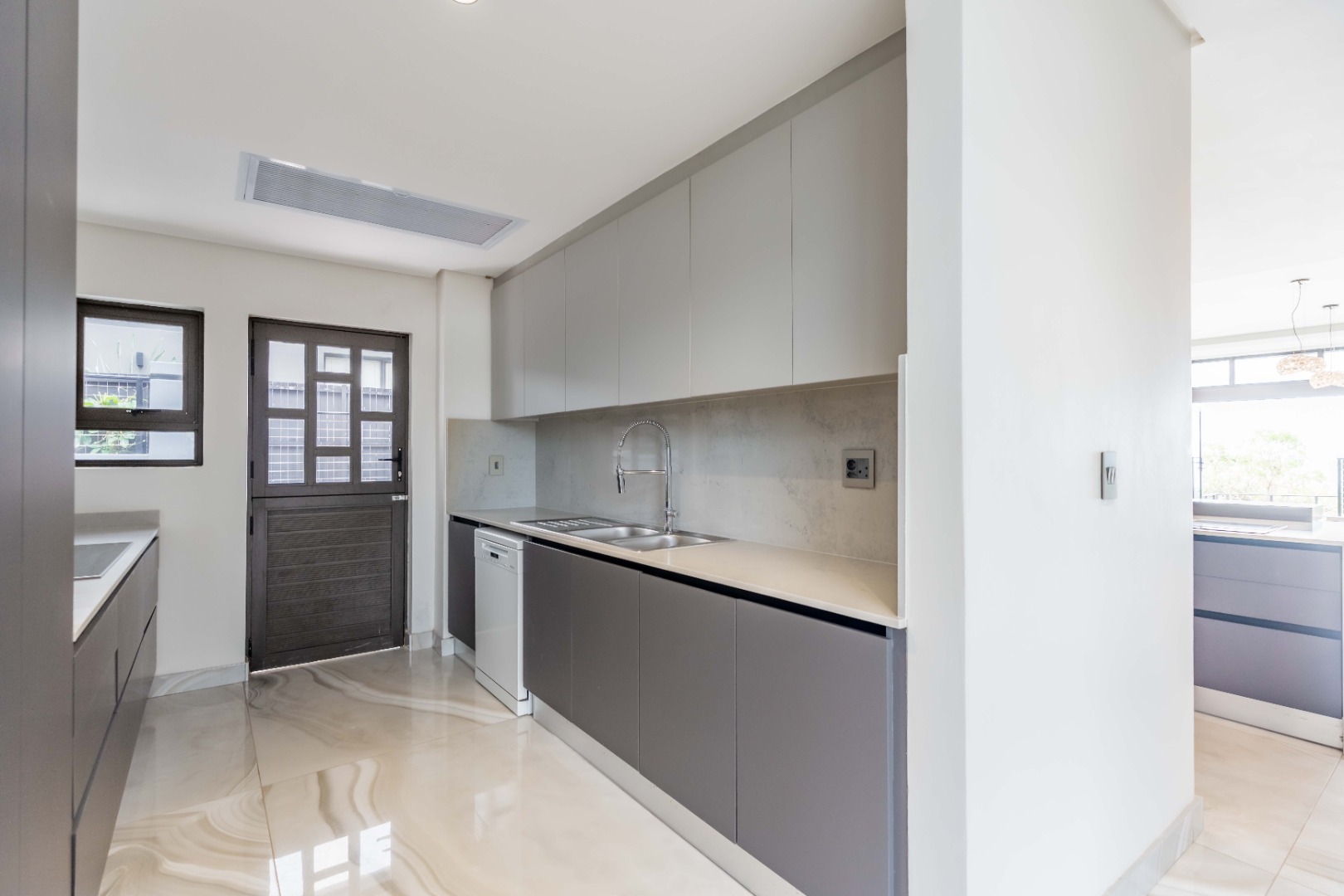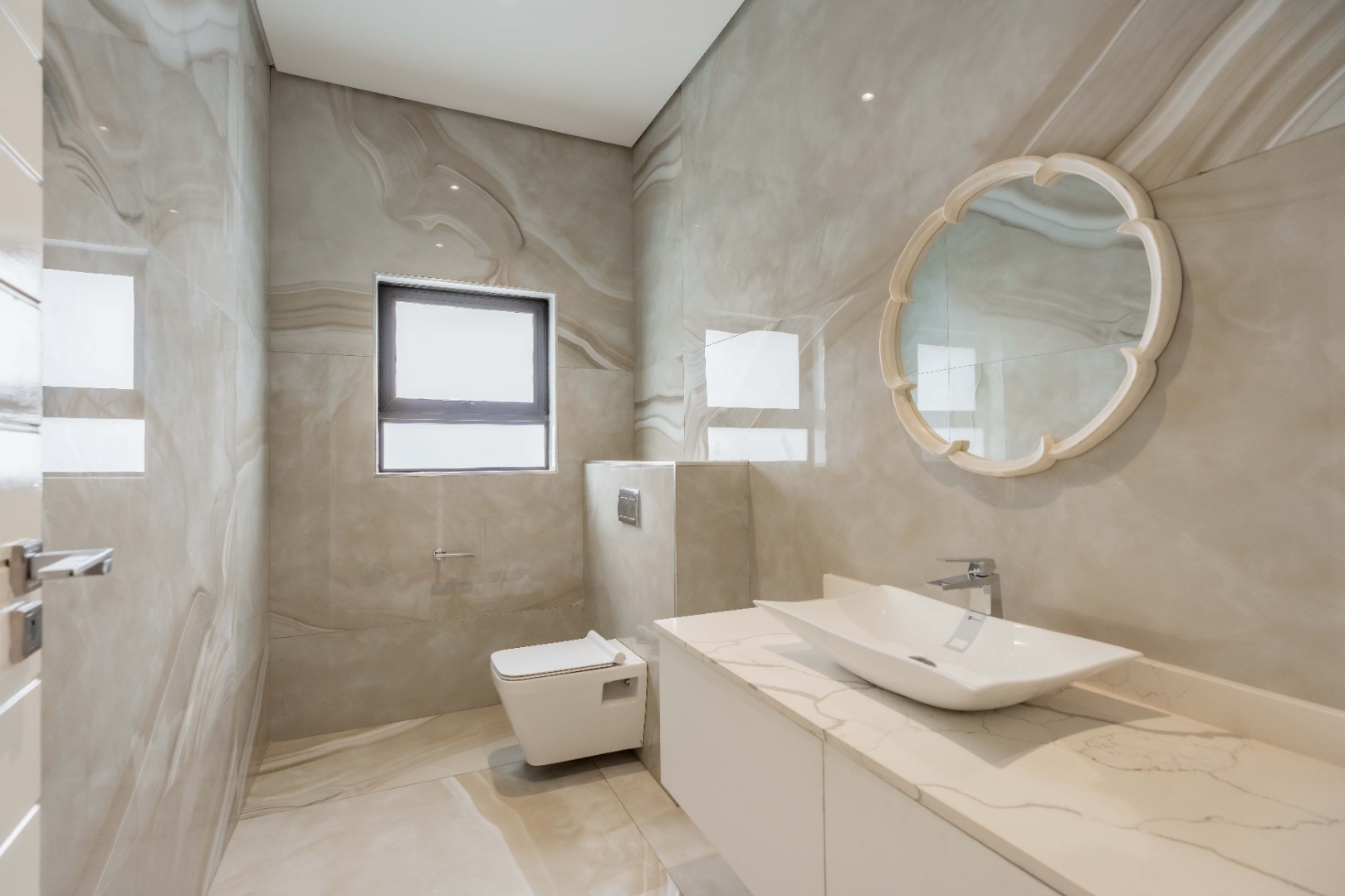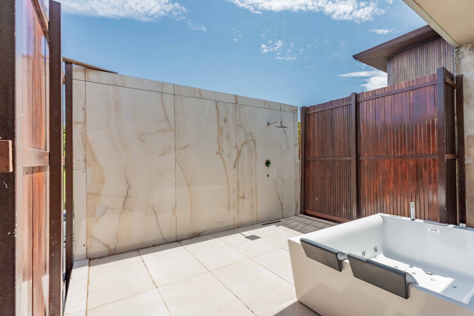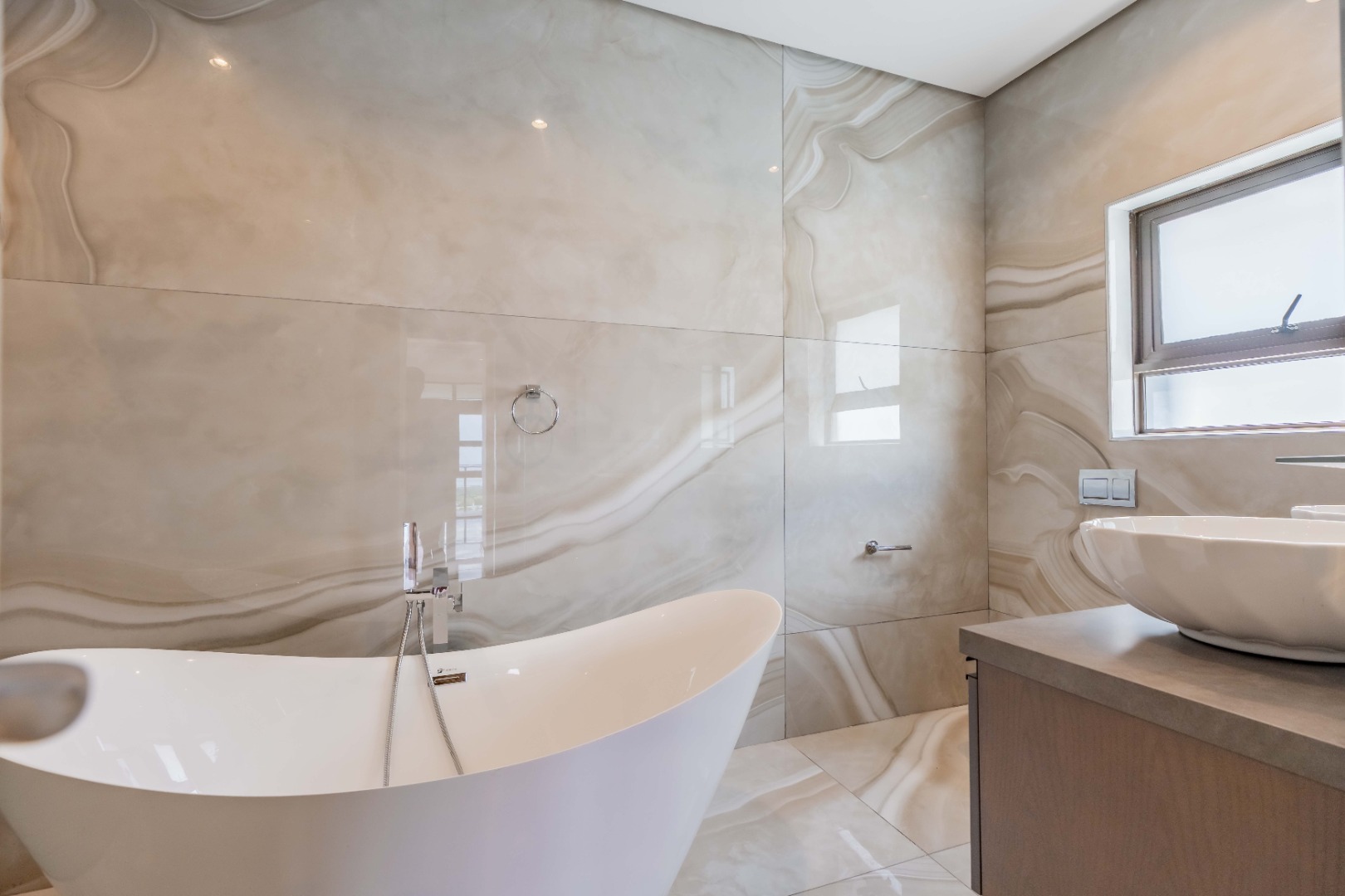 Upstairs has a large lounge , Tv room . 3 Bedrooms all en-suite. The main bedroom has a large dressing room and bathroom. All rooms lead out to their own balconies and a private out door shower . Downstairs has a Built in Bar , large cinema room, guest loo and gym all leads to a patio with Built in Braai and fire Pit . Please call for private viewing