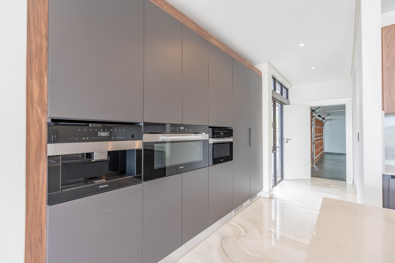 Gourmet kitchen is fitted with Miele appliances, 5 plate gas stove , built in fridge, freezer, eye level oven ,microwave and coffee machine. Scullery has a 5 plate glass top hob. Washing machine , tumble dryer and dishwasher.