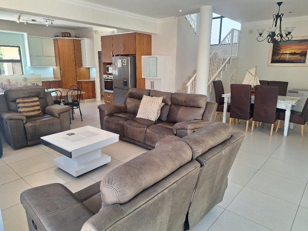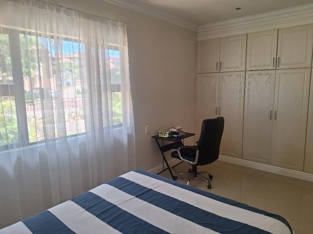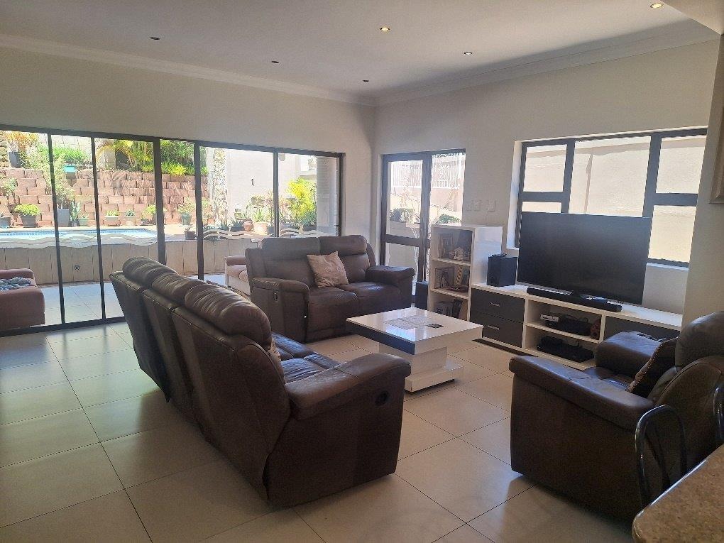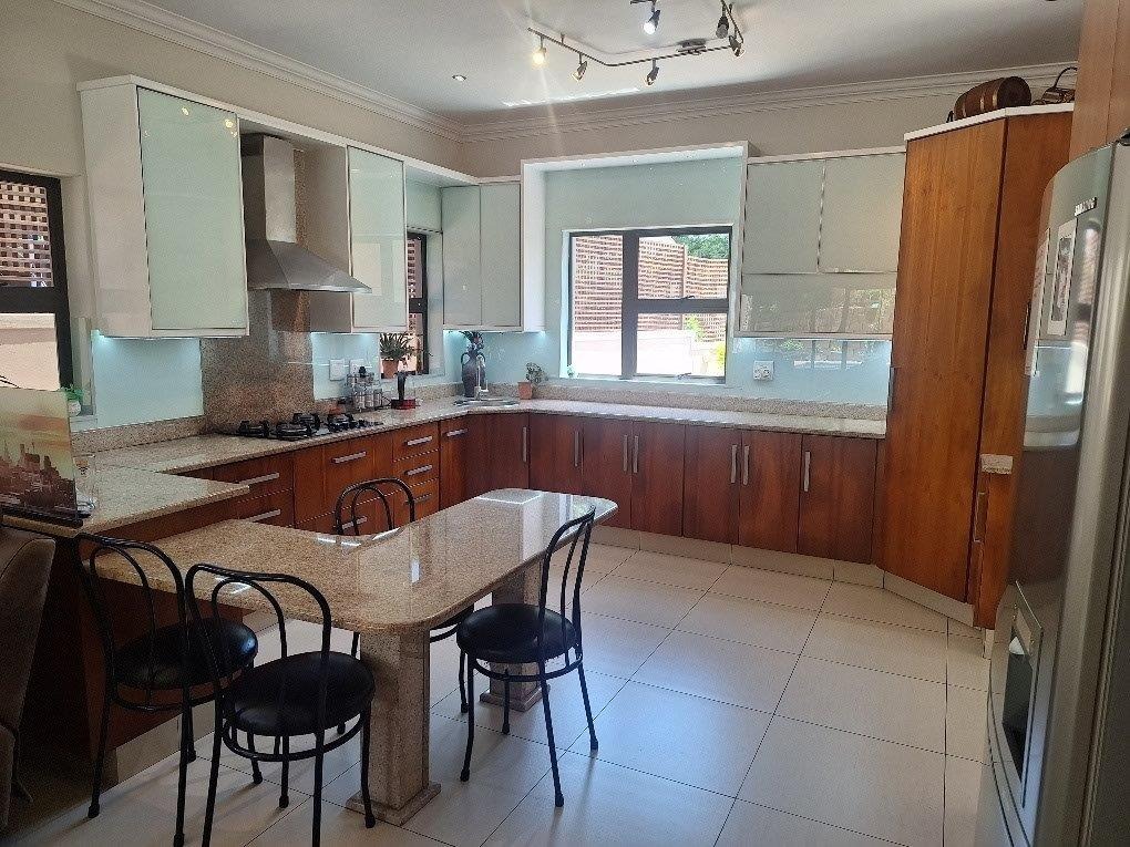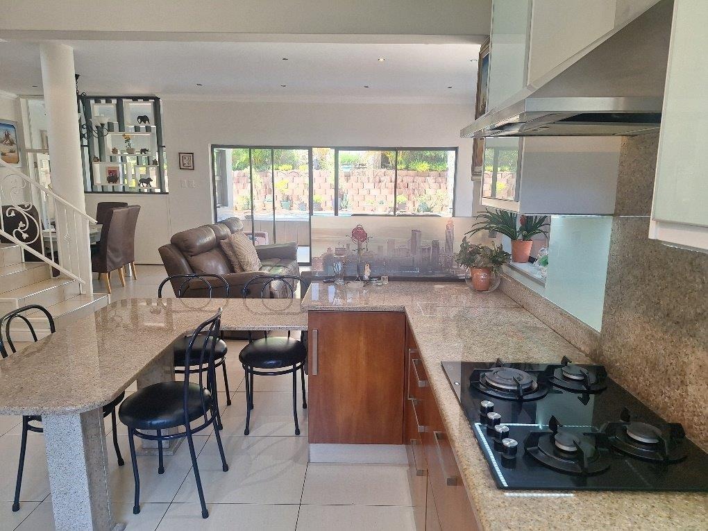 This beautifully designed Balinese duplex is nestled in the heart of Izinga in a fully gated, secure estate. The downstairs floorplan incorporates access from a double garage directly into the home. A private separate study, lounge, dining room seamlessly flows onto a covered patio and sparkling pool. The designer kitchen has a breakfast nook, granite tops, eye level oven and a 5 plate gas hob - separate scullery.