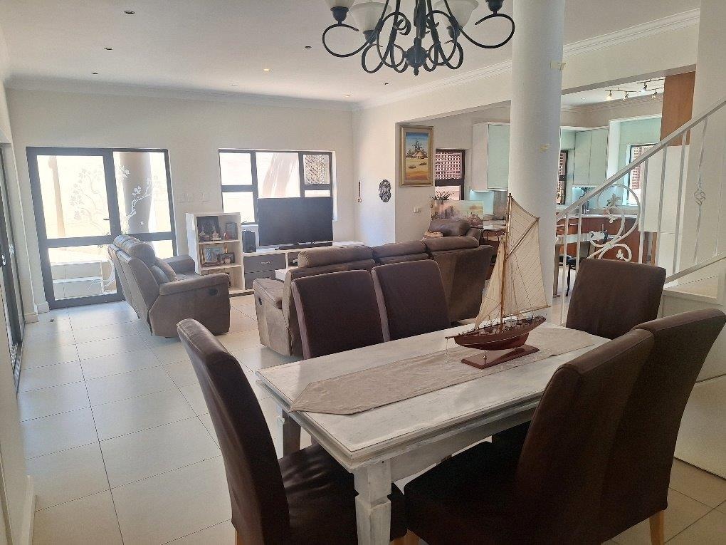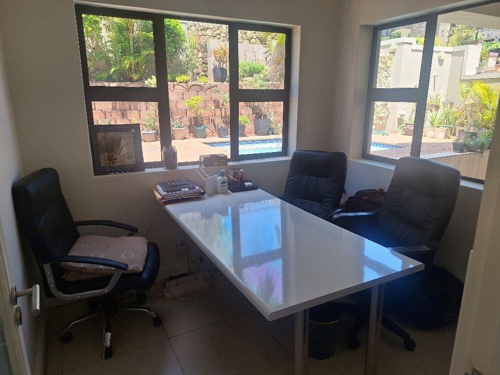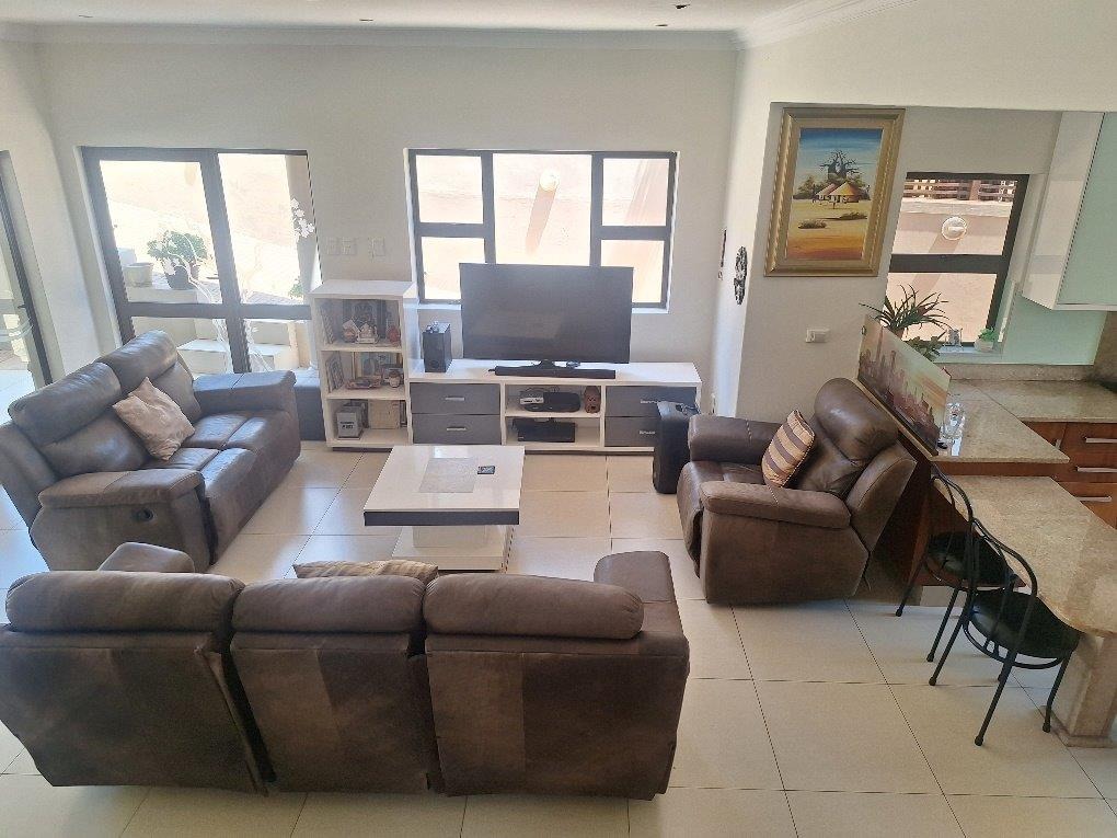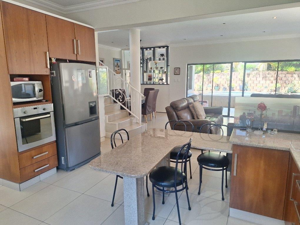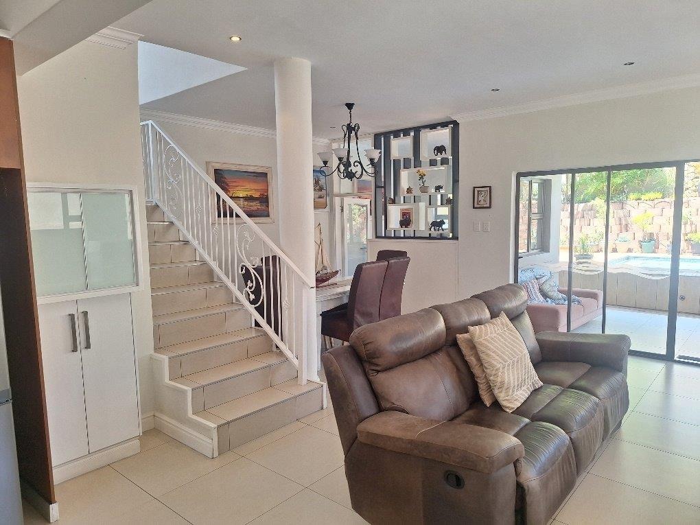This beautifully designed Balinese duplex is nestled in the heart of Izinga in a fully gated, secure estate. The downstairs floorplan incorporates access from a double garage directly into the home. A private separate study, lounge, dining room seamlessly flows onto a covered patio and sparkling pool. The designer kitchen has a breakfast nook, granite tops, eye level oven and a 5 plate gas hob - separate scullery.
