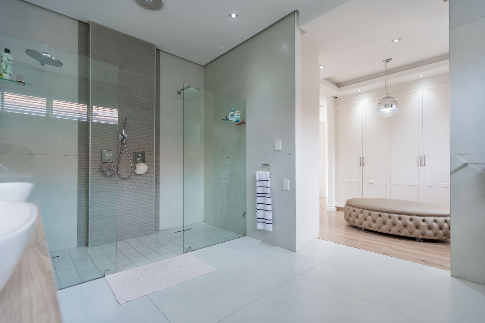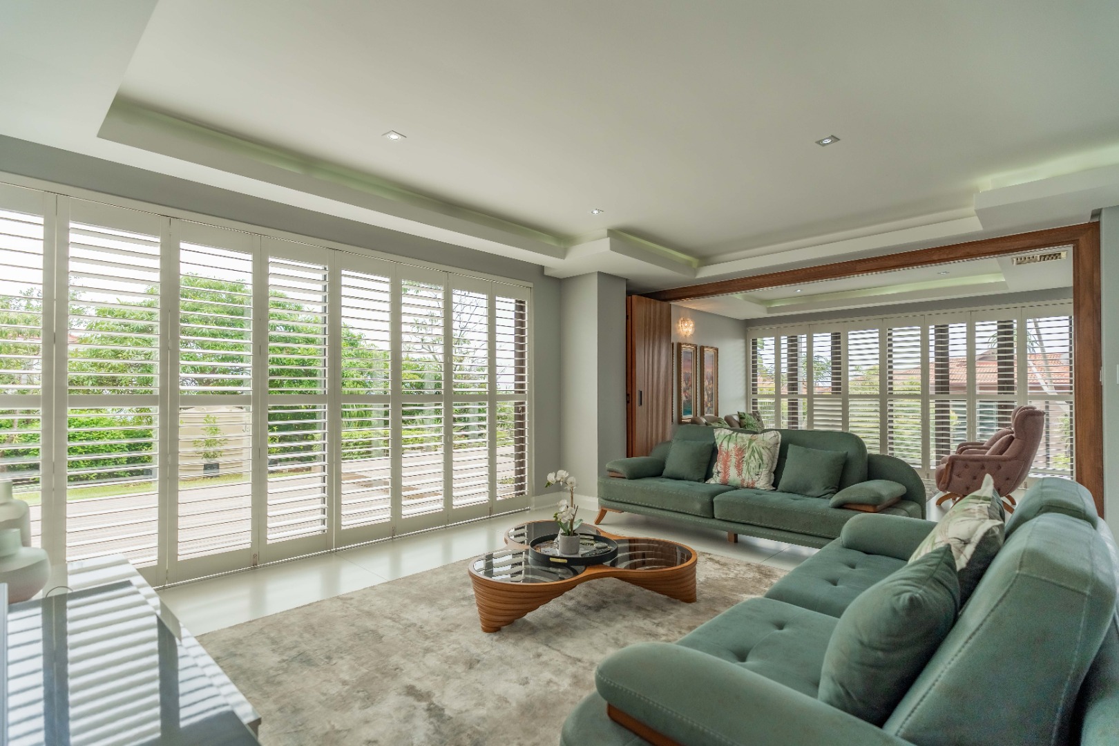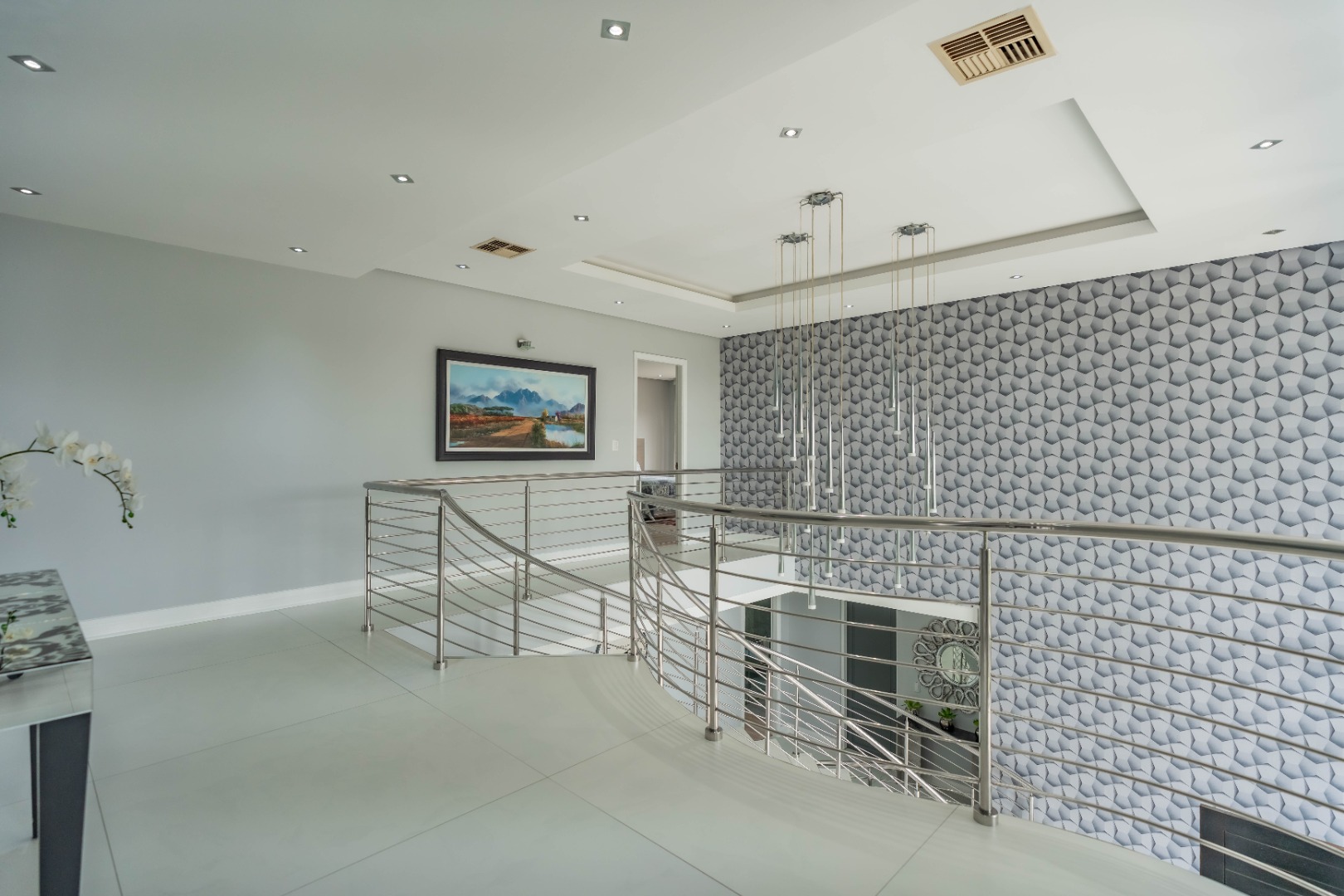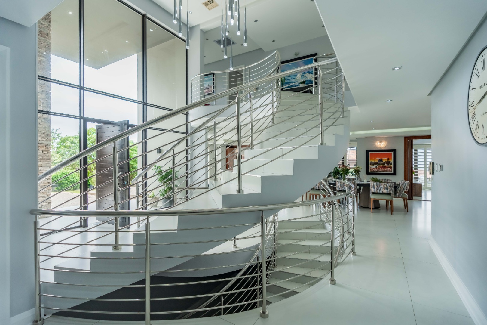 The kitchen is sleek and well-appointed, complete with a centre island, breakfast nook, Siemens appliances, integrated fridge/freezer, 5-plate gas hob, eye-level oven, and under-counter oven. Subtle details like fitted lighting in glass display cupboards add a refined touch, while the living spaces flow effortlessly for easy everyday living and entertaining.