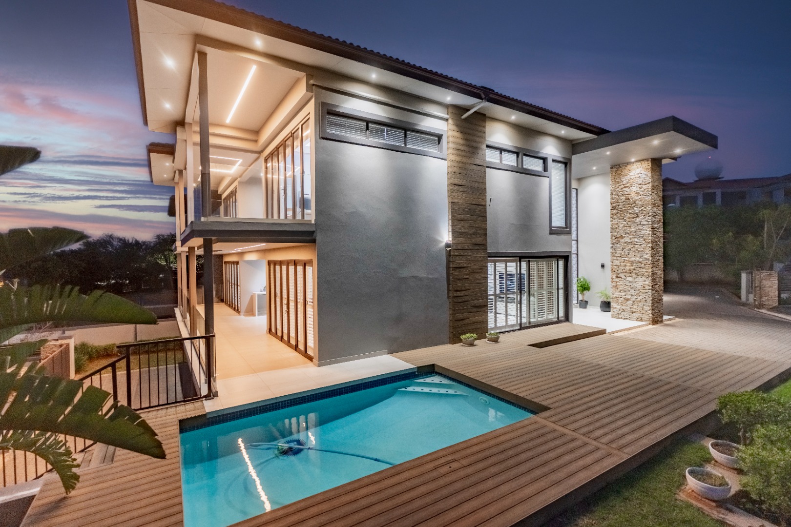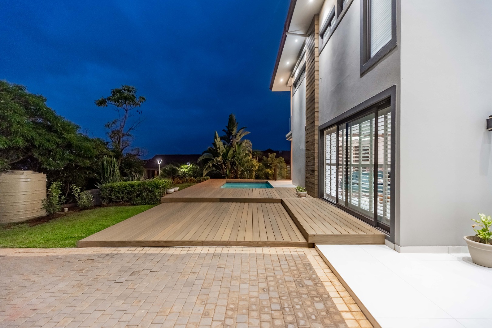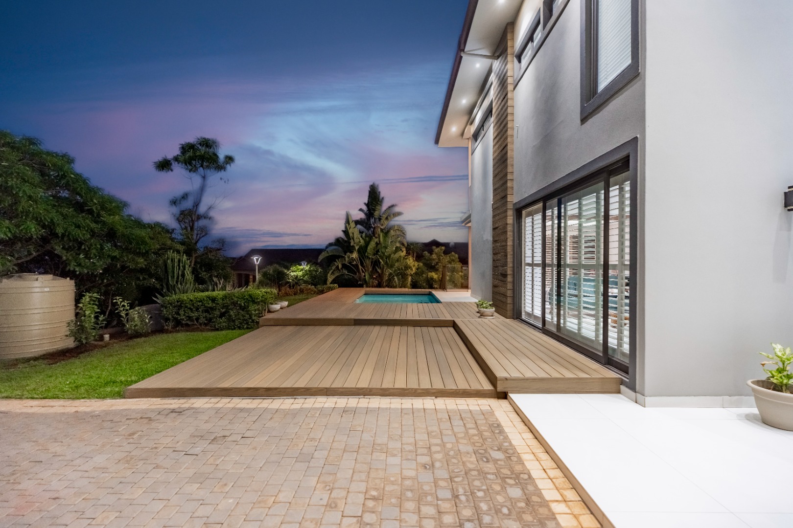 Outdoors, a landscaped garden and pool with chrome decking complete the picture, making this a well-rounded home that balances style, practicality, and secure estate living.