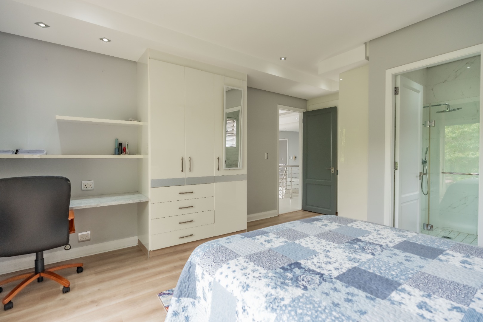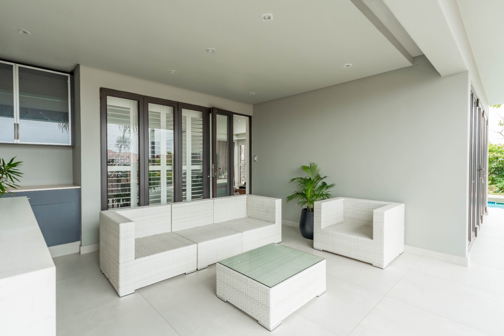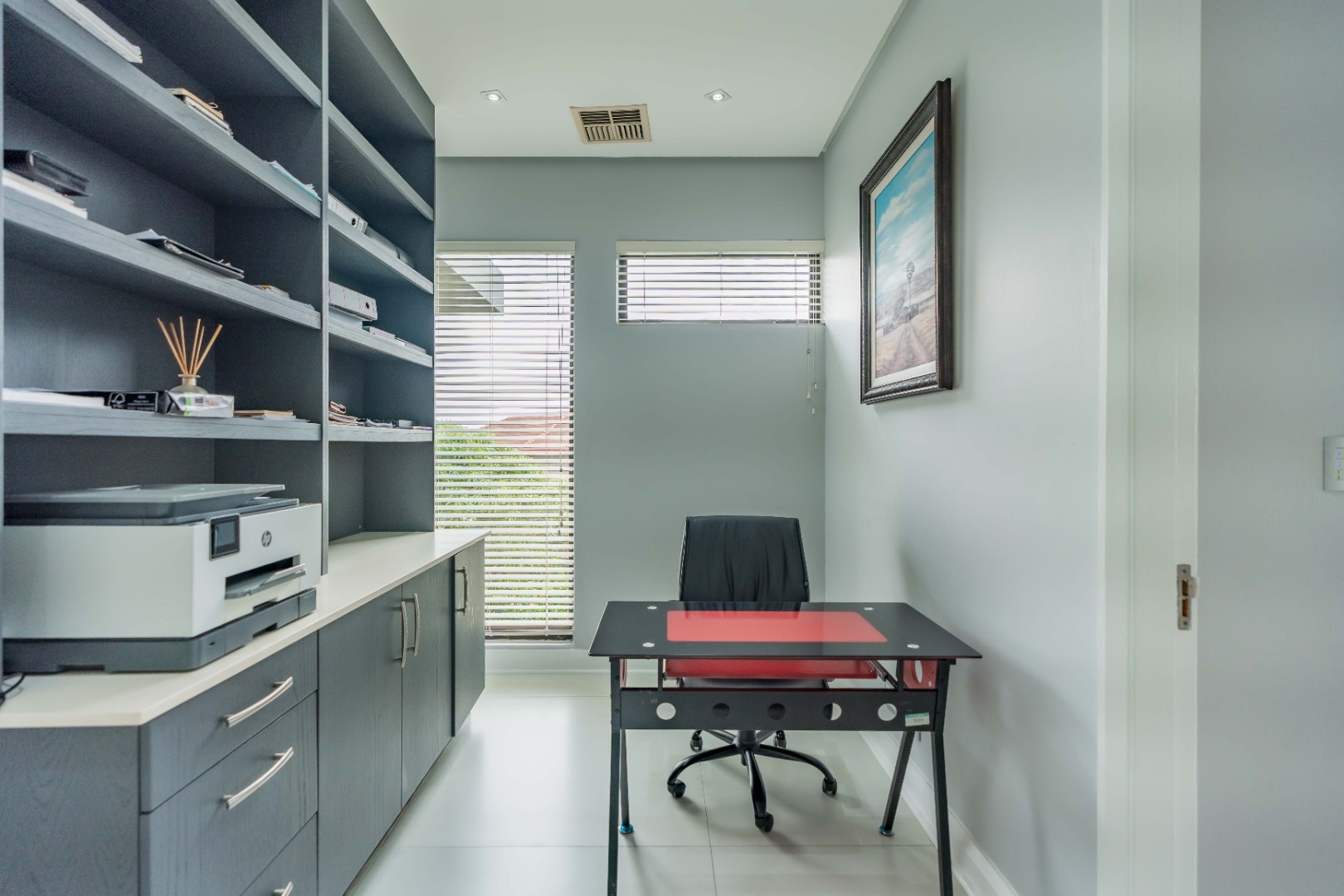 Outdoors, a landscaped garden and pool with chrome decking complete the picture, making this a well-rounded home that balances style, practicality, and secure estate living.