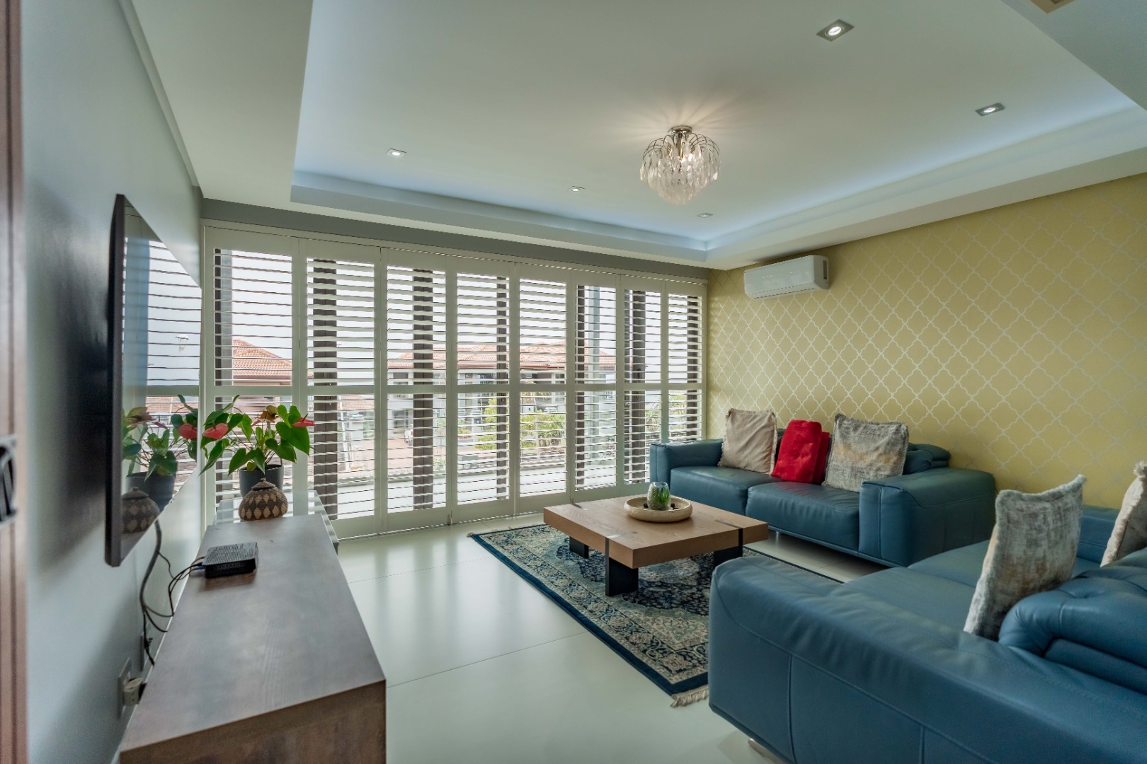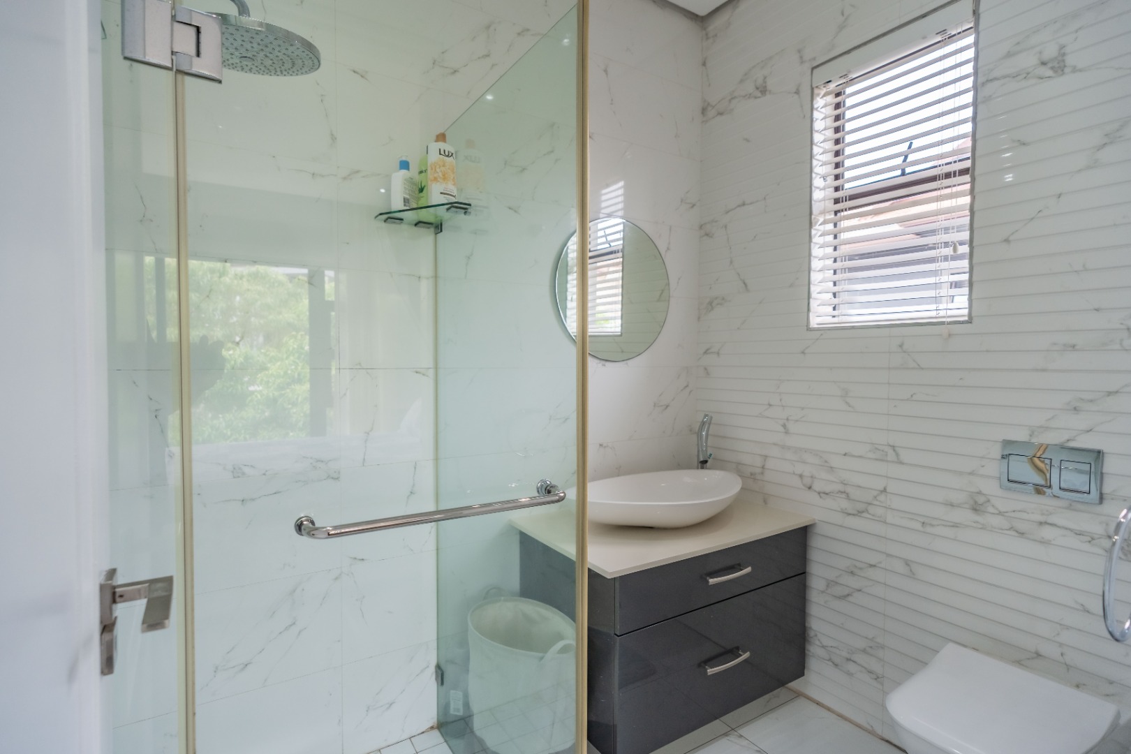 Set on a prime corner stand in a secure, 24-hour manned estate, this stylish three-storey home offers elevated living with sweeping sea views and exceptional versatility. Designed for both comfort and functionality, the home features four spacious bedrooms and four bathrooms, with a flexible lower-level room ideal as a gym, prayer space, or games room.