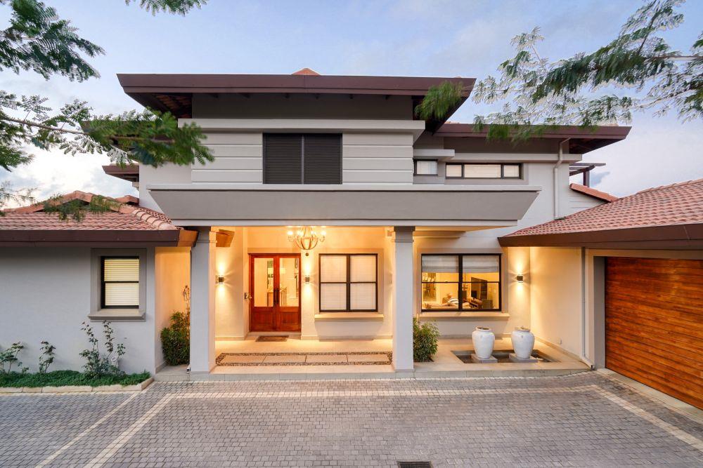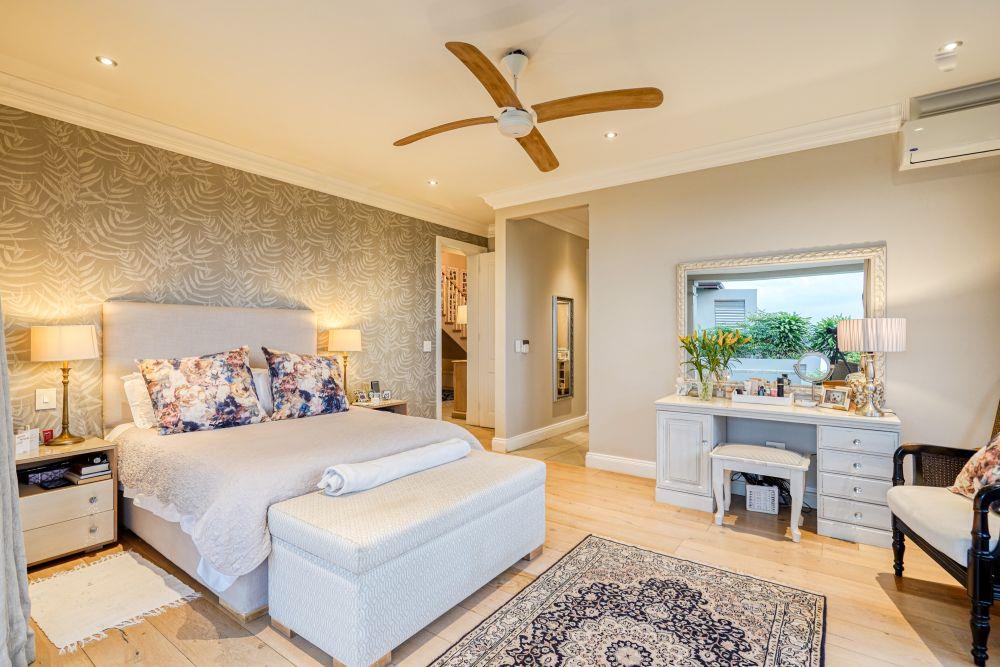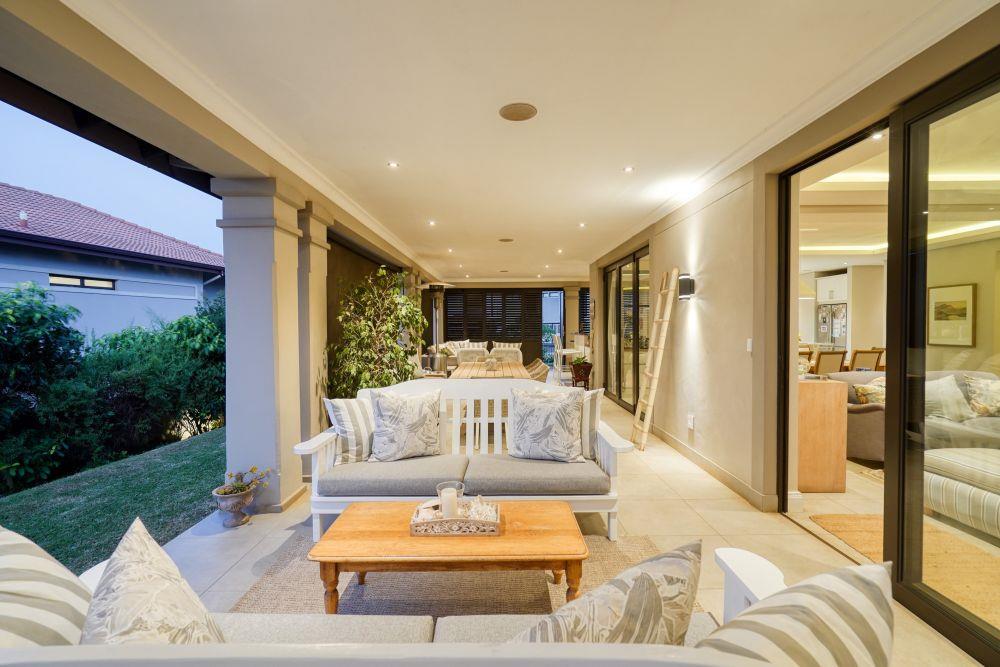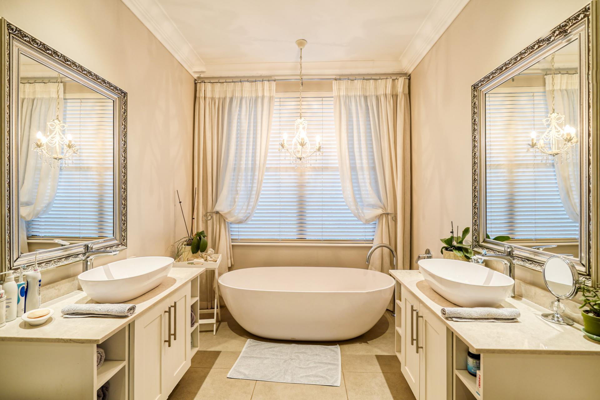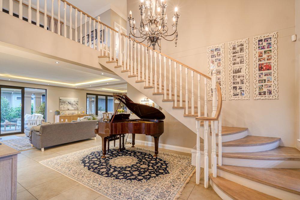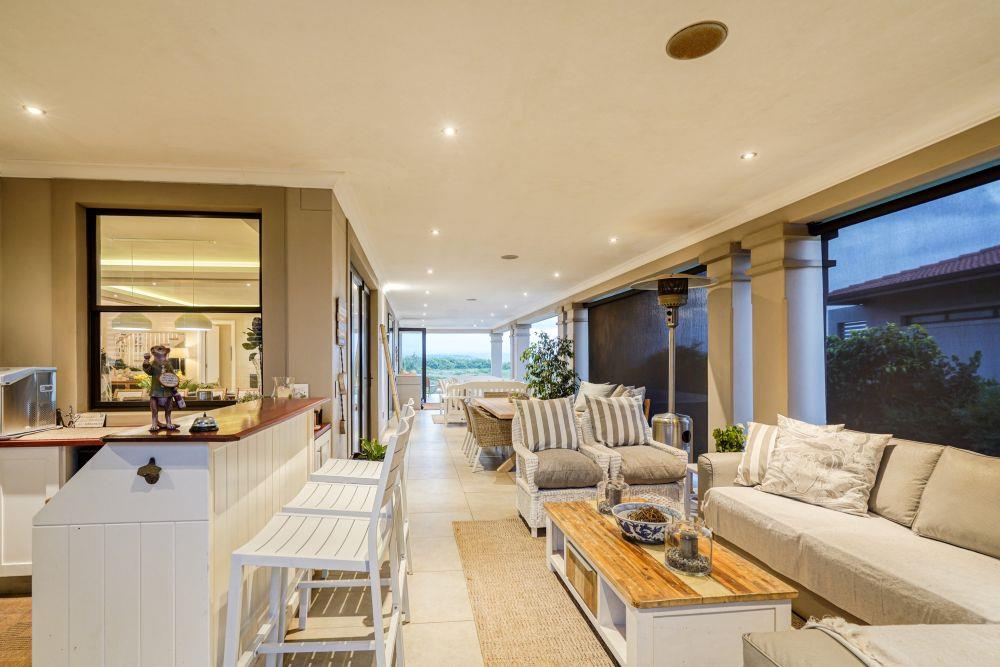This immaculate residence is a haven of comfort, warm and inviting. Numerous formal and informal reception areas spill out onto a double covered patio with built in bar for gracious entertaining offering splendid tranquil views and an inviting rim flow pool. All this is surrounded by manicured landscaped gardens for your enjoyment. 4 Spacious bedrooms en-suite with luxurious bathrooms, separate study, guest cloakroom, designer gourmet kitchen with scullery, pantry & breakfast nook, double garage, staff acc are among the features of this gorgeous home. Enjoy secure living in this prime estate.