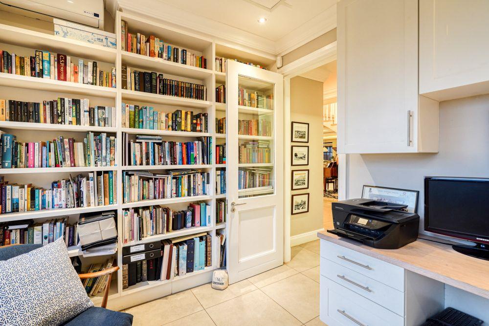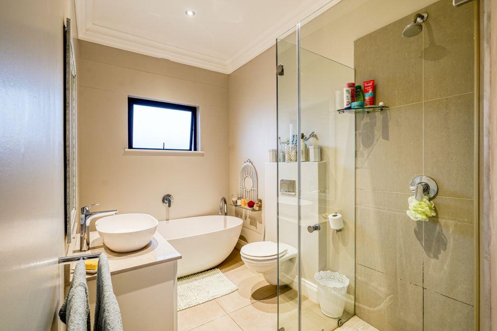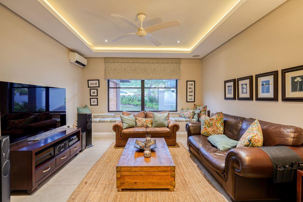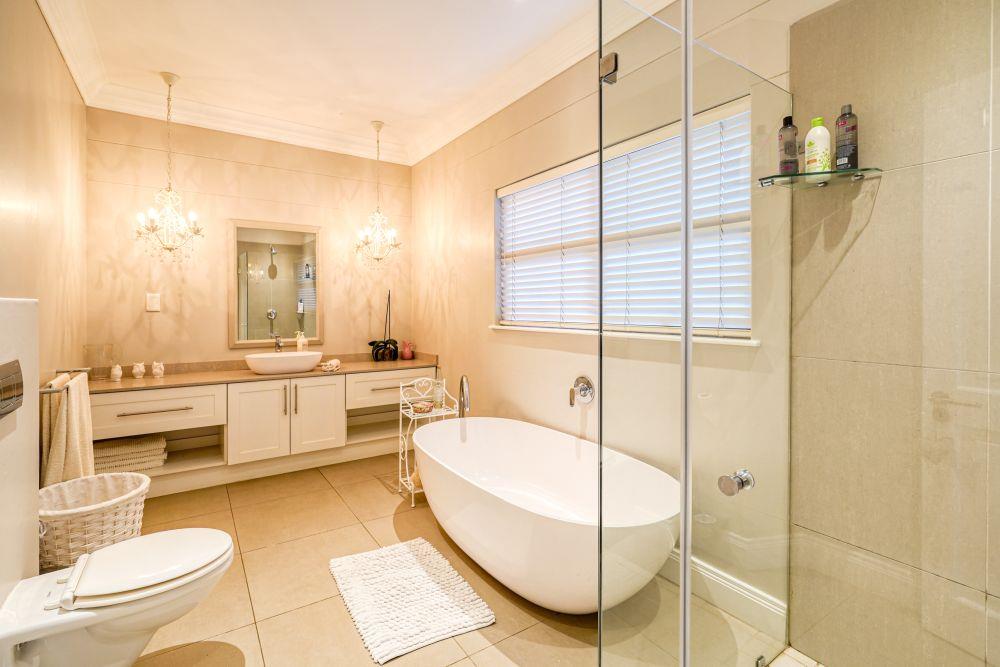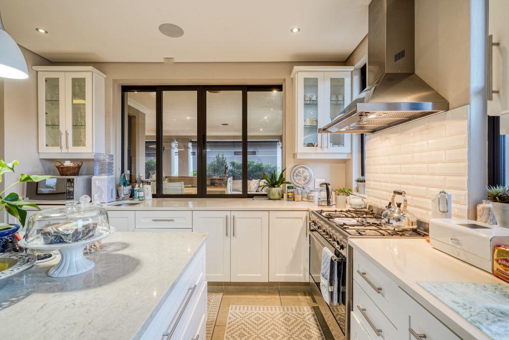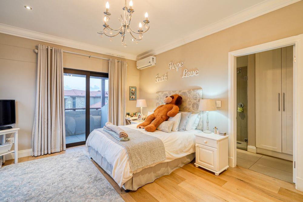 This immaculate residence is a haven of comfort, warm and inviting. Numerous formal and informal reception areas spill out onto a double covered patio with built in bar for gracious entertaining offering splendid tranquil views and an inviting rim flow pool. All this is surrounded by manicured landscaped gardens for your enjoyment. 4 Spacious bedrooms en-suite with luxurious bathrooms, separate study, guest cloakroom, designer gourmet kitchen with scullery, pantry & breakfast nook, double garage, staff acc are among the features of this gorgeous home. Enjoy secure living in this prime estate.