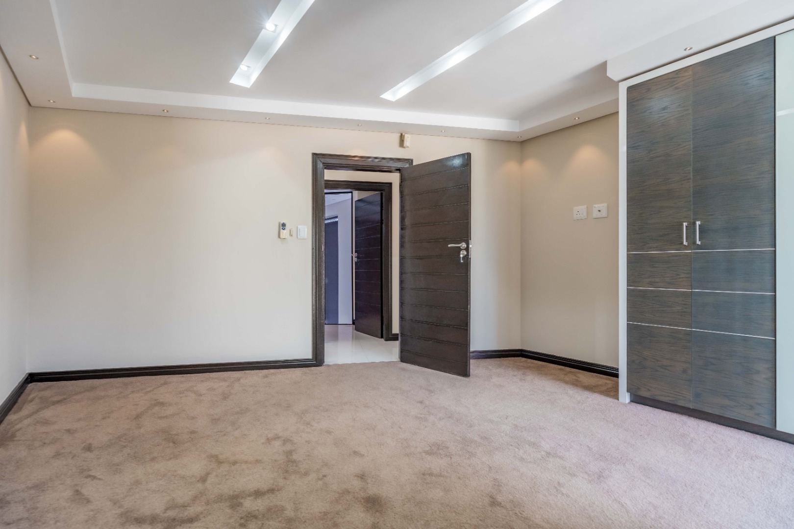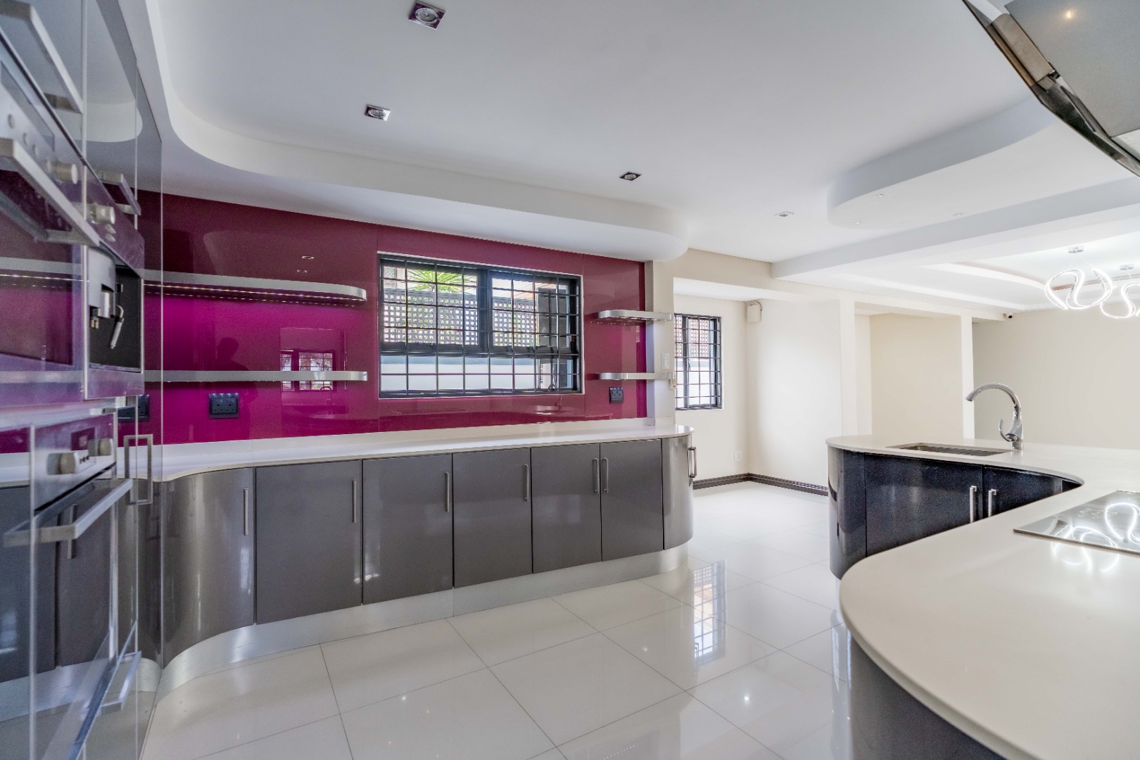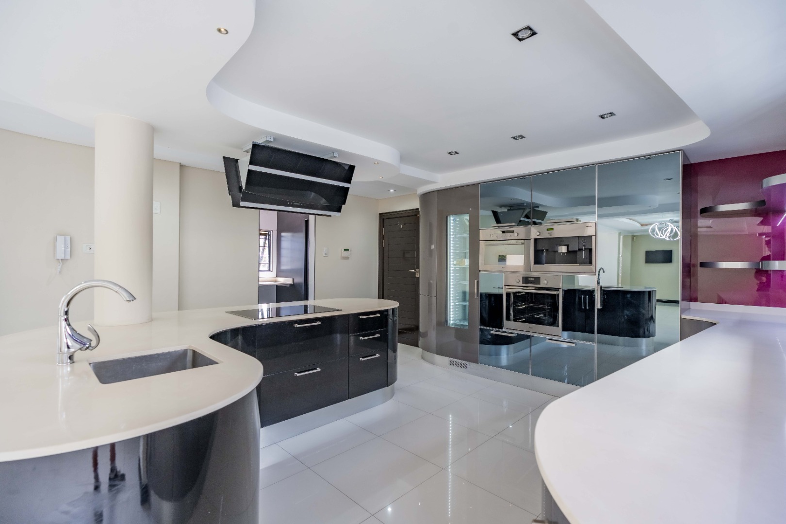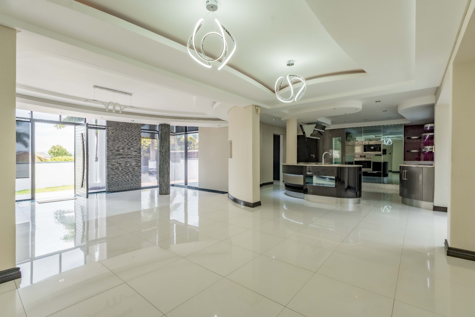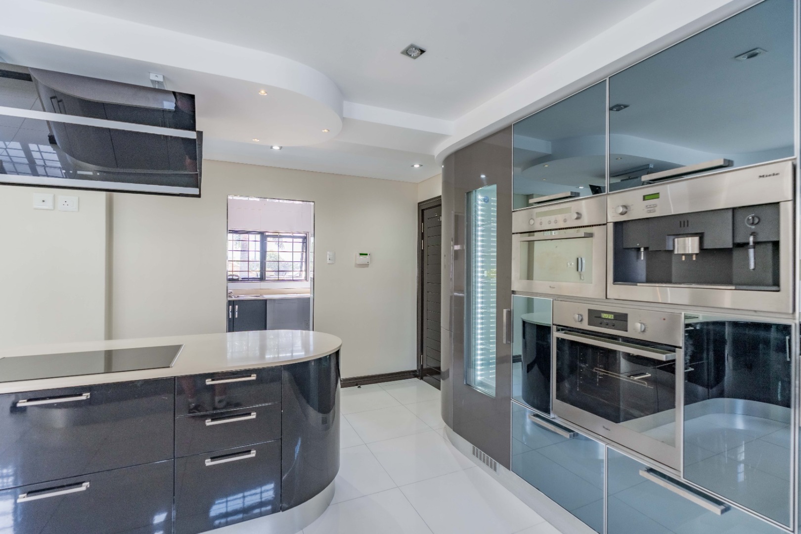 The home has sophisticated lighting though-out, expansive open plan living area, that flows seamlessly to the gourmet kitchen and scullery. The kitchen boasts top of the range appliances, gas and electric hobs, built in microwave and oven plus a luxury coffee machine.