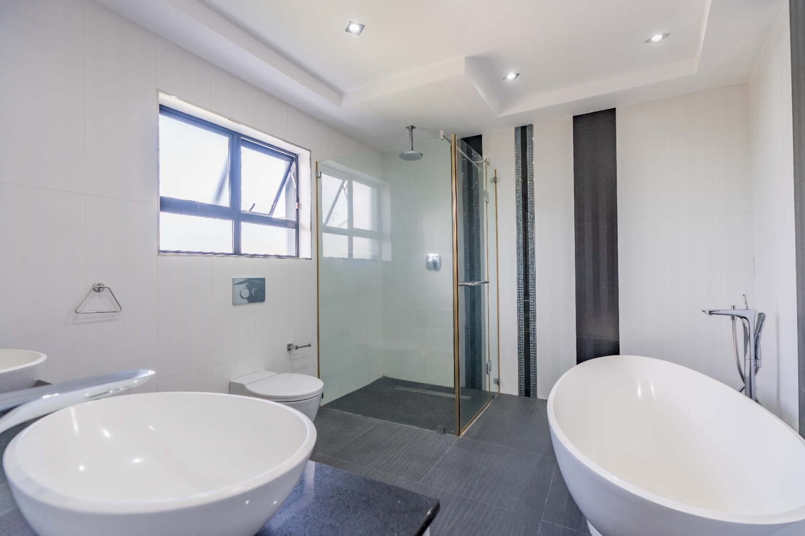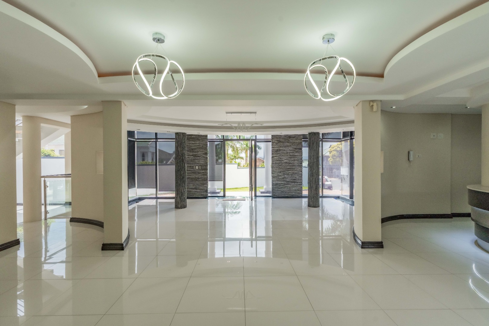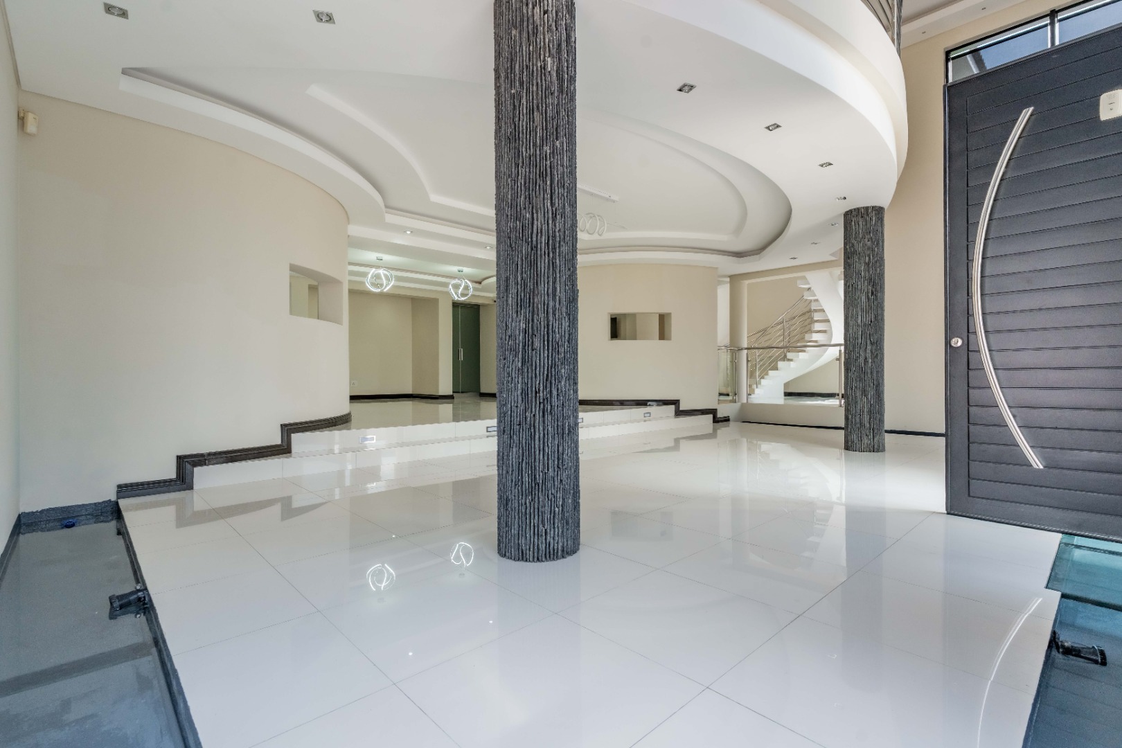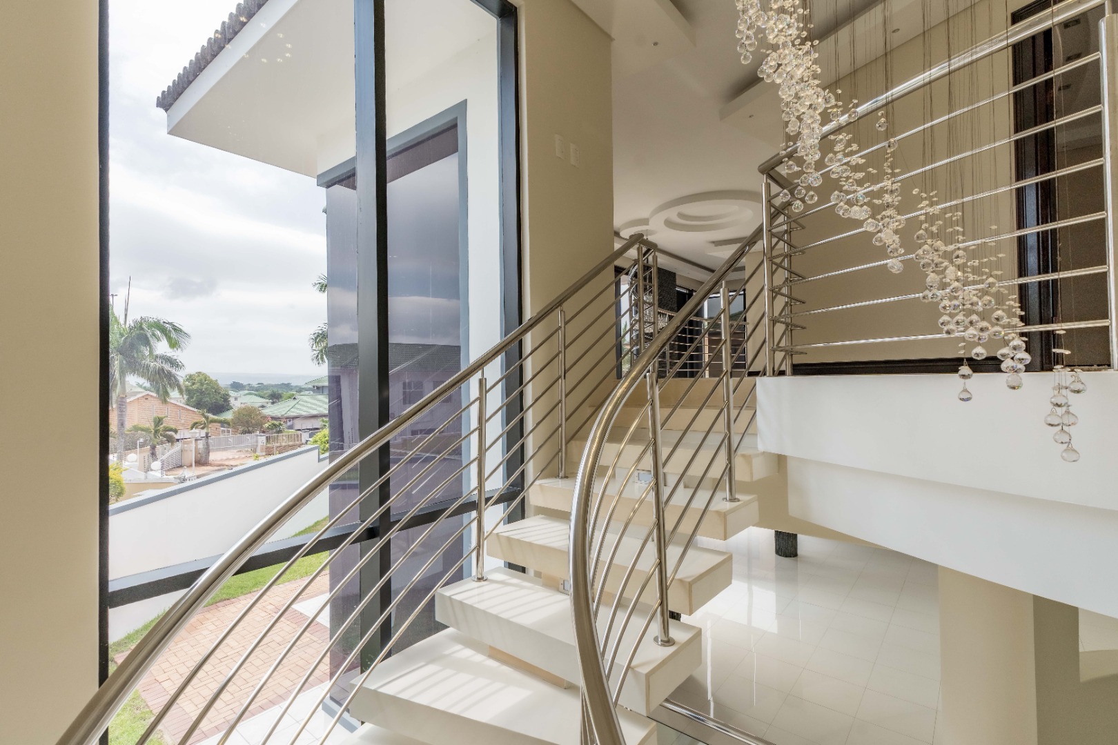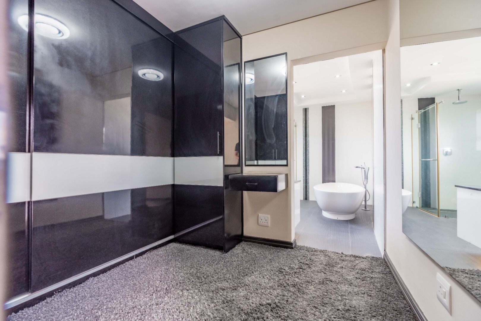 The home has sophisticated lighting though-out, expansive open plan living area, that flows seamlessly to the gourmet kitchen and scullery. The kitchen boasts top of the range appliances, gas and electric hobs, built in microwave and oven plus a luxury coffee machine.