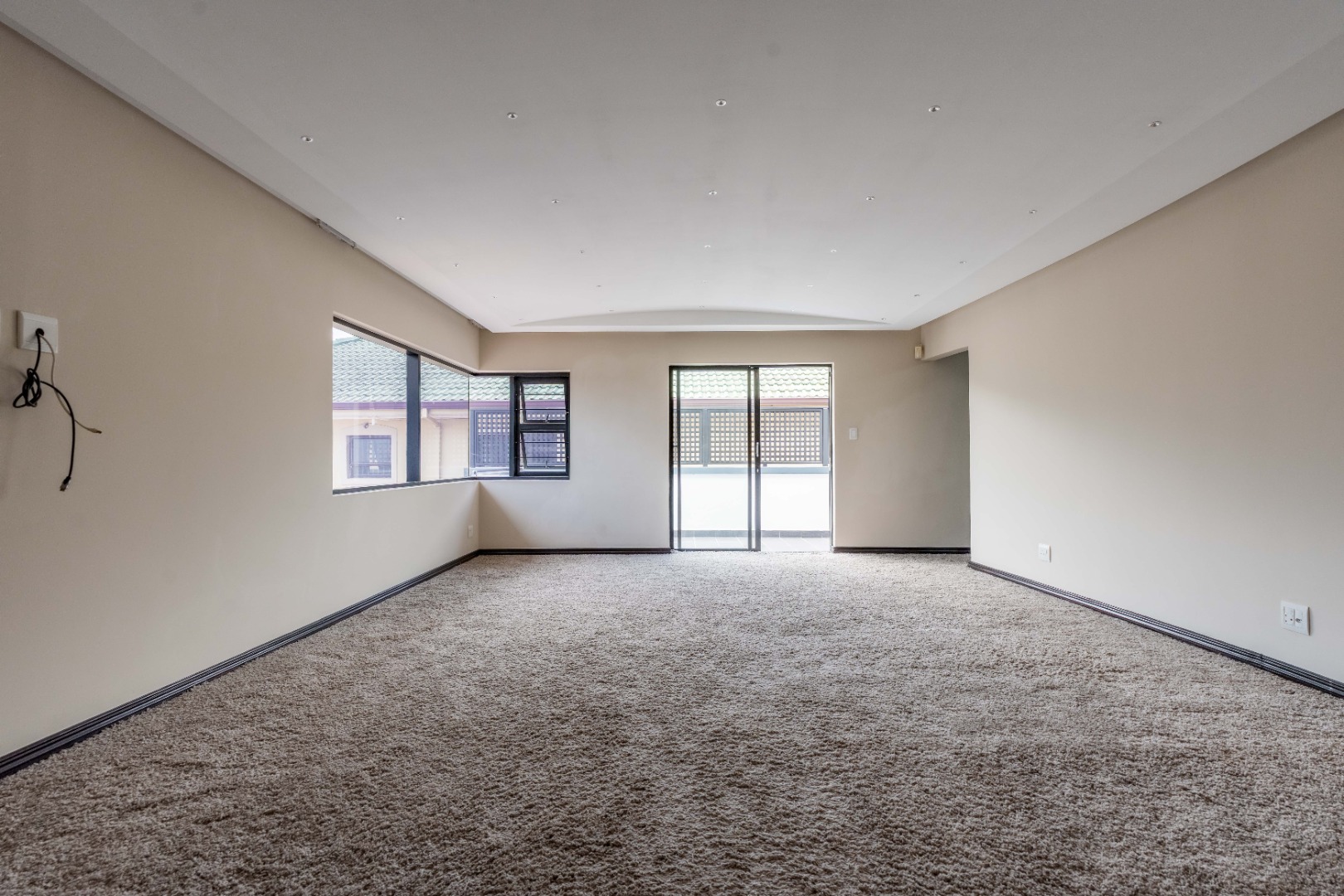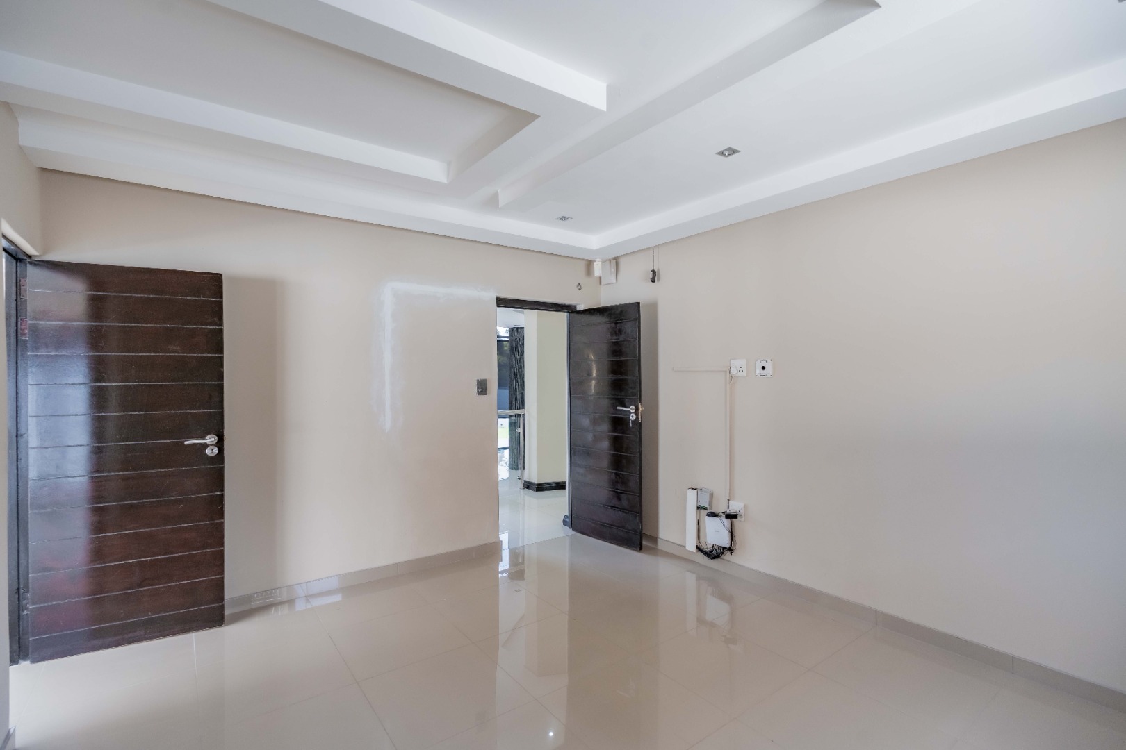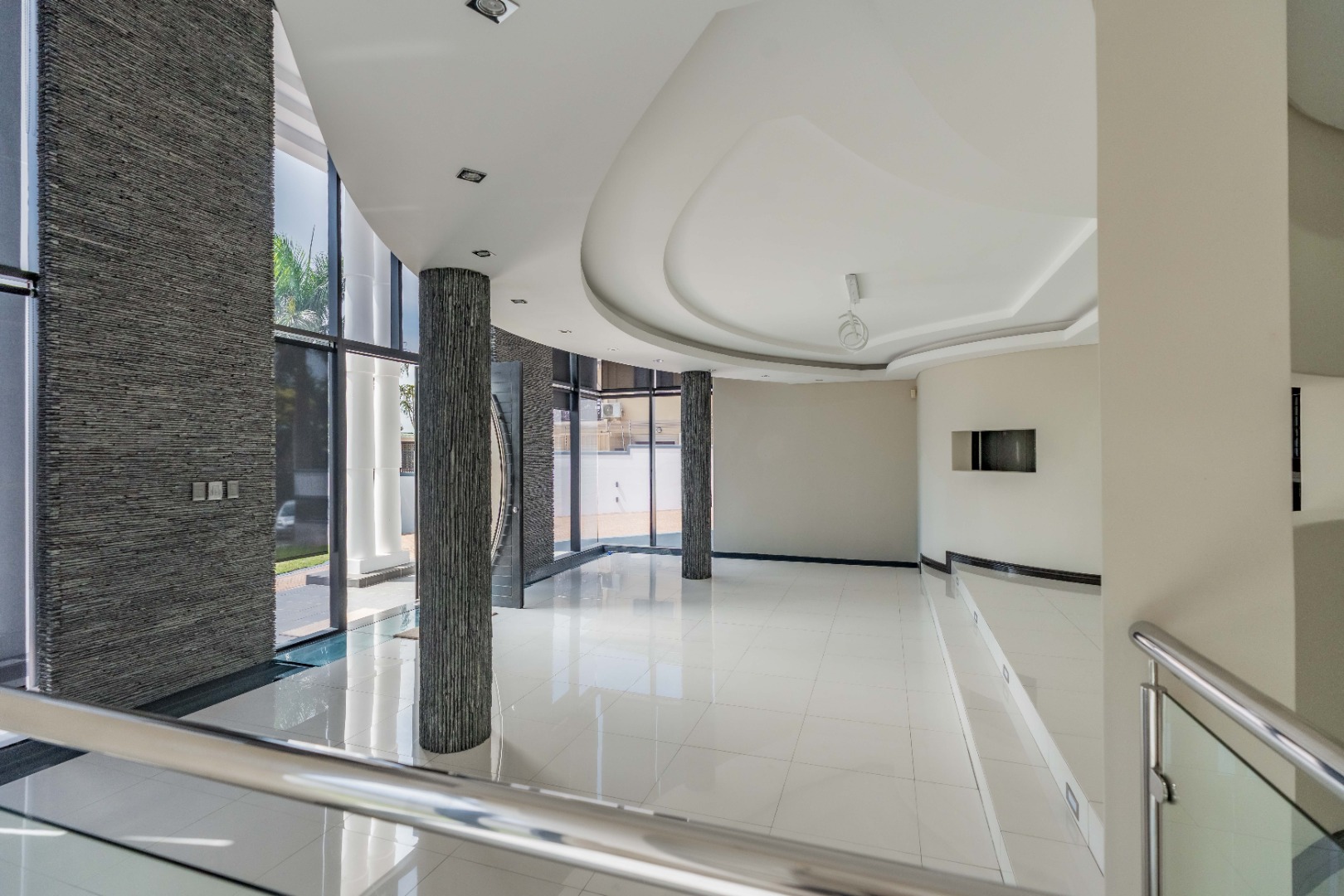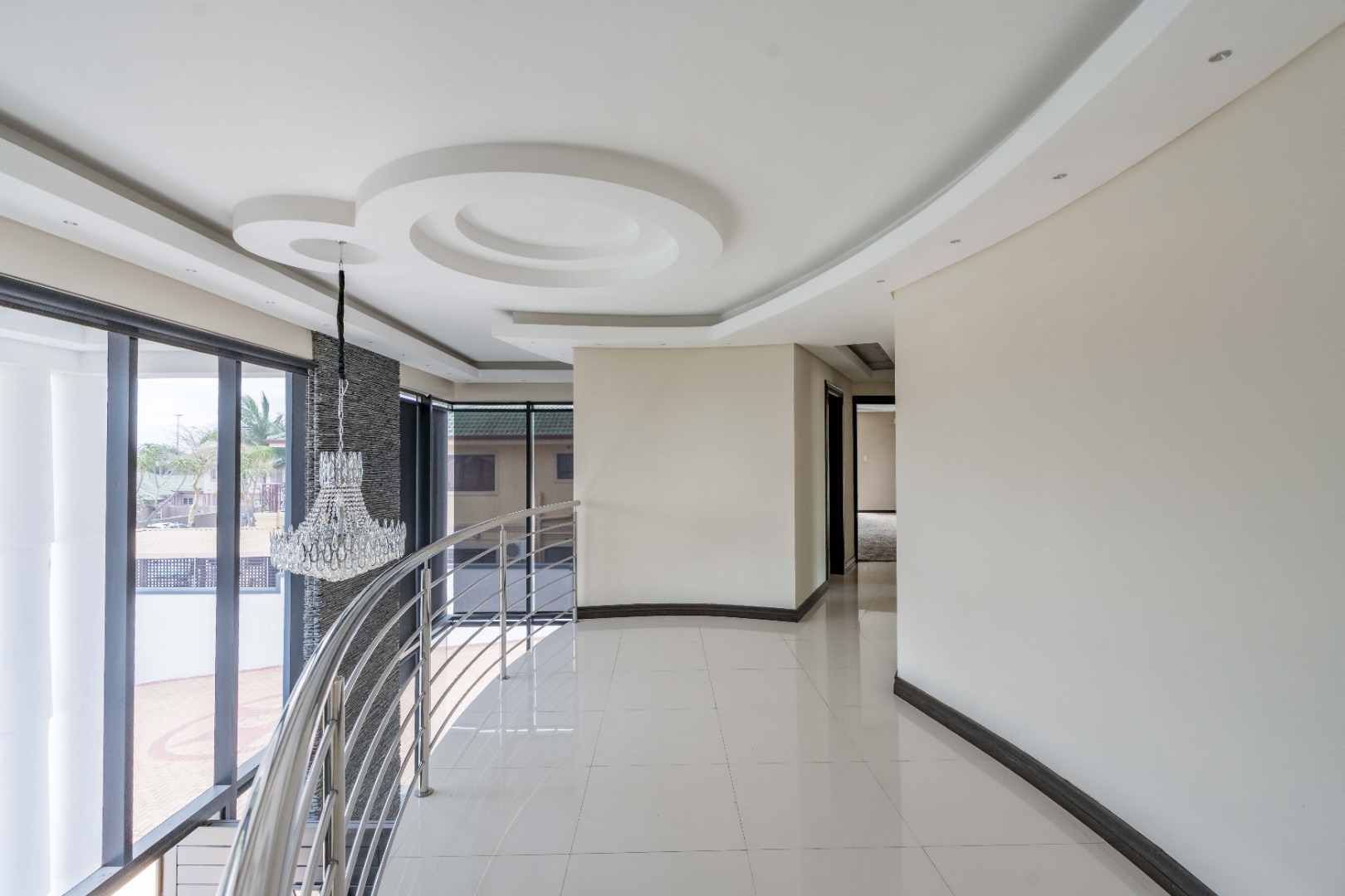 Upstairs are 3 spacious bedrooms with 3 en-suites and a study. The property is fully paved with a lovely garden section, double auto garage with direct access into the home and an excellent security system with beams on the property.