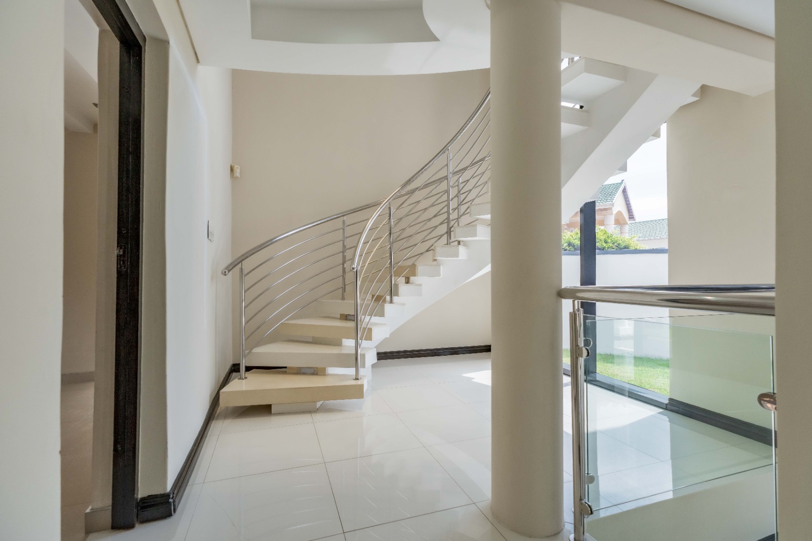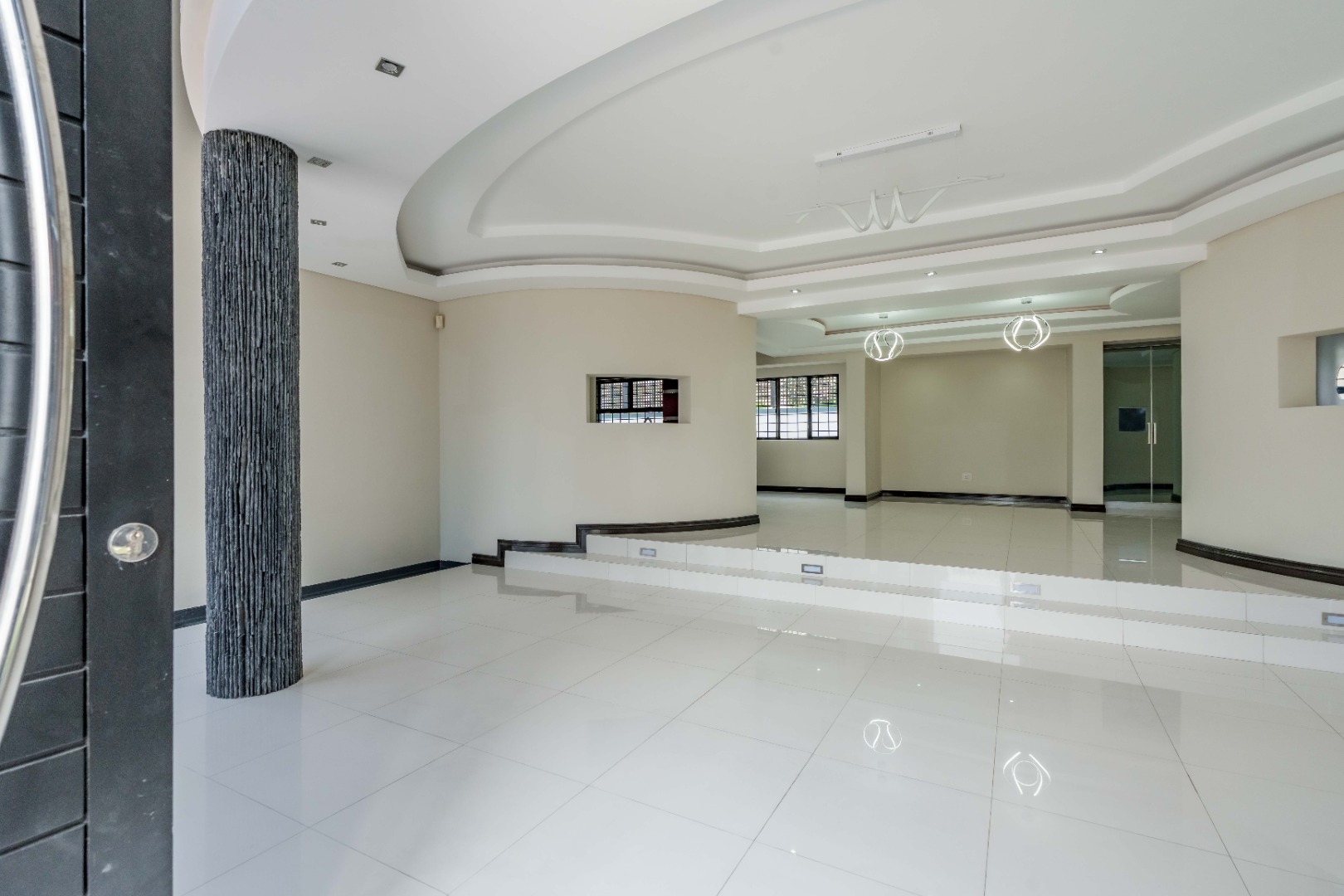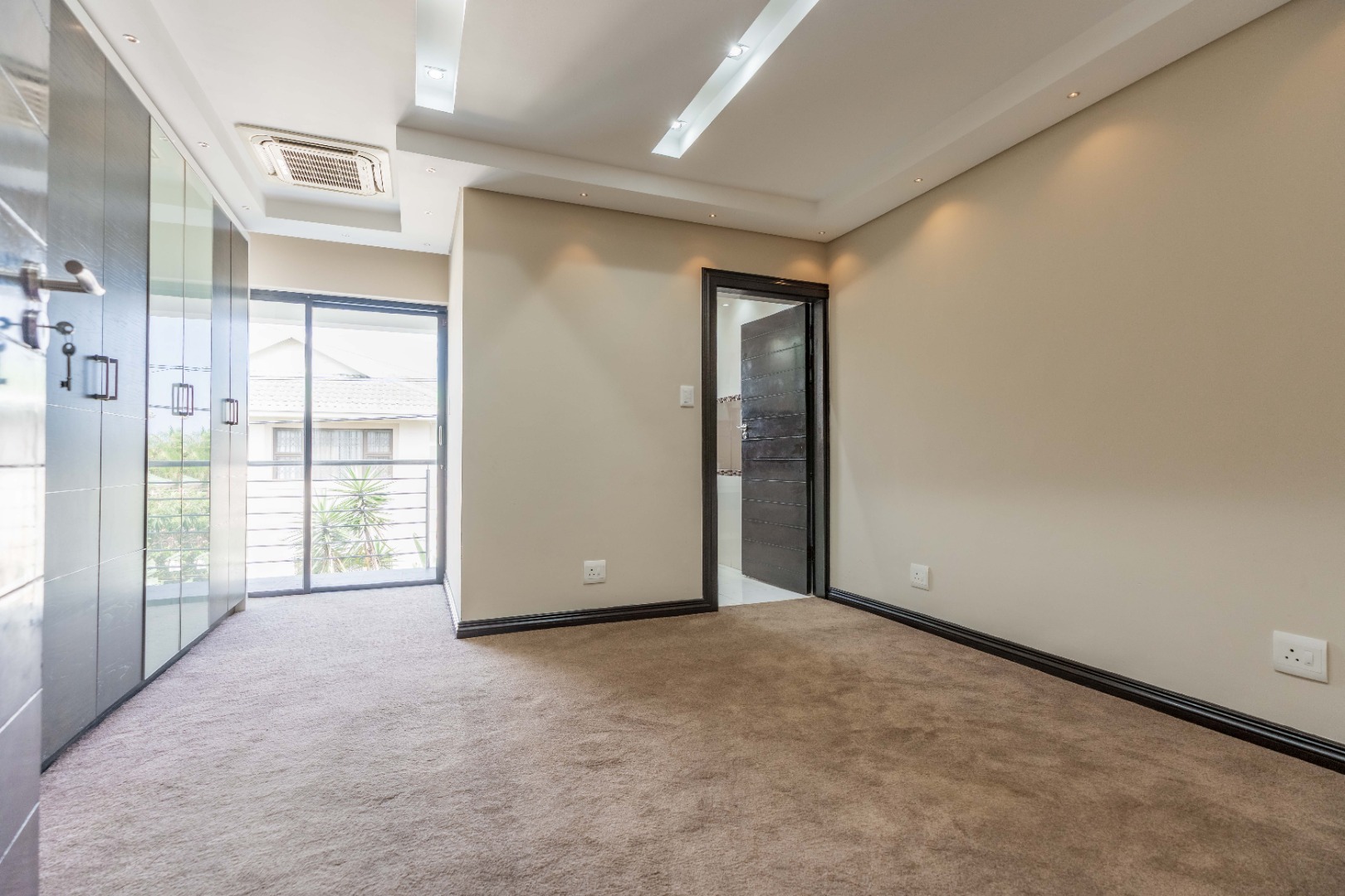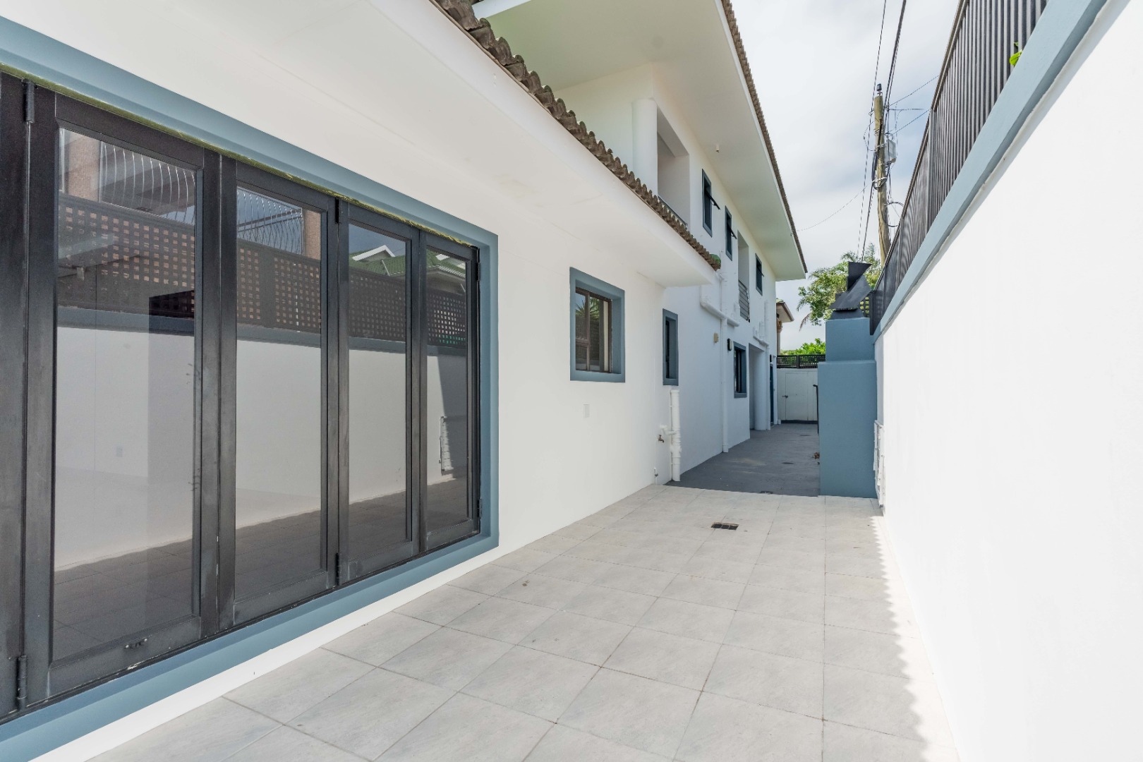 Upstairs are 3 spacious bedrooms with 3 en-suites and a study. The property is fully paved with a lovely garden section, double auto garage with direct access into the home and an excellent security system with beams on the property.
