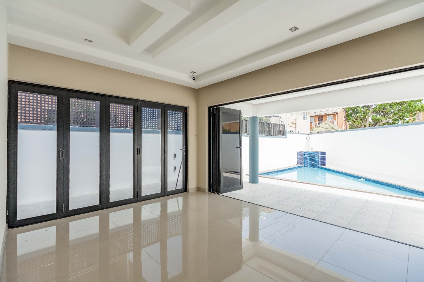 To complete the downstairs area, there is a wonderful entertainment room, with stack-back doors that open onto a sparkling pool, plus the option to create a fourth bedroom with an en-suite.