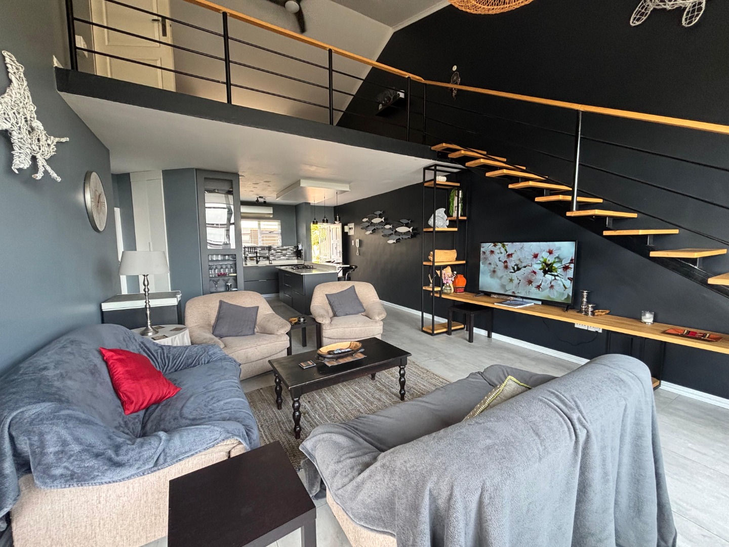 Upstairs, you are welcomed by a versatile open space ideal for a second lounge, home office, or entertainment area. The main bedroom is privately positioned on this level and offers a walk-in closet and a stylish en-suite bathroom, creating a peaceful retreat.
