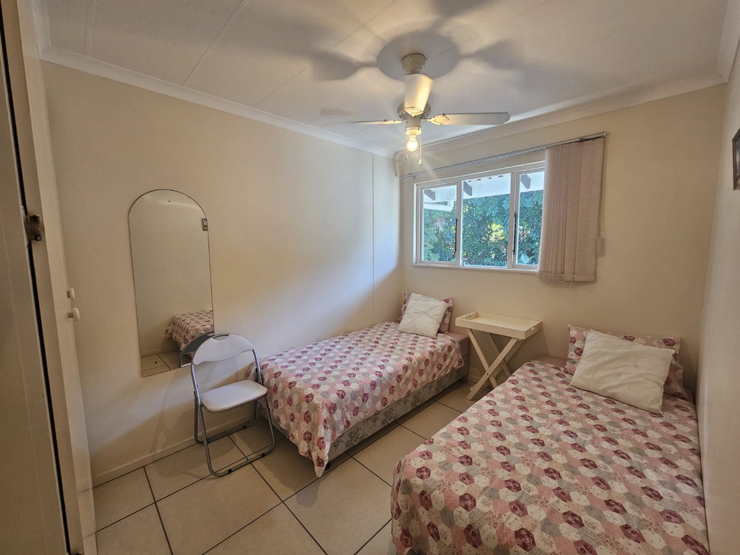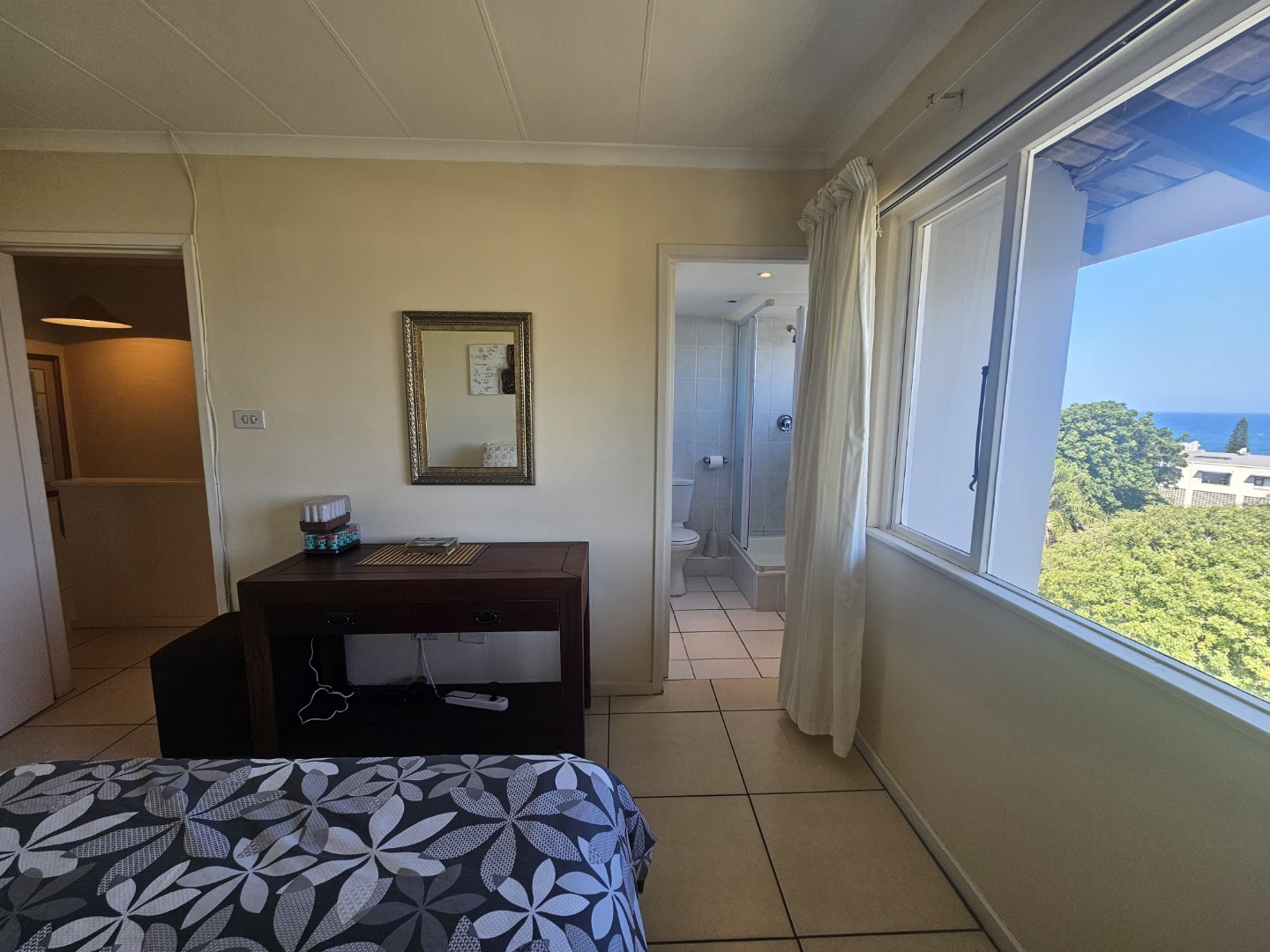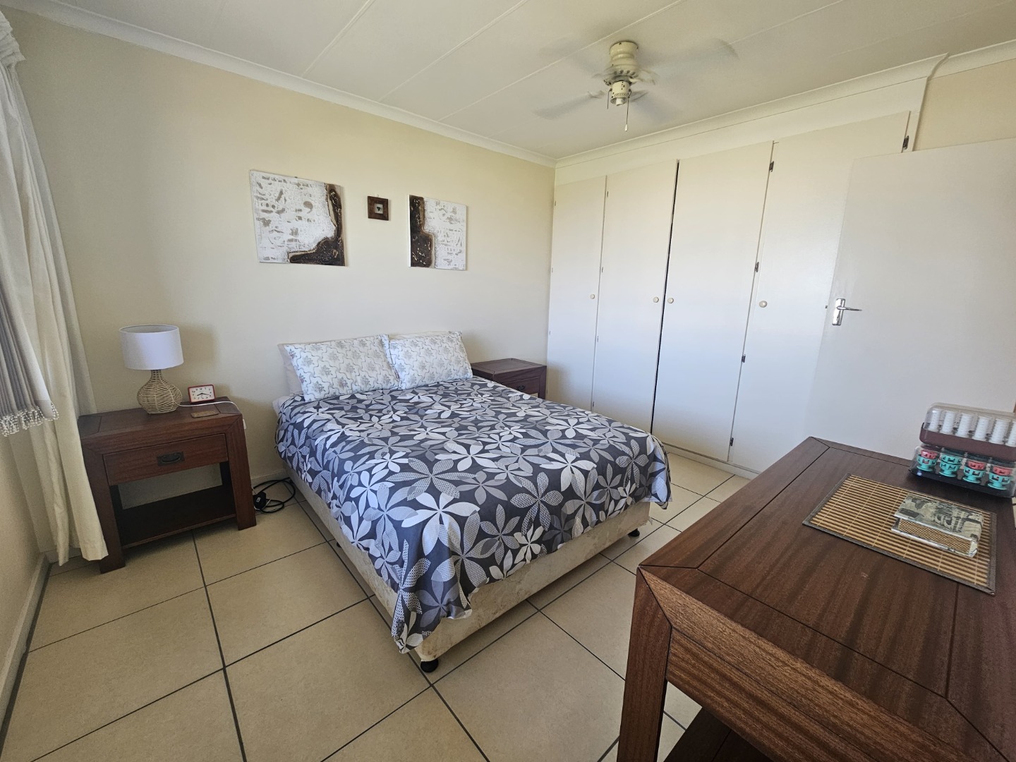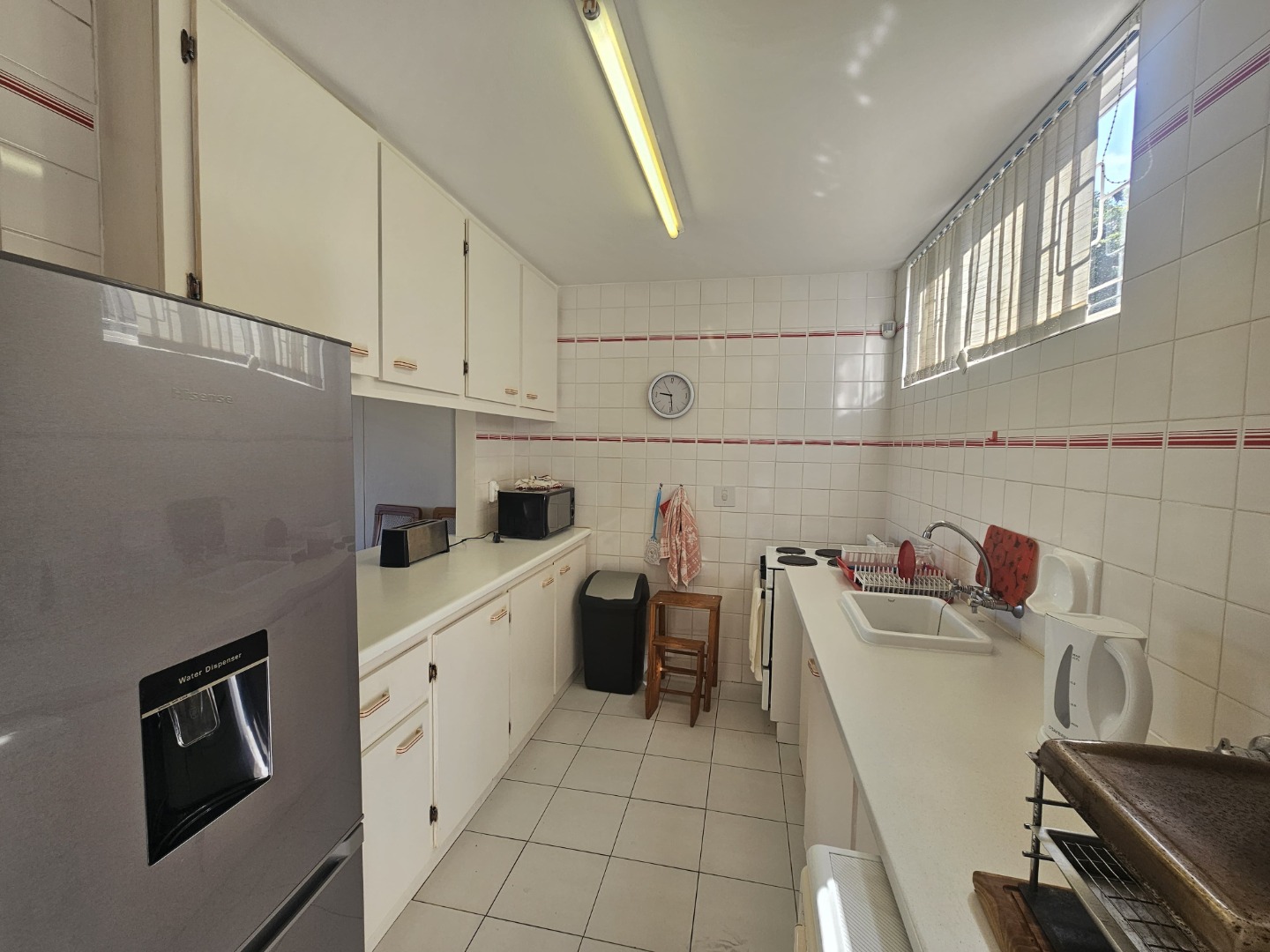 The flat is fully tiled throughout and, while dated, is in immaculate condition, offering a solid, well-cared-for base with excellent potential to modernize over time. The open-plan lounge has a balcony with sea views, and the property is within walking distance to the beach, making everyday living feel like a holiday.