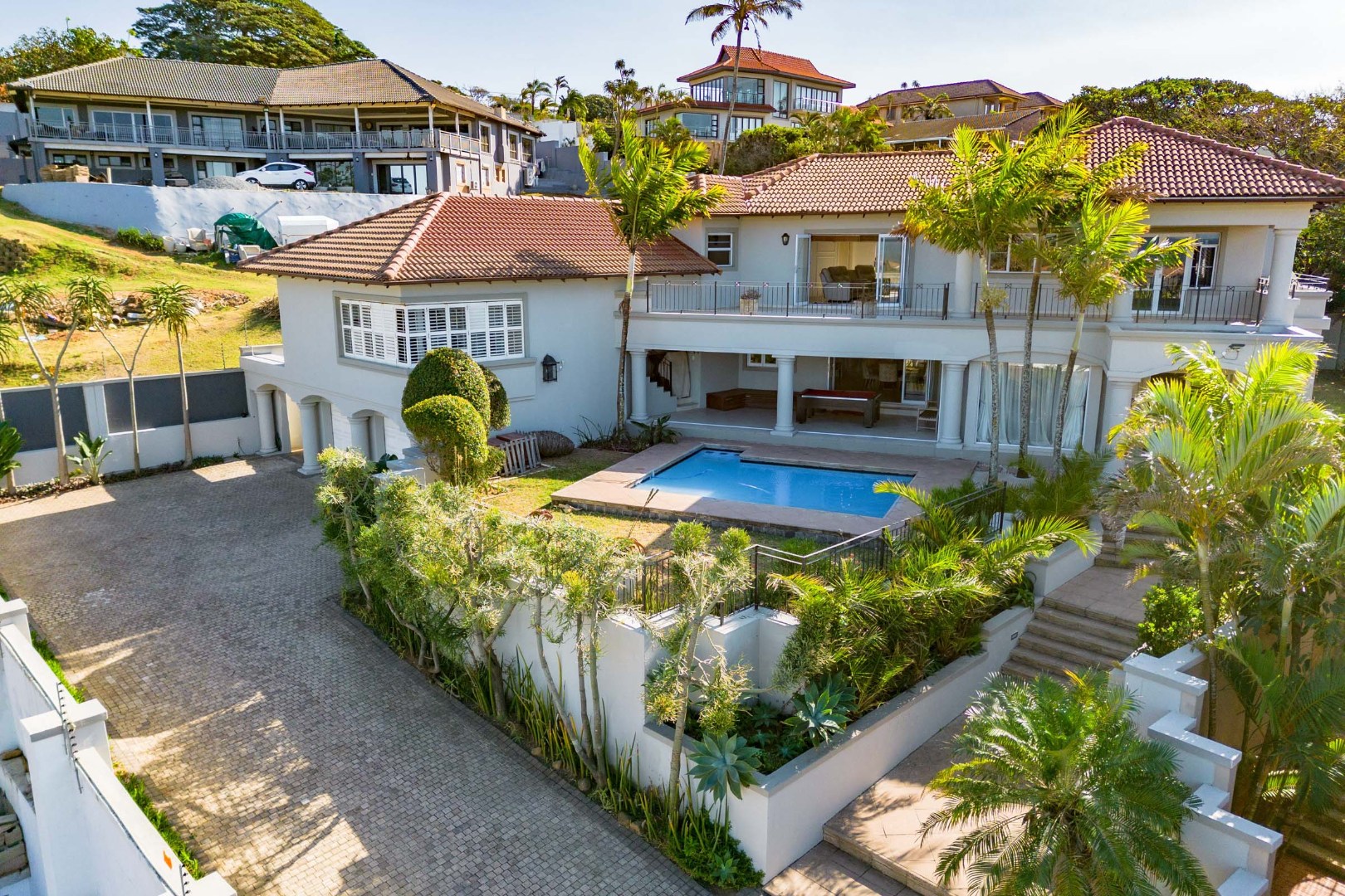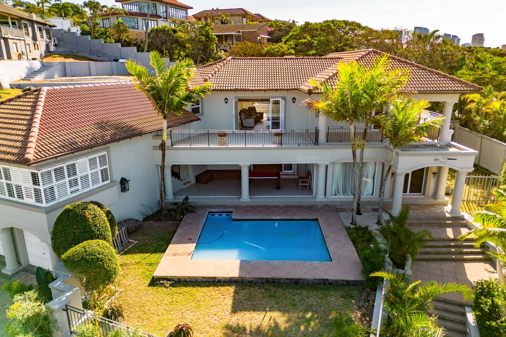 From the moment you pass through the impressive double entrance gates and arrive at this magnificent Tuscan-style villa, a sense of arrival and exclusivity is unmistakable. Perfectly positioned in Marine Drive, the “residential” side of Umhlanga, this exceptional home commands breathtaking ocean views and offers a lifestyle synonymous with luxury coastal living.