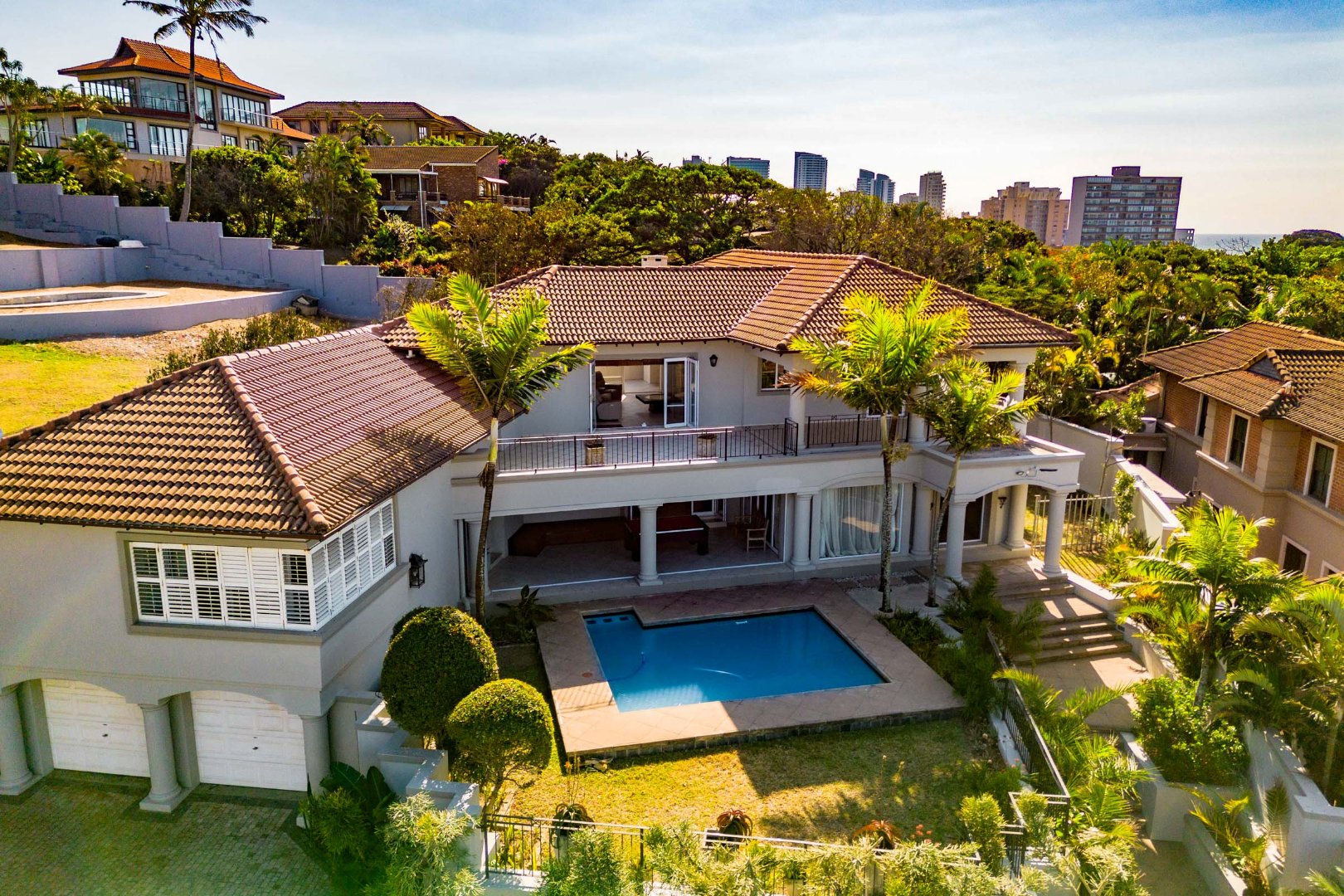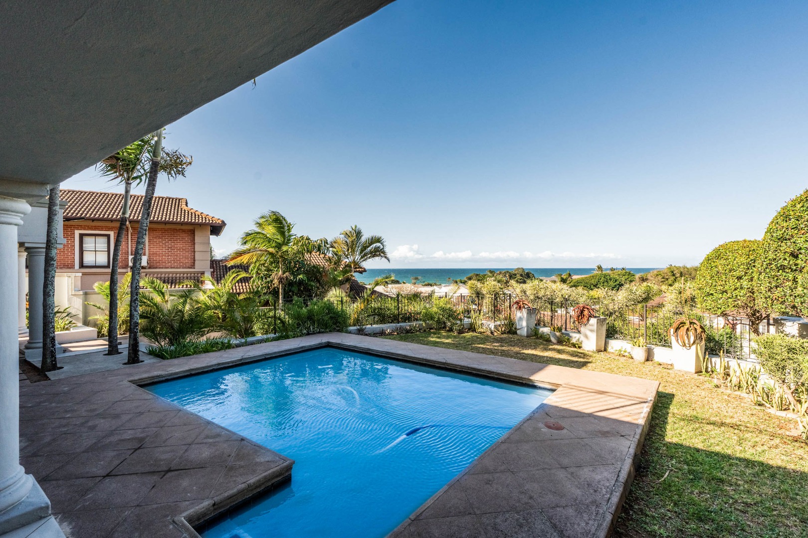 From the moment you pass through the impressive double entrance gates and arrive at this magnificent Tuscan-style villa, a sense of arrival and exclusivity is unmistakable. Perfectly positioned in Marine Drive, the “residential” side of Umhlanga, this exceptional home commands breathtaking ocean views and offers a lifestyle synonymous with luxury coastal living.