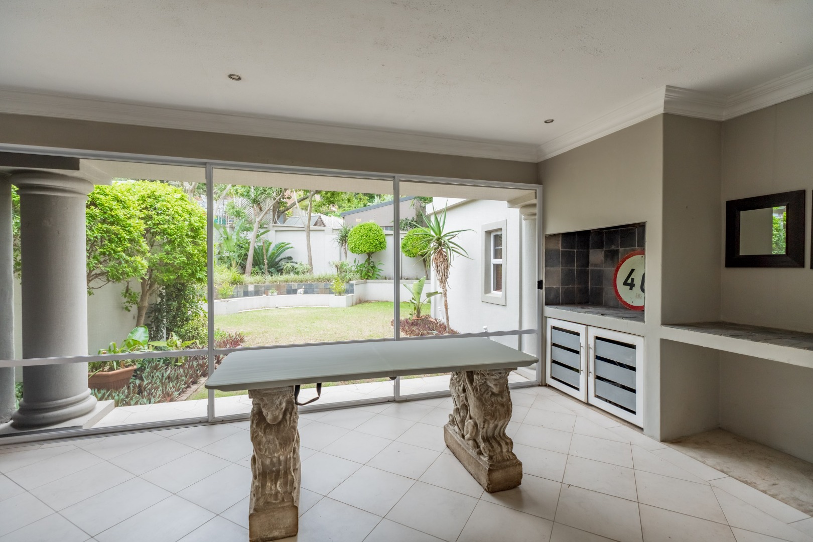 Additional features include staff accommodation, an automated double garage with direct access to the home, ample off-street parking, and automated access control. Security is comprehensive, with private security services and UIP camera surveillance along Marine Drive.